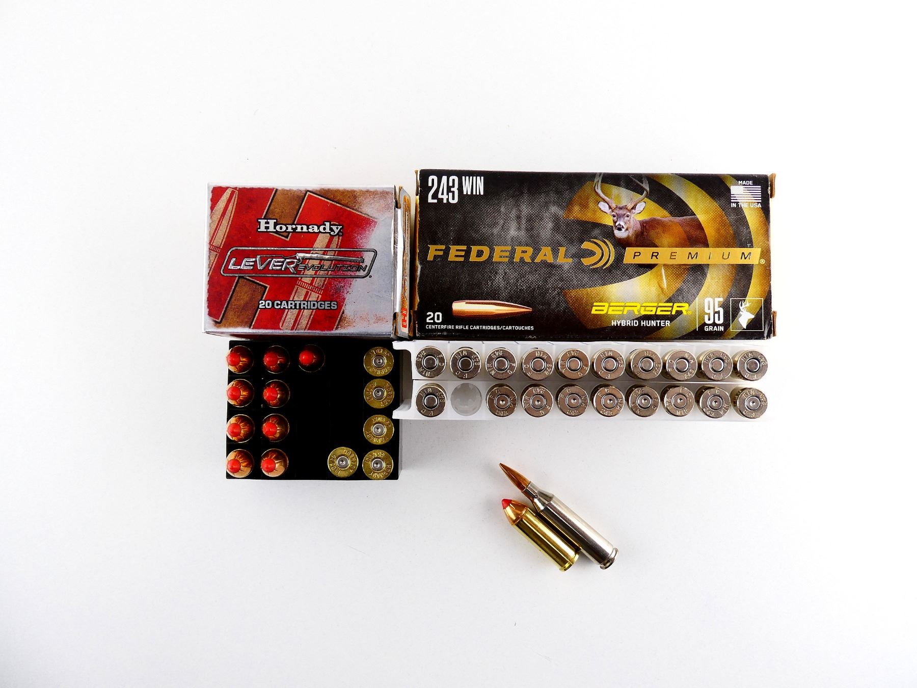 LOT INCLUDES; APPROX. (22) RNDS, 225 GRNS (STATED ON BOX NOT CONFIRMED), FTX & 95 GRNS (STATED ON BOX NOT CONFIRMED), BERGER HYBRID HUNTER, (13) NON-PRIMED CASES.
