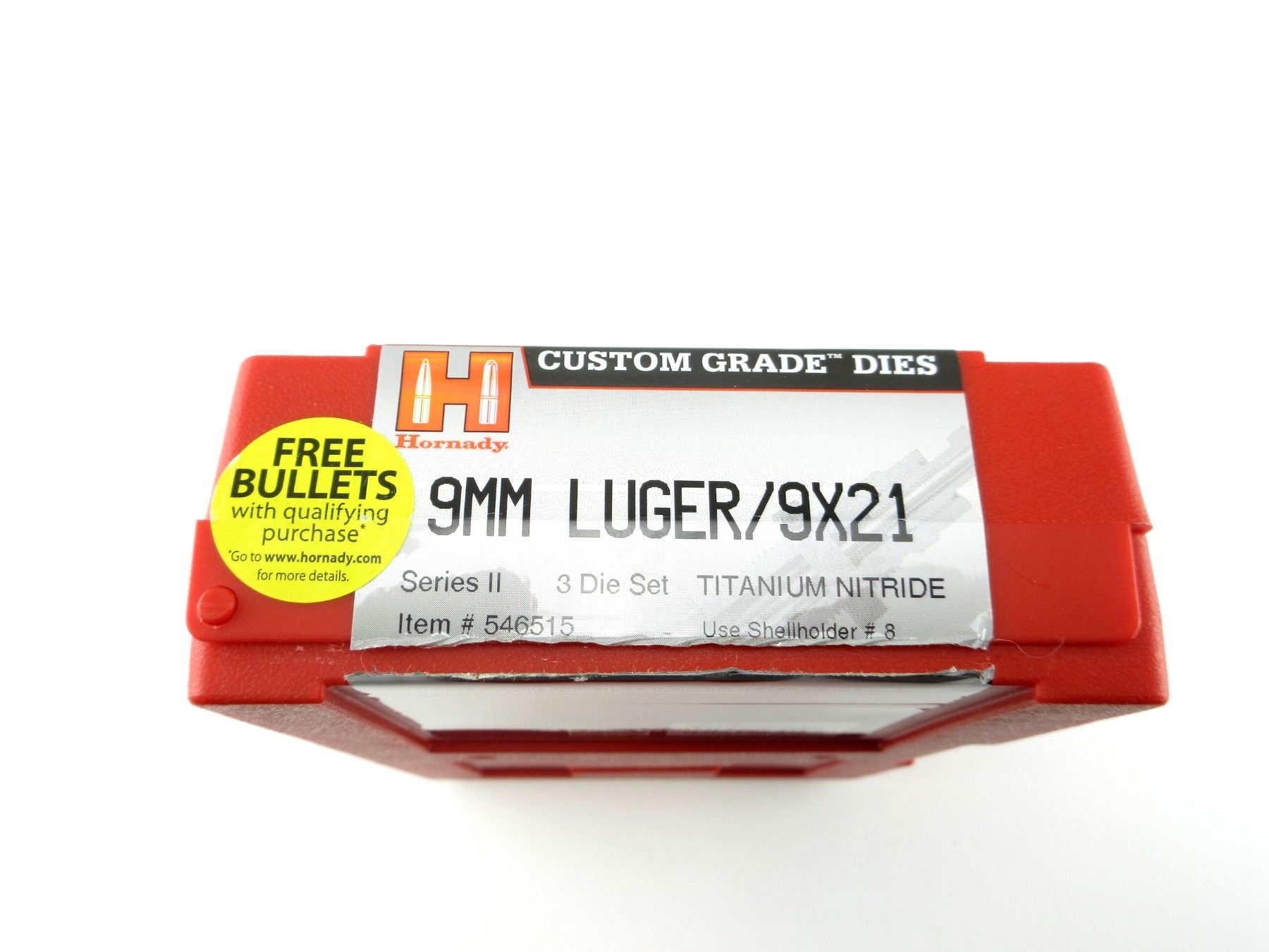 LOT INCLUDES; (1) HORNADY 9MM/9X21 1-PIECE RELOADING DIE & (1) HORNADY 9MM-380 AUTO 1-PIECE RELOADING DIE. SEE PHOTOS.