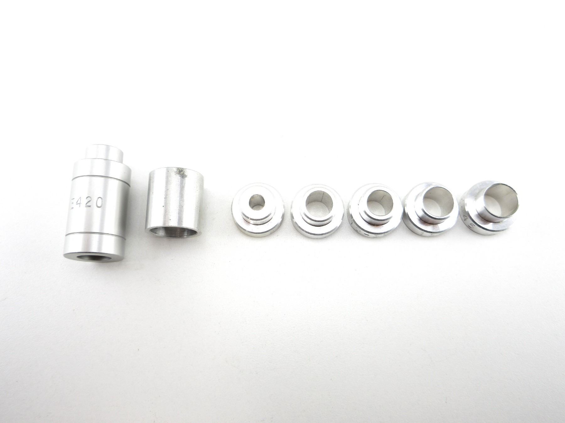 LOT INCLUDES; (5) LOCK-N-LOAD BULLET COMPARATOR INSERTS, MARKED: "2-22", "10-35", "11-37", "12-45", "13-41", (1) LOCK-N-LOAD HEAD SPACE GAUGE BUSHING, MARKED: "E420", ETC. SEE PHOTOS.