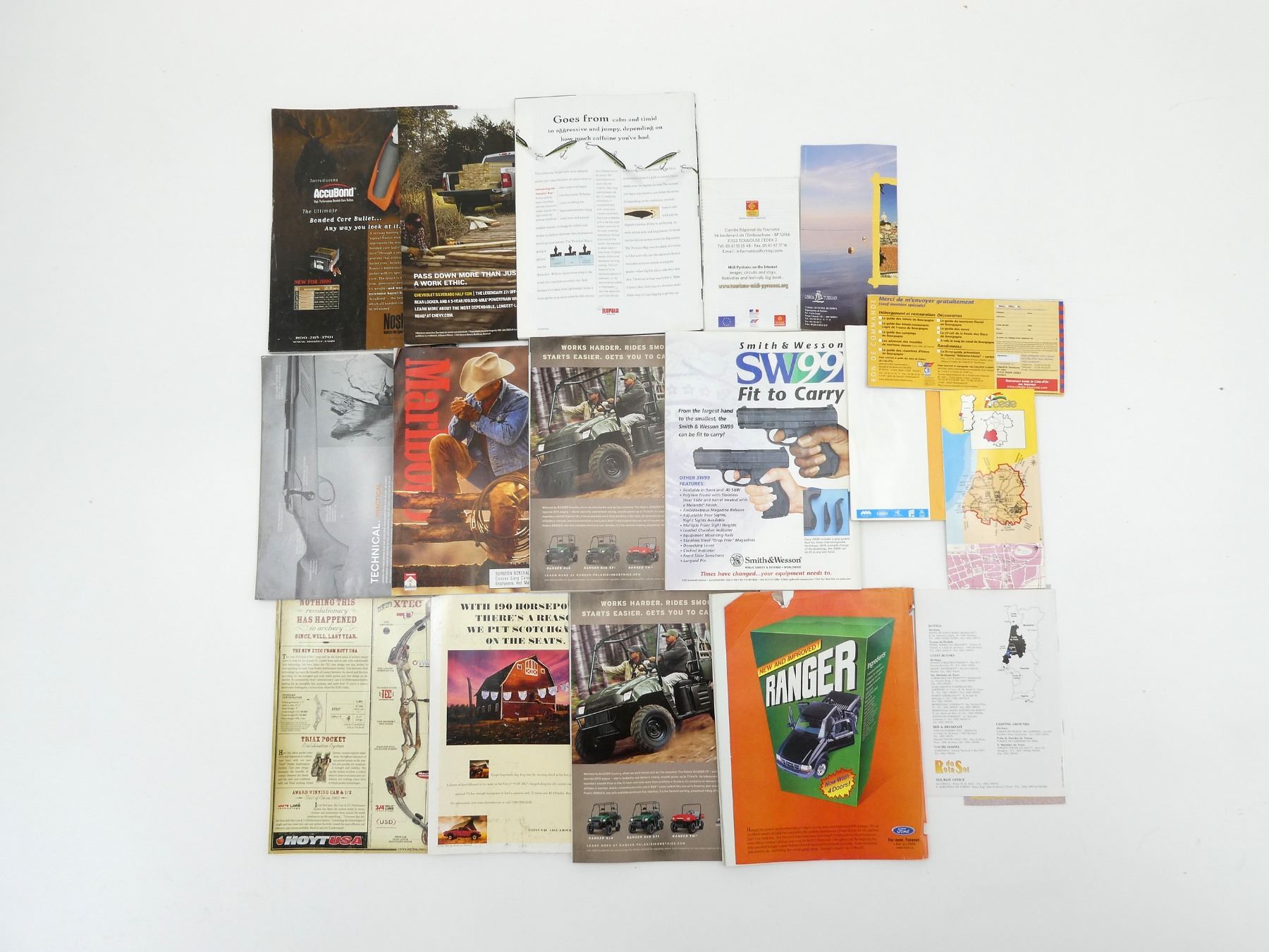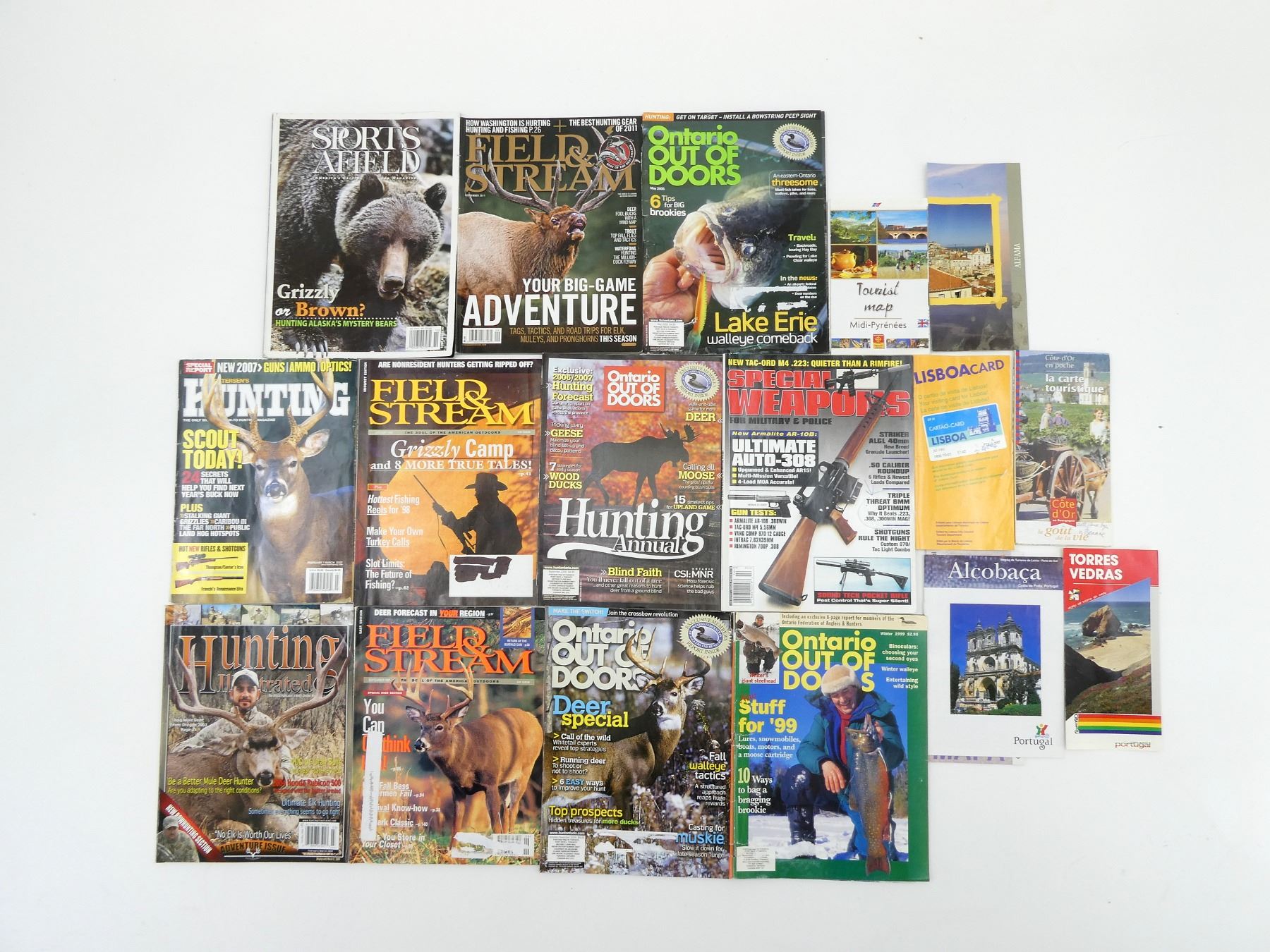 LOT INCLUDES; APPROX. (10) ASSORTED HUNTING MAGAZINES, (1) "SPECIAL WEAPONS" MAGAZINE, ASSORTED WORLD INFORMATION BROCHURES, ETC. SEE PHOTOS.