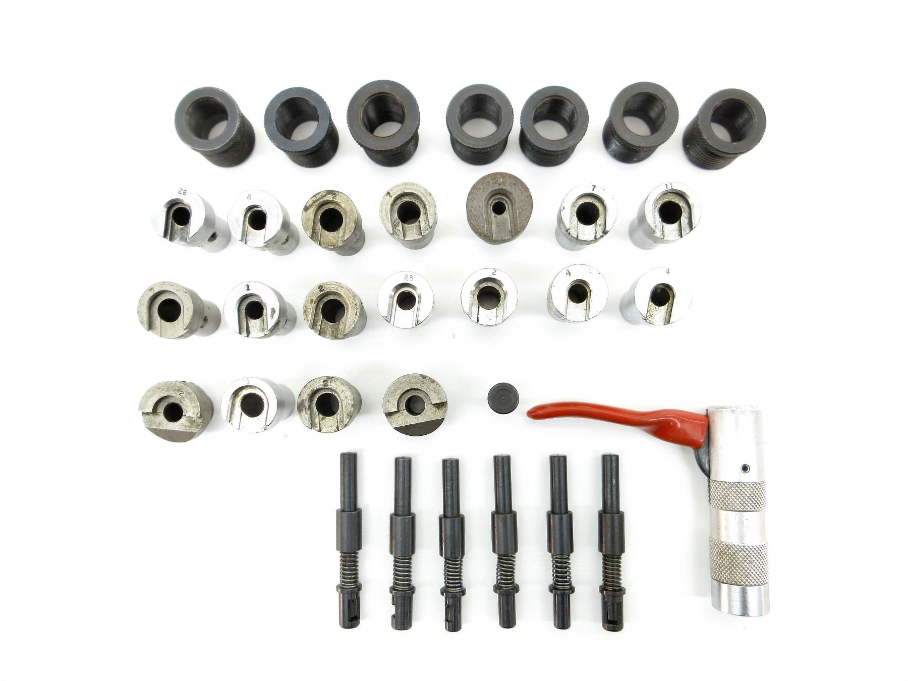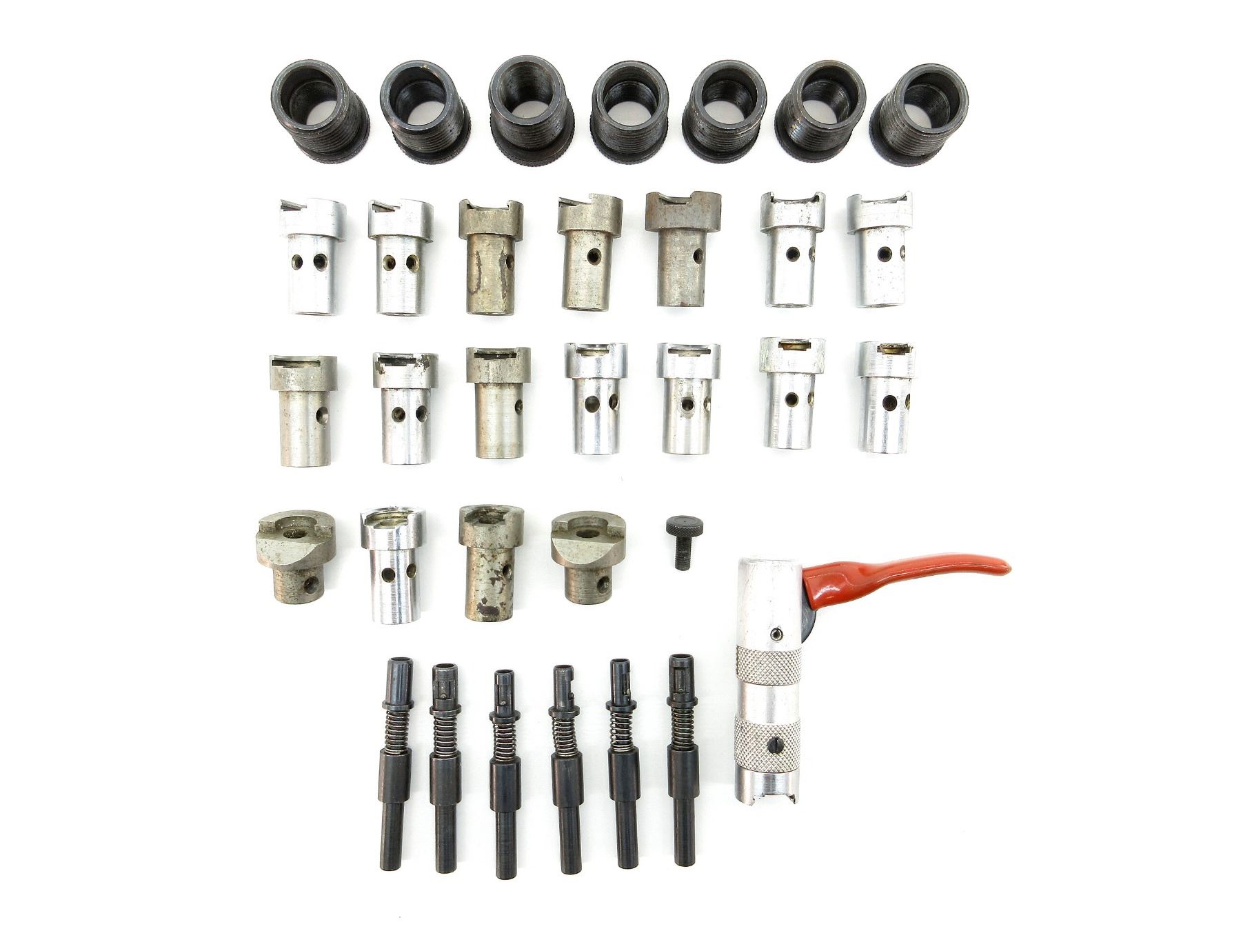 APPROX. (34) PIECES, INCLUDES; LYMAN HAND PRIMING TOOL, ASSORTED .310 DIE ADAPTORS 7/8 X 14, PRIMER RODS, #1 SHELL HOLDER, #2 SHELL HOLDERS, #4 SHELL HOLDERS, #7 SHELL HOLDERS, #11 SHELL HOLDERS, #26 SHELL HOLDERS, ETC. SEE PHOTOS.