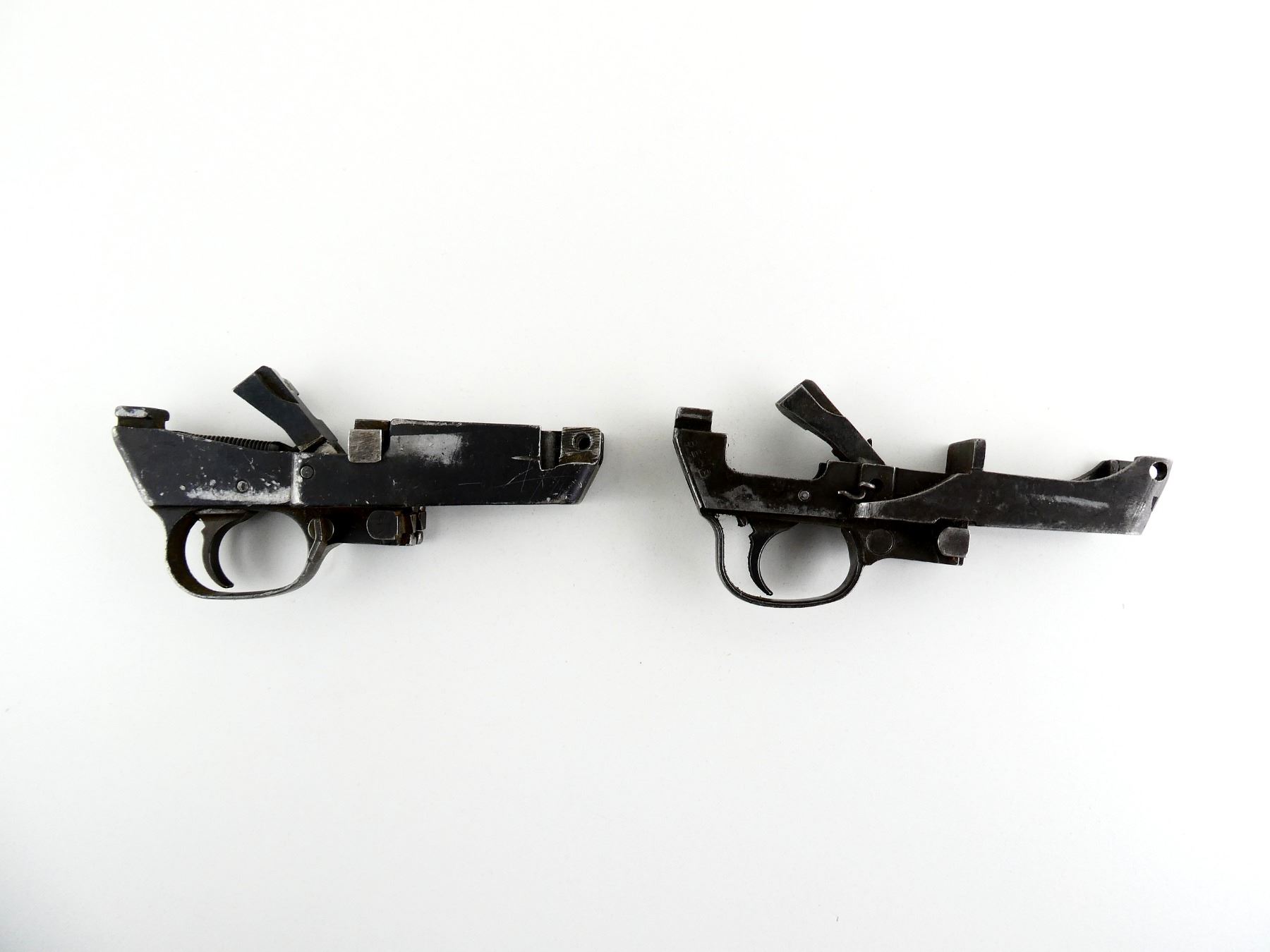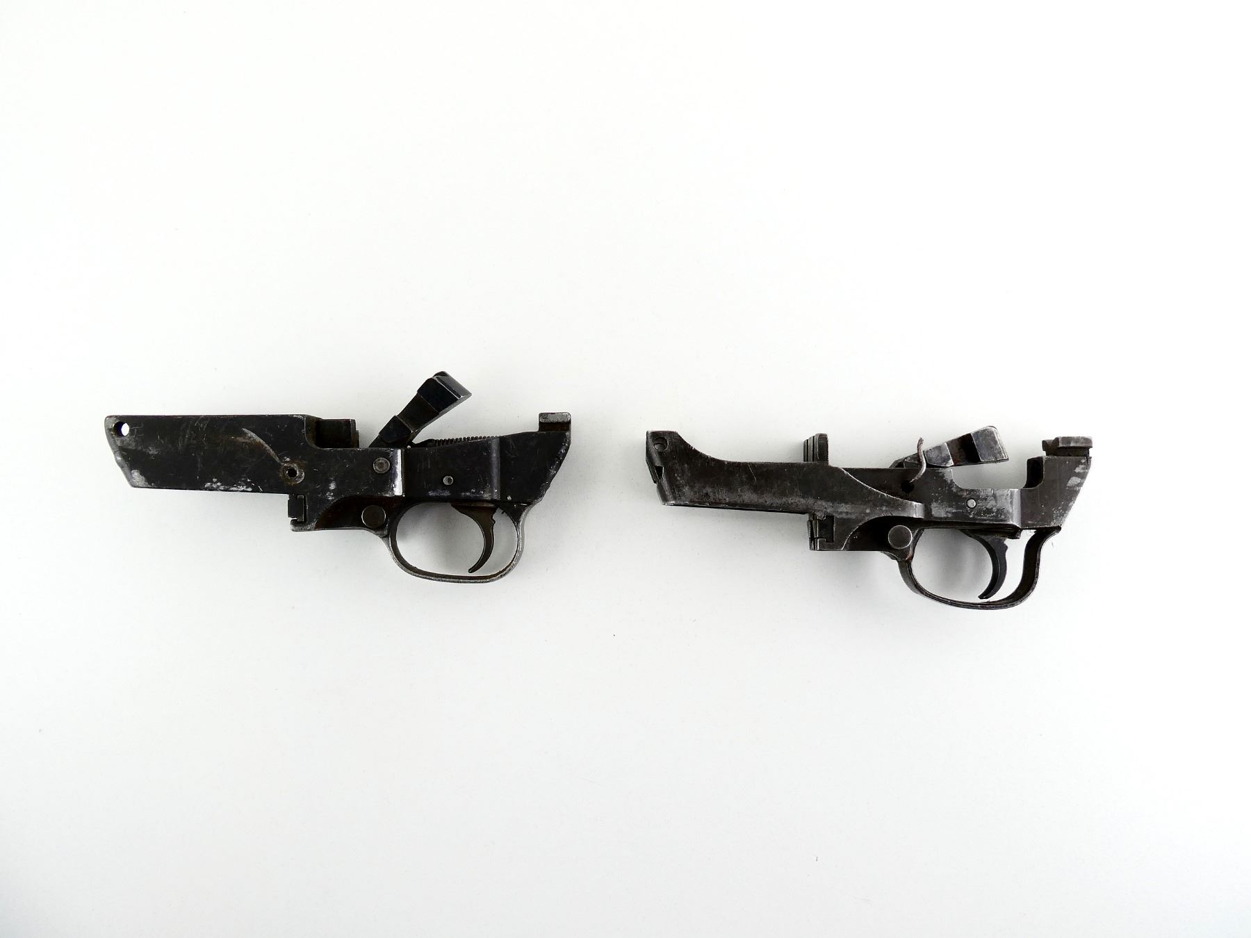 LOT INCLUDES; (1) TRIGGER MECH., PARKERIZED STEEL CONSTRUCTION, WITH MAG CATCH, SAFETY, HAMMER, TRIGGER & SPRING, MARKED: "BE-B" & (1) TRIGGER MECH, BLACK ALLOY CONSTRUCTION, WITH HAMMER, TRIGGER, MAG CATCH, SAFETY ASSEMBLIES, UNMARKED, APPEARS MODIFIED. MAY REQUIRE FITTING. SEE PHOTOS.