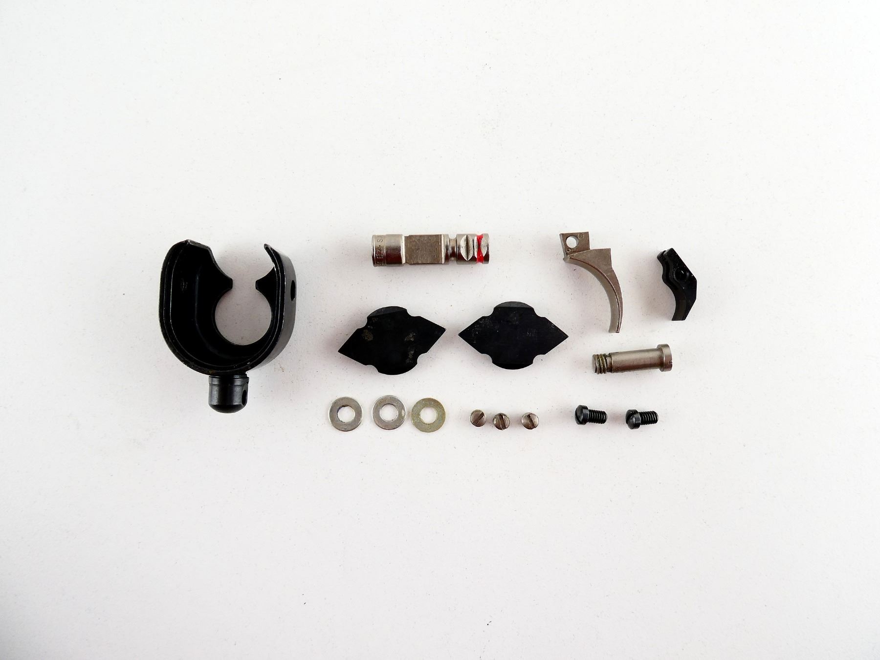LOT INCLUDES; TRIGGER, MAG END CAP, LEVER SCREW, REAR SIGHT PLUGS, WASHERS, TOP TANG SCREWS, /ETEC. MAY REQUIRE FITTING. SEE PHOTOS.