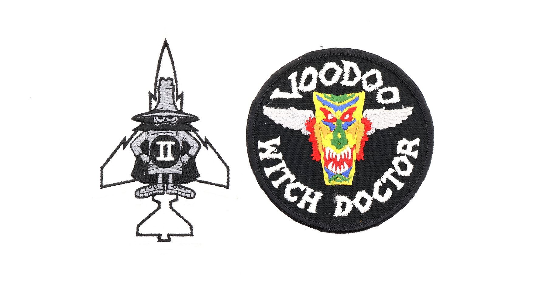 APPROX. (34) PIECES, VARIOUS SIZES / STYLES / COLOURS, MOSTLY U.S. MILITARY, INCLUDES; AIR TRAFFIC CONTROL TORONTO CONTROL TOWER, RAF NEVER SO FEW, BLUE ANGELS, THUNDERBIRDS, COMBAT CREW, MCDONNELL DOUGLAS PHANTOM II, RF-4C, FAIRCHILD A-10 THUNDERBOLT II REPUBLIC COMPANY, TOPHATTERS, VOODOO WITCH DOCTOR, ETC.