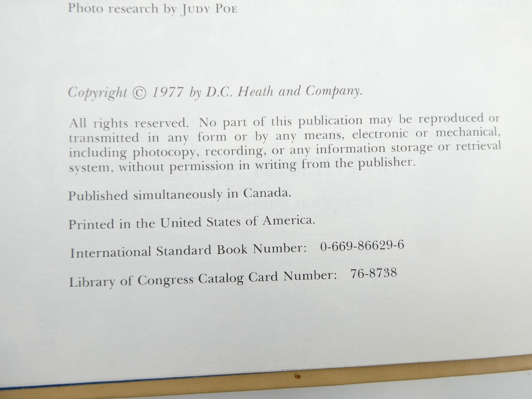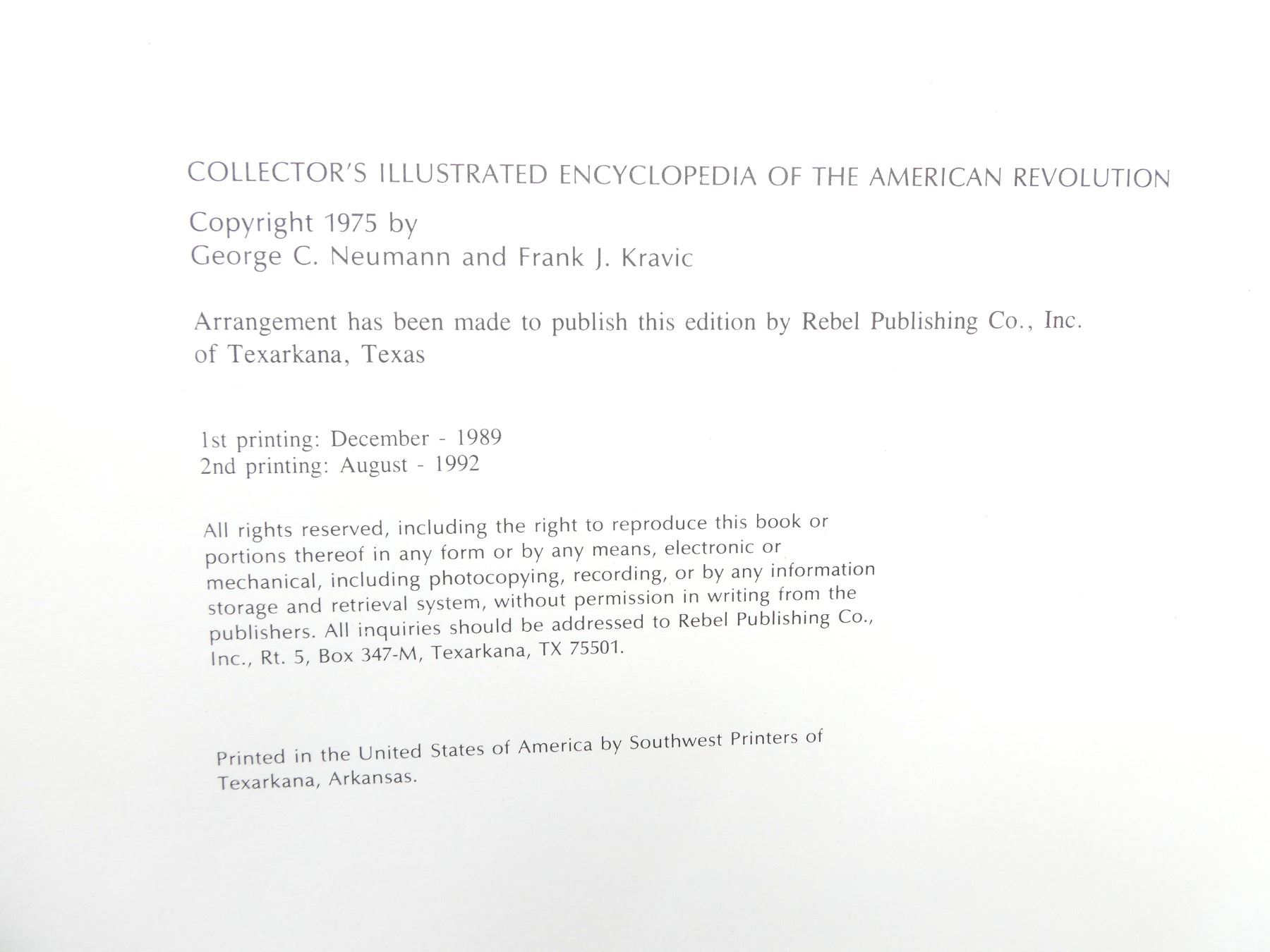 LOT INCLUDES; (1) "VOYAGER'S SKETCHBOOK" BOOK BY JAMES A. HANSON, SOFT COVER, COPYRIGHT 1981, (1) "THE GREAT REPUBLIC, A HISTORY OF THE AMERICAN PEOPLE" BOOK PUBLISHED BY D.C. HEATH AND COMPANY, HARD COVER, ISBN: 0-669-86629-6, (1) "NEW ENGLAND SOLDIERS OF THE AMERICAN REVOLUTION" BOOK BY BELLEROPHON BOOKS, SOFT COVER, ISBN: 0-88388-034-2, (1) "THE FIRST FLEET, AUSTRALIA'S HERITAGE IN STAMPS" BOOK COMPILED BY JO MONIE, SOFT COVER, ISBN: 0 642 11946 5, (1) "COLLECTOR'S ILLUSTRATED ENCYCLOPEDIA OF THE AMERICAN REVOLUTION" BOOK BY GEORGE C. NEUMANN & FRANK J. KRAVIC, SOFT COVER, ISBN: 0-9605666-8-6, (1) "THE WAR OF INDEPENDENCE IN THE NORTH CAMPAIGN BOOK #7" BOOK BY GREG NOVAK, SOFT COVER, COPYRIGHT 1990 & (12) ASSORTED NATIVE AMERICAN / SOLDIER PRINTS. SEE PHOTOS.