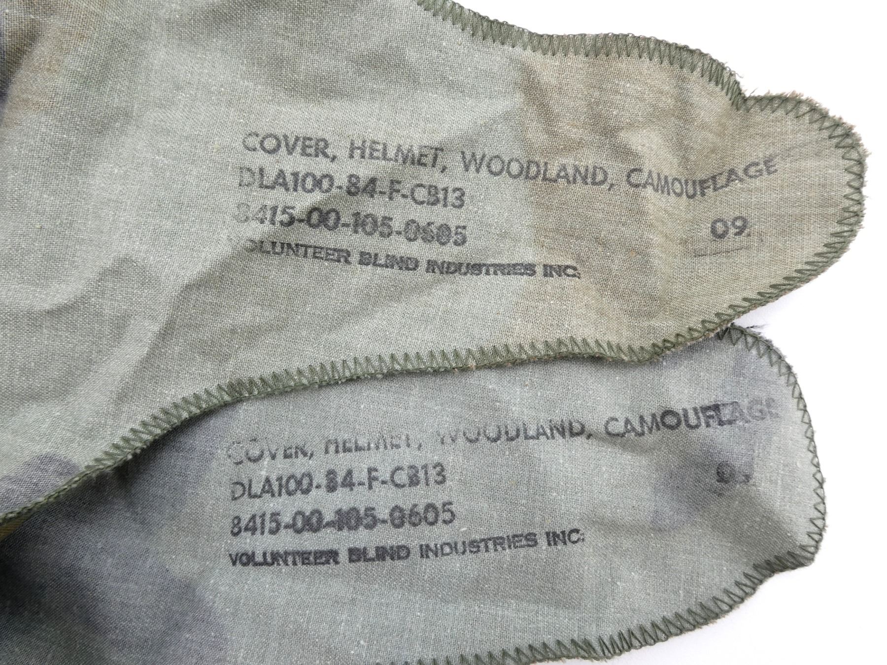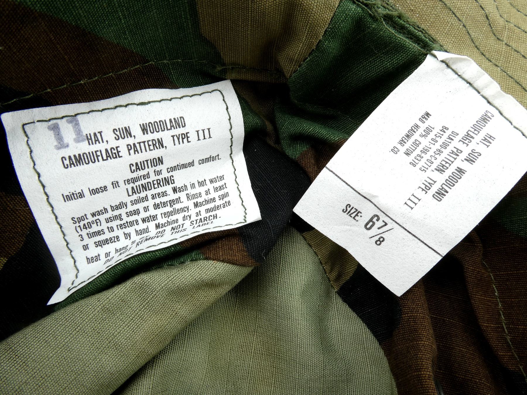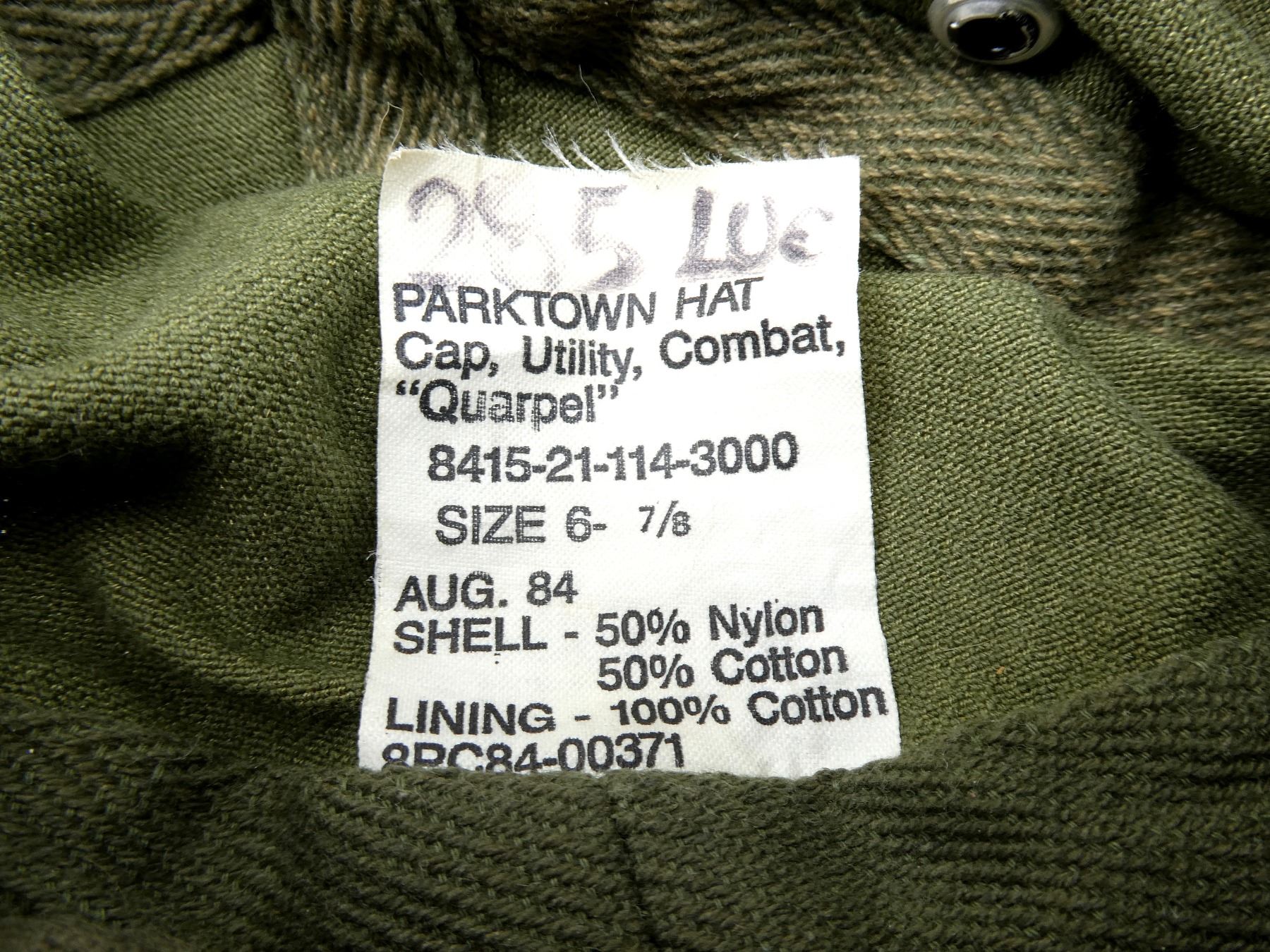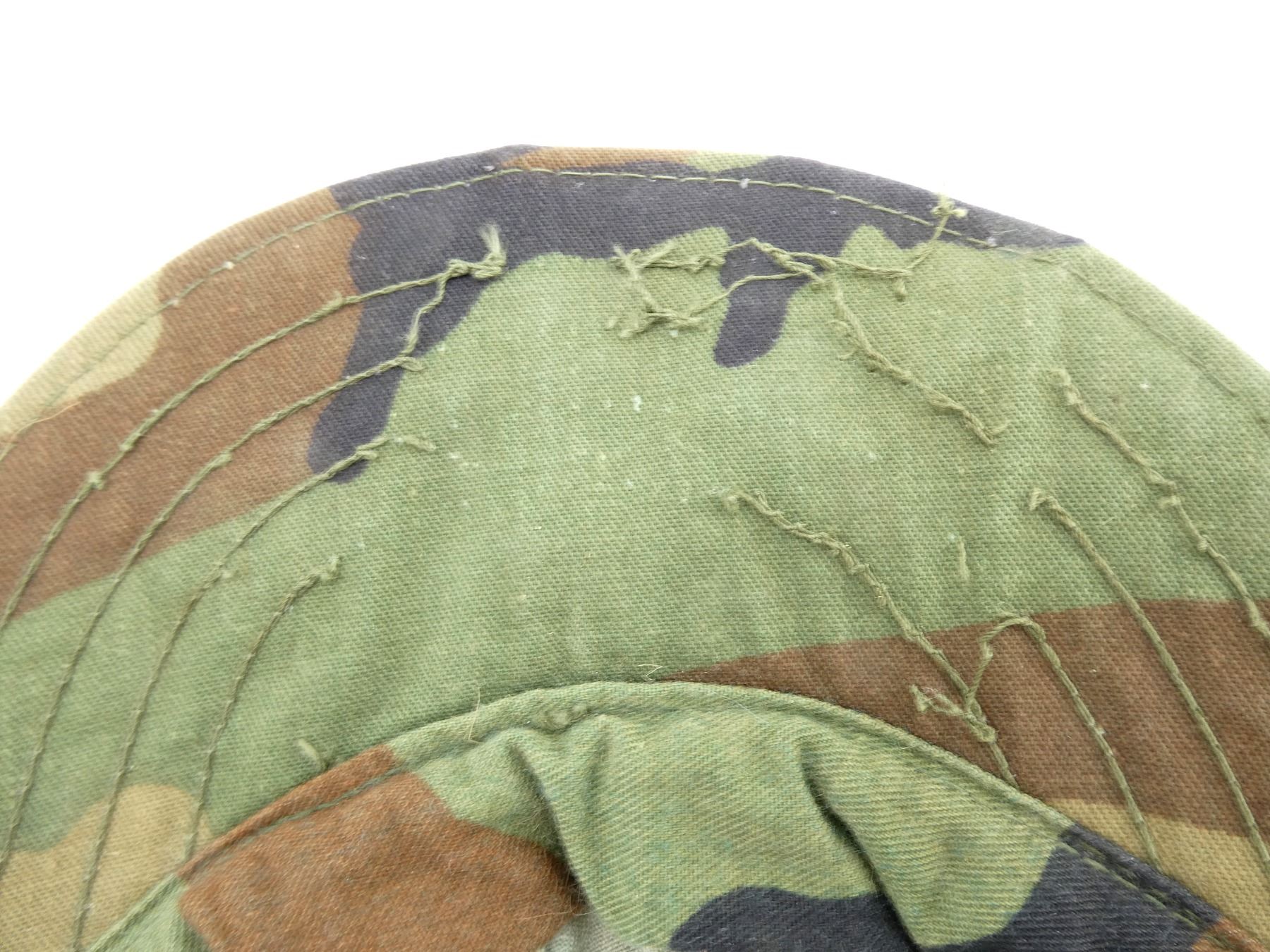 LOT INCLUDES; (2) U.S. MILITARY WOODLAND CAMO HELMET COVERS, VARIOUS INK STAMP MARKINGS, APPEARS NEW OLD STOCK, (1) U.S. MILITARY WOODLAND CAMO SUN HAT, SIZE 6 7/8", VARIOUS LABELS / MARKINGS, APPEARS NEW OLD STOCK, (1) U.S. MILITARY WOODLAND CAMO UTILITY CAP, SIZE LARGE, VARIOUS LABELS / MARKINGS, SHOWS WEAR / TEAR, (1) CANADIAN MILITARY GREEN CANVAS UTILITY COMBAT CAP "QUARPEL", SIZE 6 7/8, VARIOUS MARKINGS ON LABEL, SHOWS AGE / WEAR & (1) UNKNOWN MILITARY GREEN KNIT HAT, MARKED: "PARKHURST, JUNE 1971, MEDIUM". SEE PHOTOS.