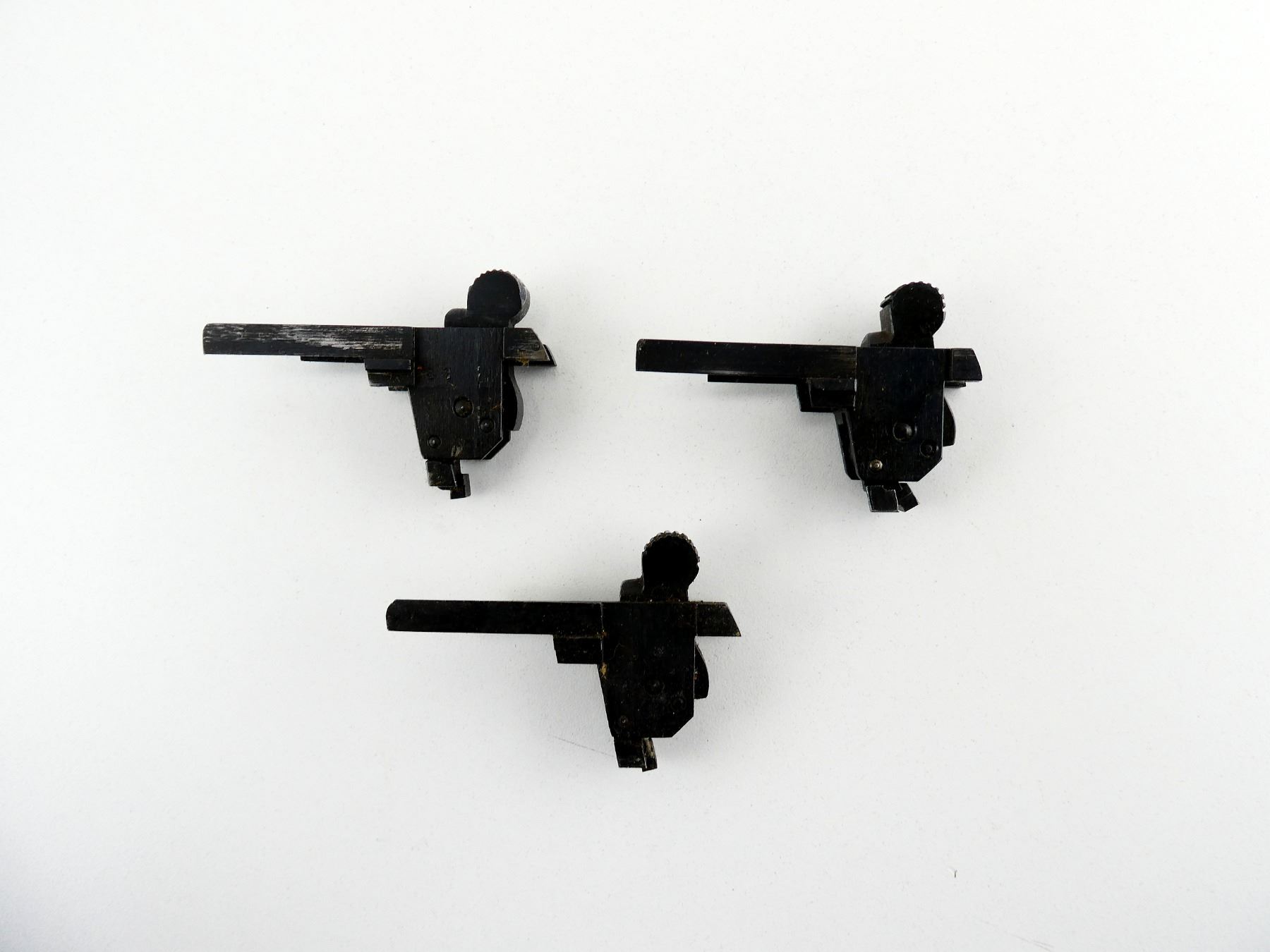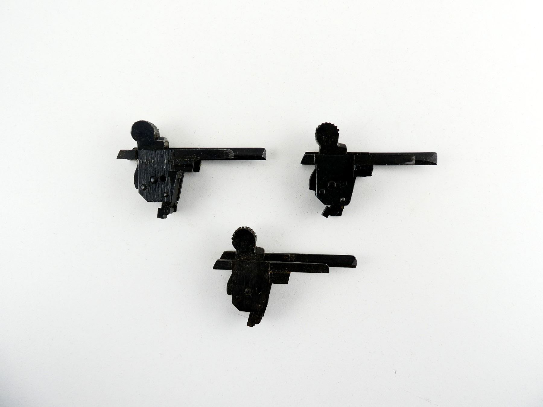 LOT INCLUDES; (3) TRIGGER MECH.'S, APPEARS COMPLETE, BLUED STEEL CONSTRUCTION, VARIOUS MARKINGS. MAY REQUIRE FITTING. SEE PHOTOS.