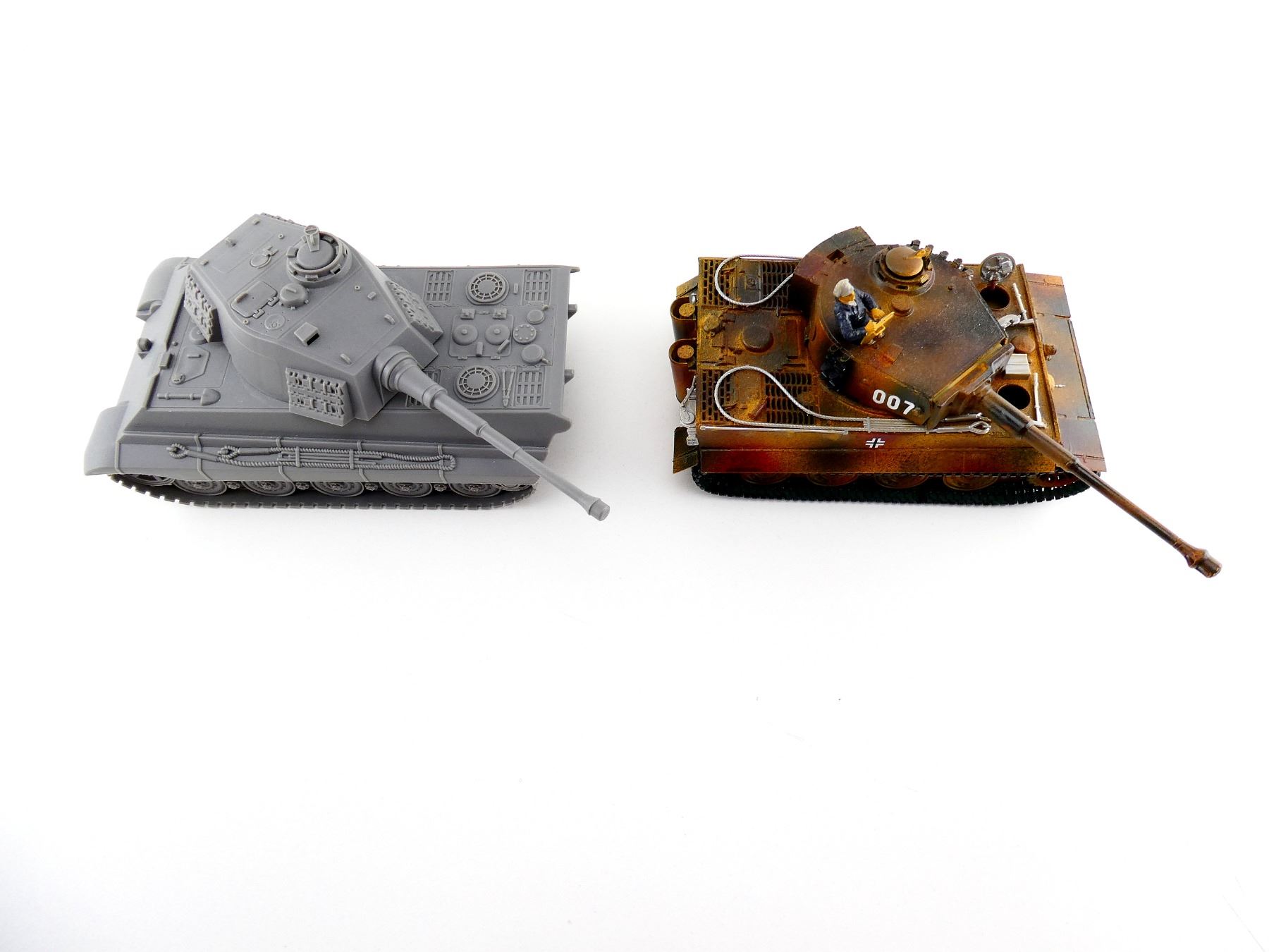 LOT INCLUDES; (2) PLASTIC MODEL TANKS, ONE GERMAN MILITARY PAINTED WITH DETAILING, OTHER UN-PAINTED, NO VISIBLE MARKINGS ON PAINTED TANK, OTHER MARKED: "BMC TOYS" ETC. SEE PHOTOS.