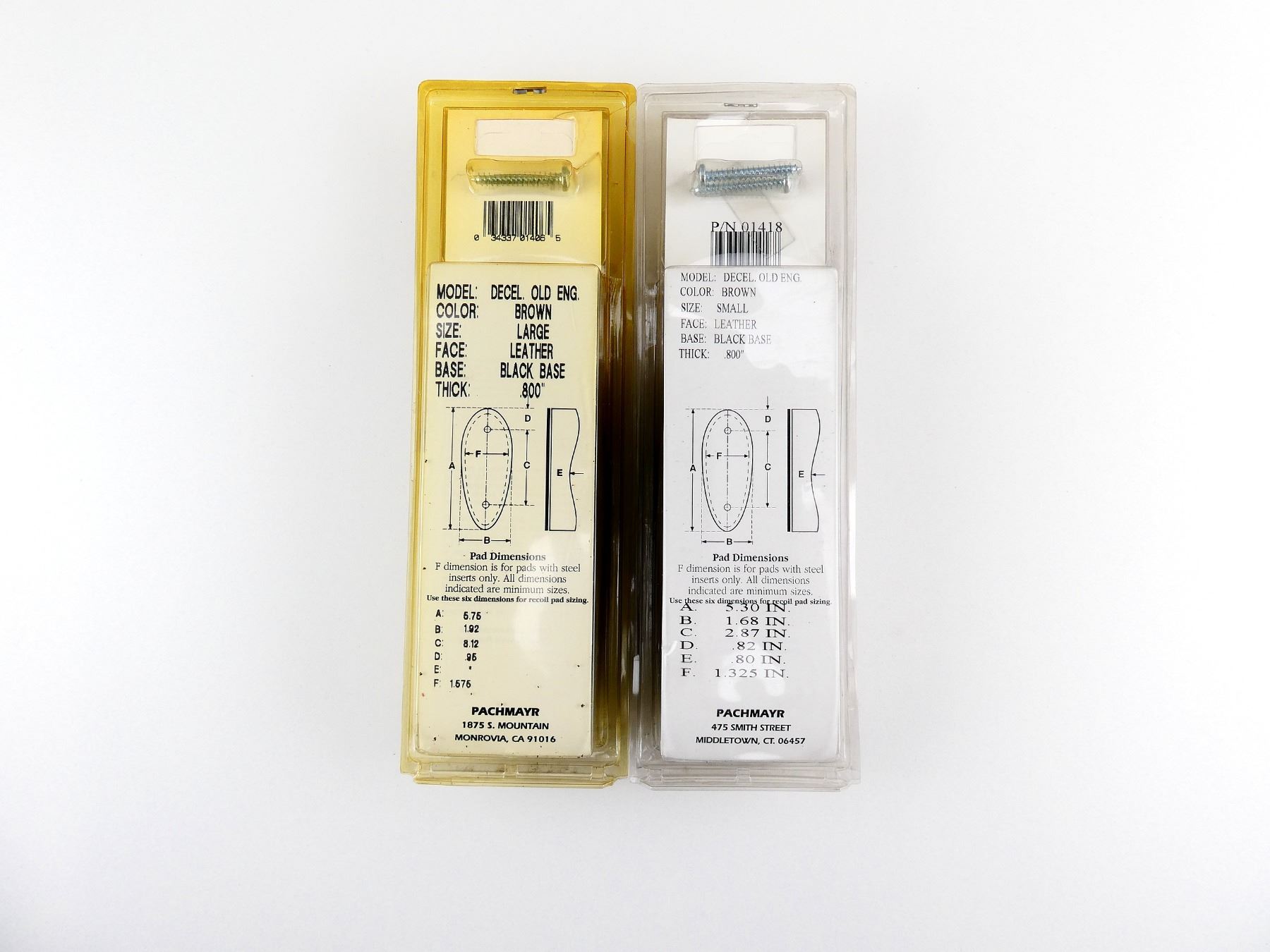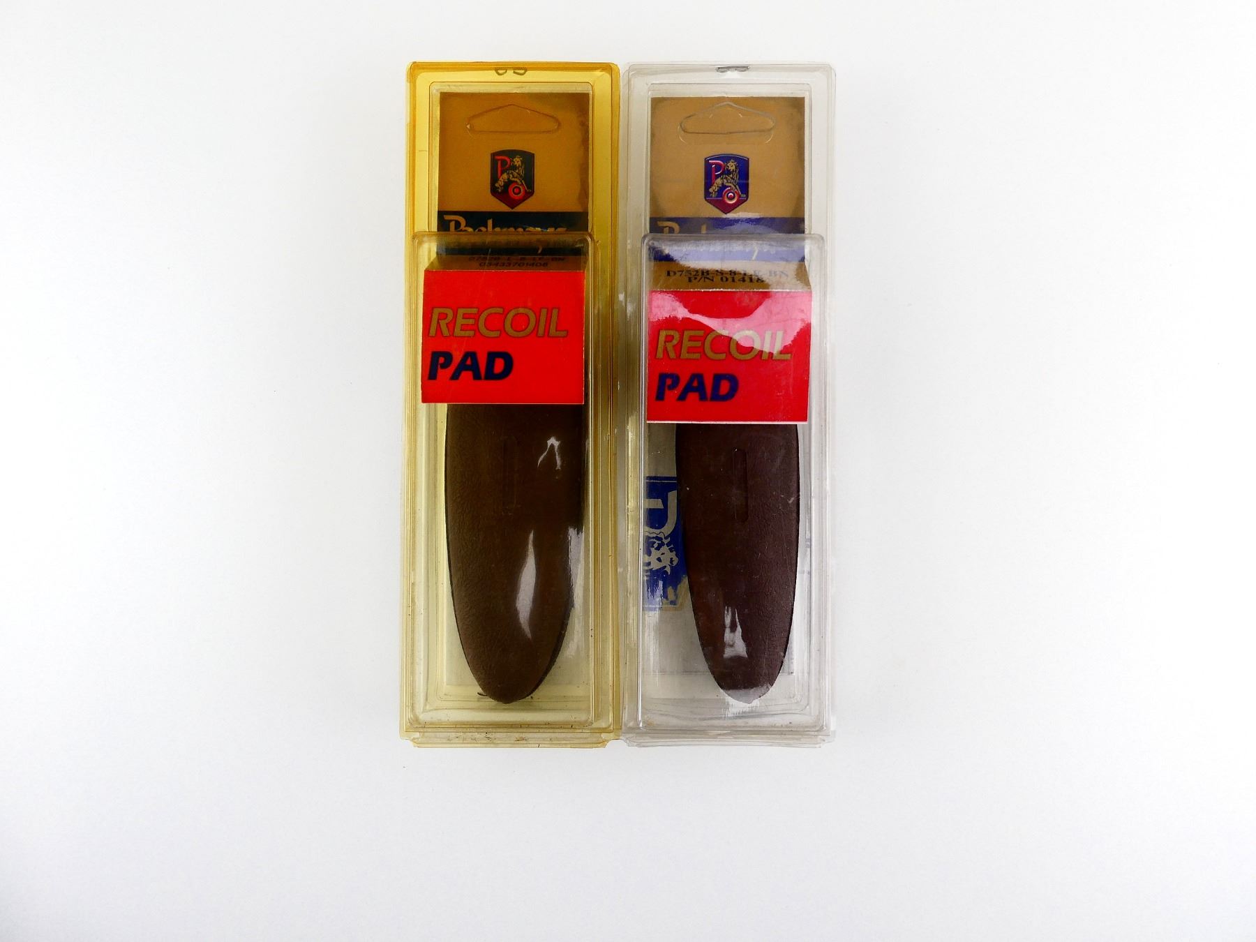 LOT INCLUDES; (1) BROWN LEATHER RECOIL PAD, PART #: D752B-L-8-LE-BN #03433701406, NOS IN ORIGINAL PACKAGING. MAY REQUIRE FITTING & (1) BROWN LEATHER RECOIL PAD, PART #: D752B-S-8-LE-BN #01418, NOS IN ORIGINAL PACKAGING. MAY REQUIRE FITTING. SEE PHOTOS.