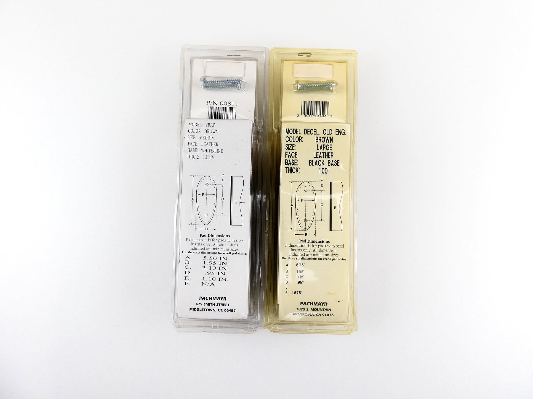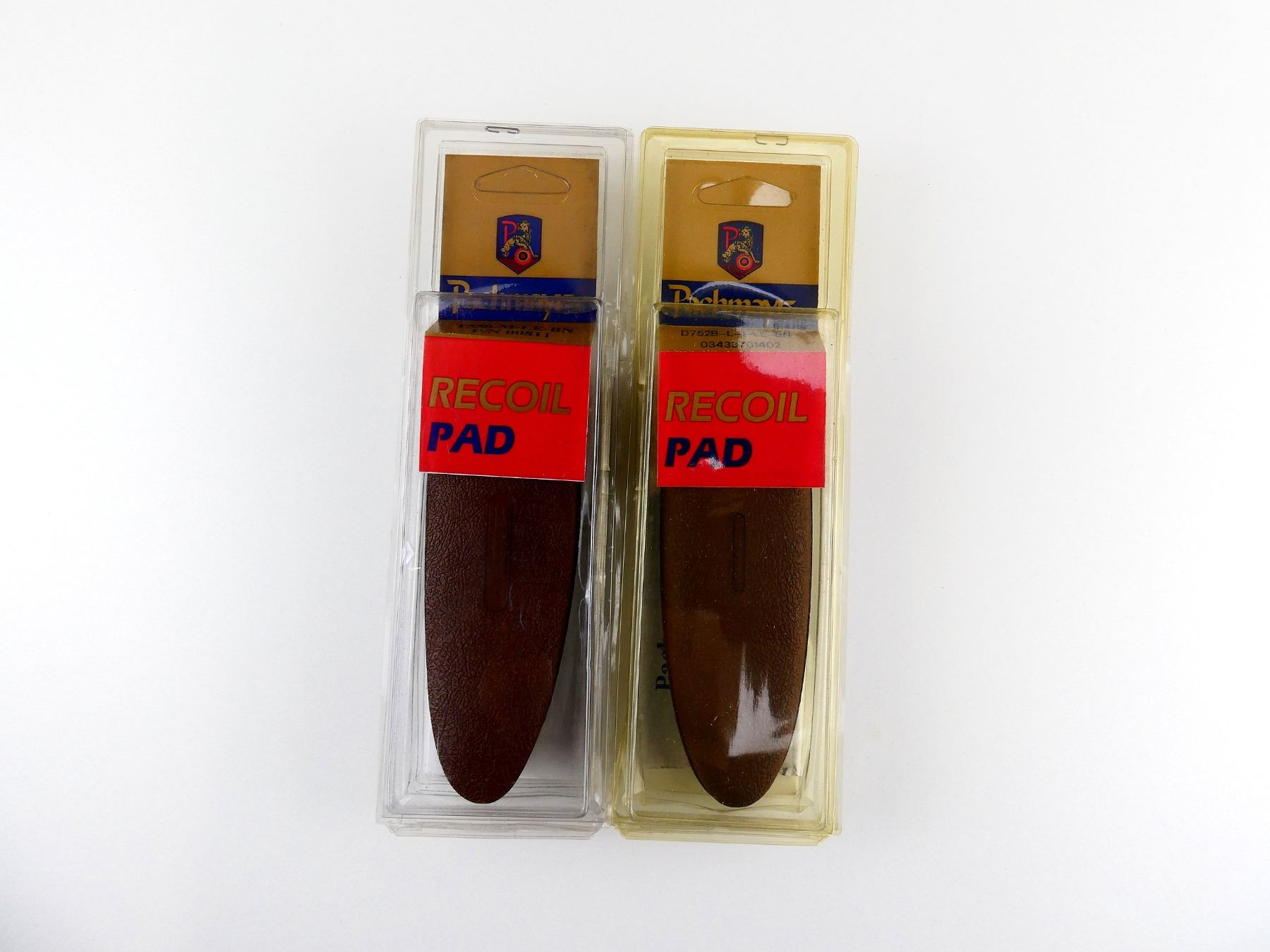 LOT INCLUDES; (1) BROWN LEATHER RECOIL PAD, PART #: D752B-L-1-LE-BN #03433701402, NOS IN ORIGINAL PACKAGING. MAY REQUIRE FITTING & (1) BROWN LEATHER RECOIL PAD, PART #: T550-M-LE-BN #00811, NOS IN ORIGINAL PACKAGING. MAY REQUIRE FITTING. SEE PHOTOS.