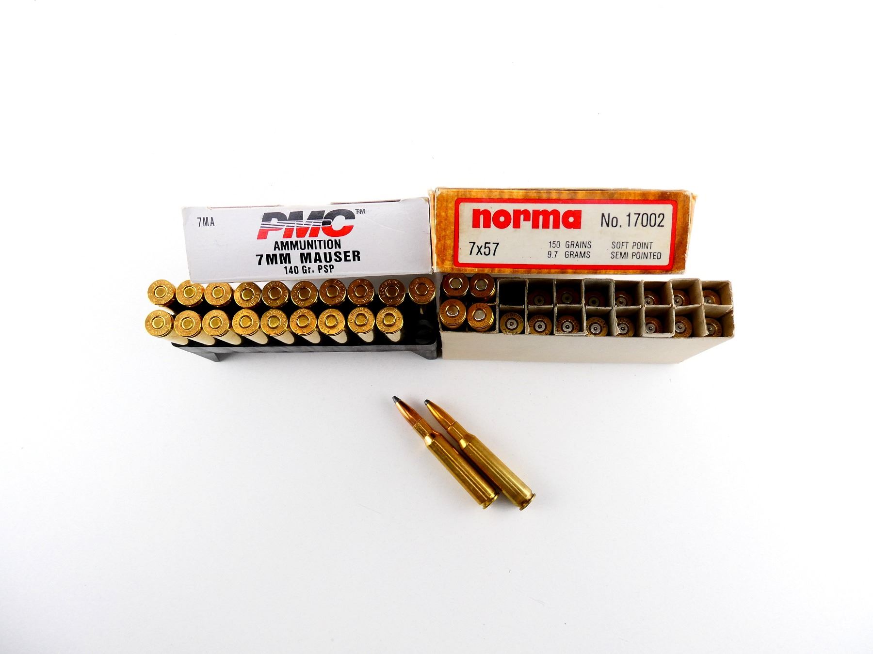 ASSORTED PMC / NORMA 7MM MAUSER AMMO AND NON-PRIMED BRASS CASES LOT