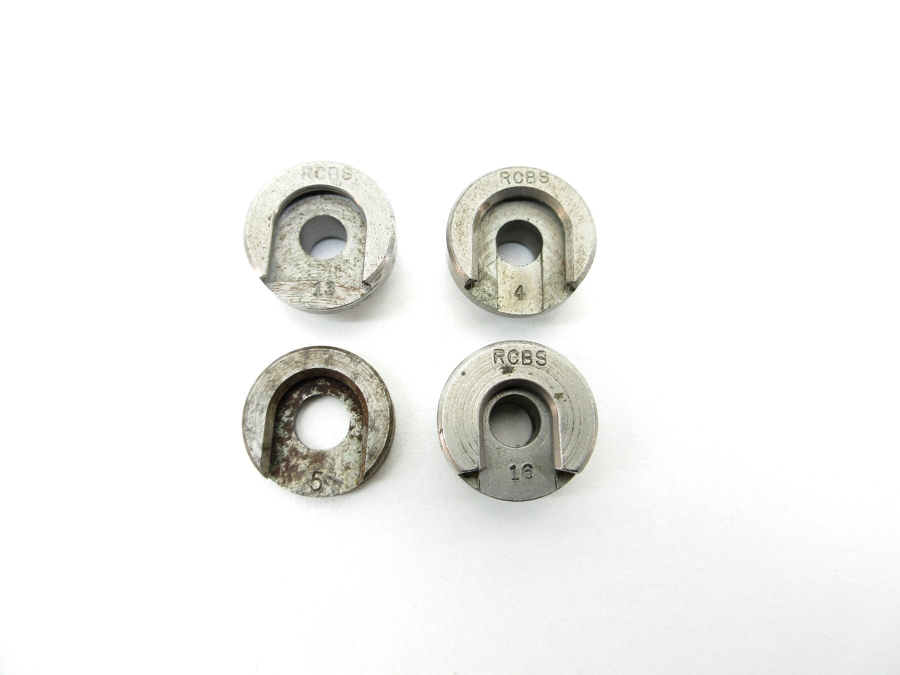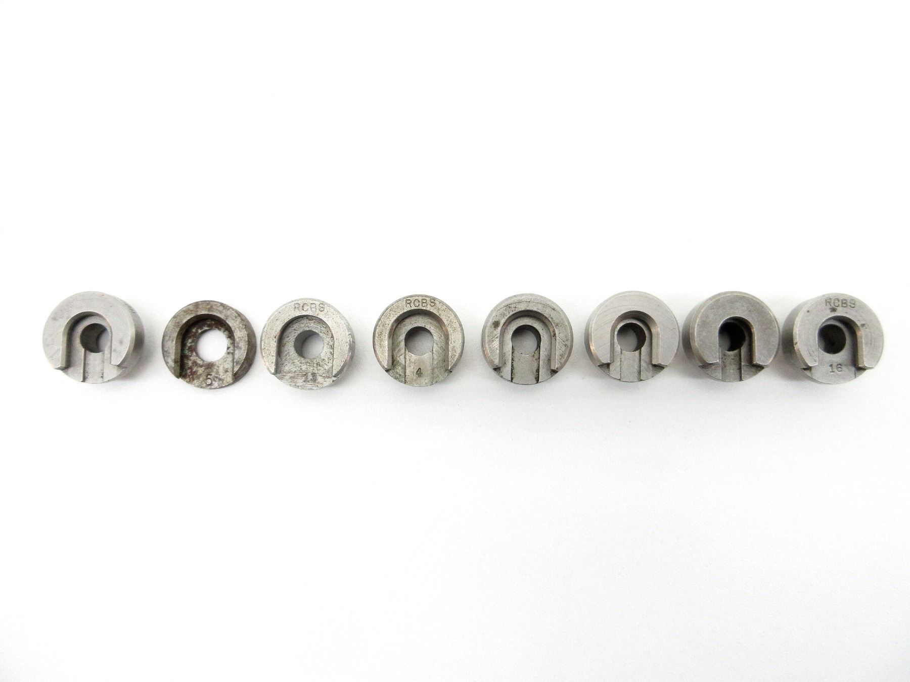 LOT INCLUDES; (7) RCBS SHELL HOLDERS, #4, #6, #10, #11, #12, #13, #16 & (1) UNKNOWN #5 SHELL HOLDER. SEE PHOTOS.
