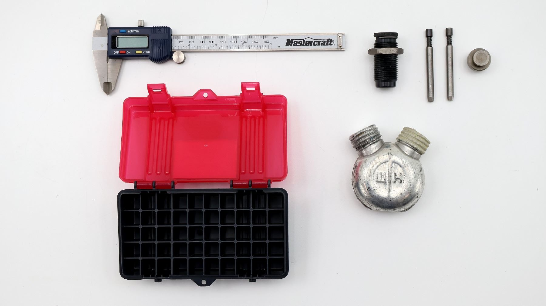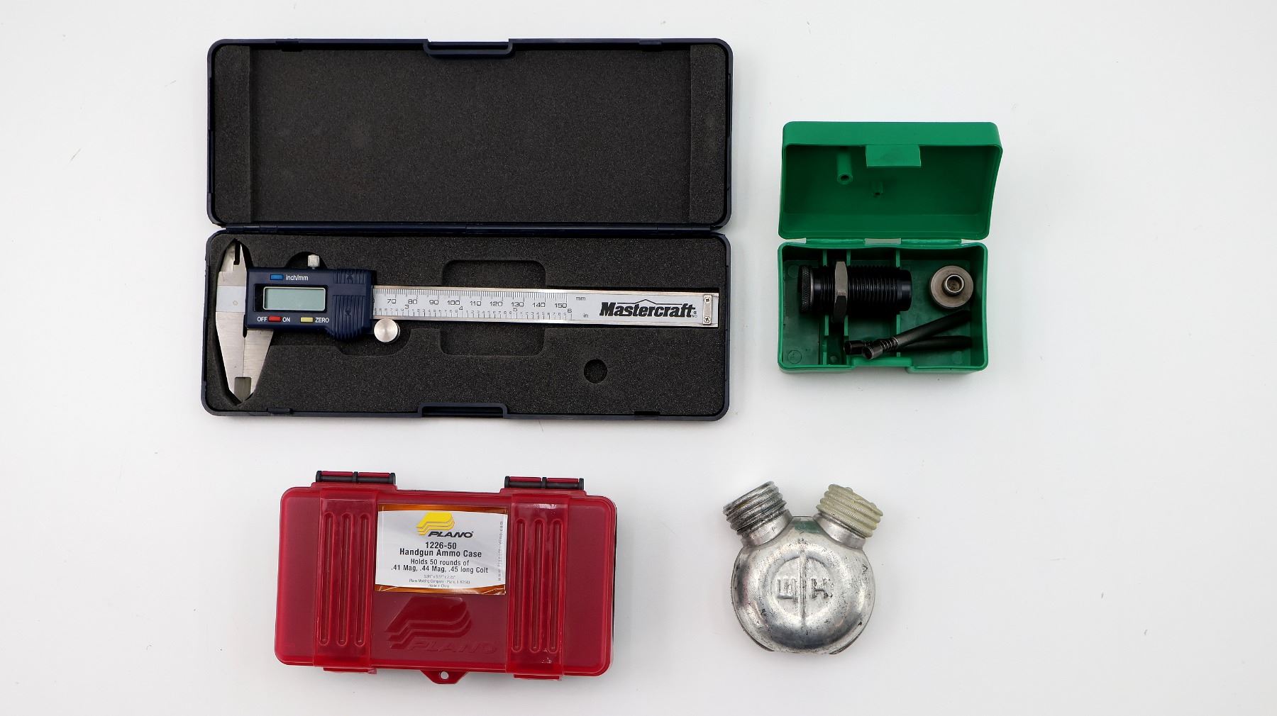 LOT INCLUDES; (1) RCBS PRIMING KIT, KIT MAY NOT BE COMPLETE, (1) MASTERCRAFT DIGITAL CALIPER, 0 TO 6", TESTED (WORKS), (1) PLANO 1226-50 PLASTIC HANDGUN AMMO CASE, HOLS 50-RNDS, FITS .41 MAG., .44 MAG., .45 L COLT & (1) COMBLOC STEEL DOUBLE-SPOUTED OILER, VARIOUS MARKINGS. SEE PHOTOS.