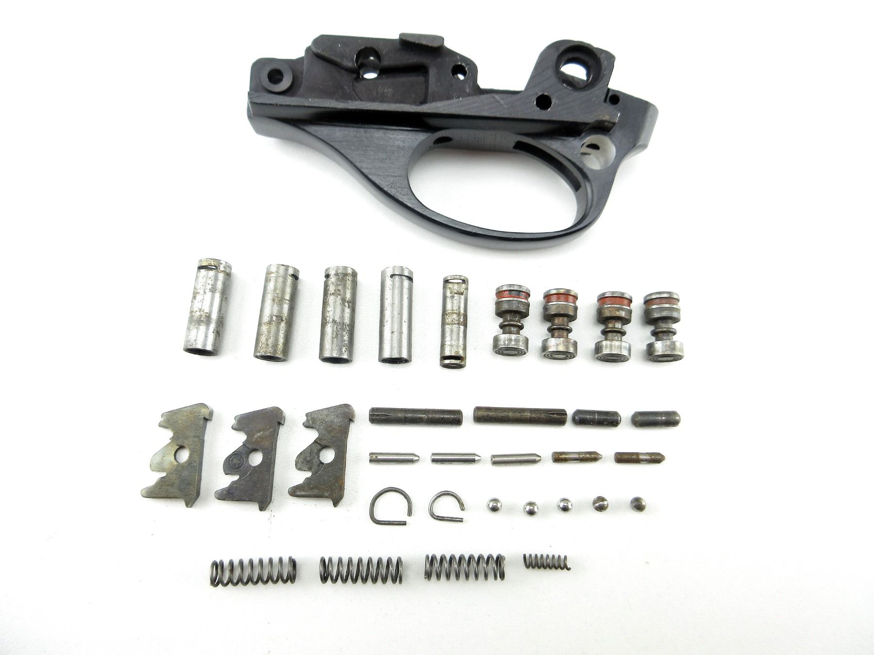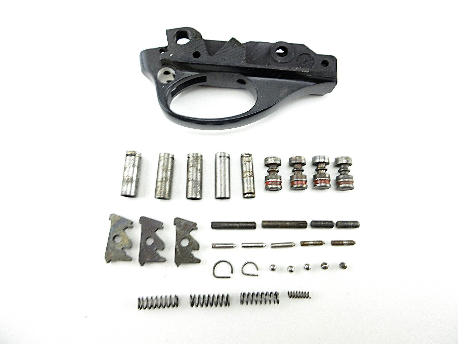 LOT INCLUDES; STRIPPED TRIGGER GUARDS, SEARS, SAFETIES, SPRINGS, PINS, ETC. MAY REQUIRE FITTING. SEE PHOTOS.