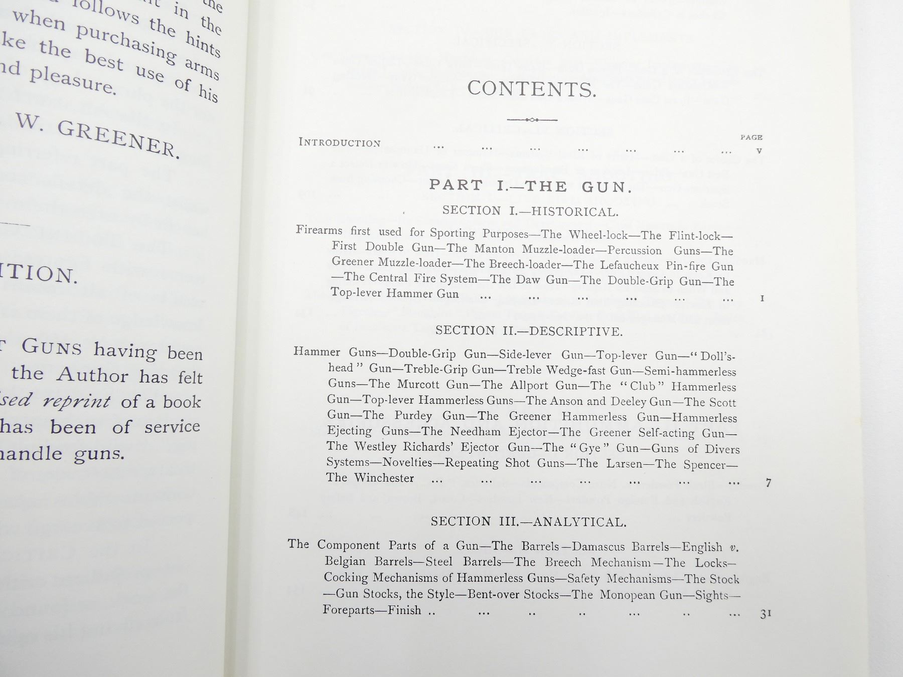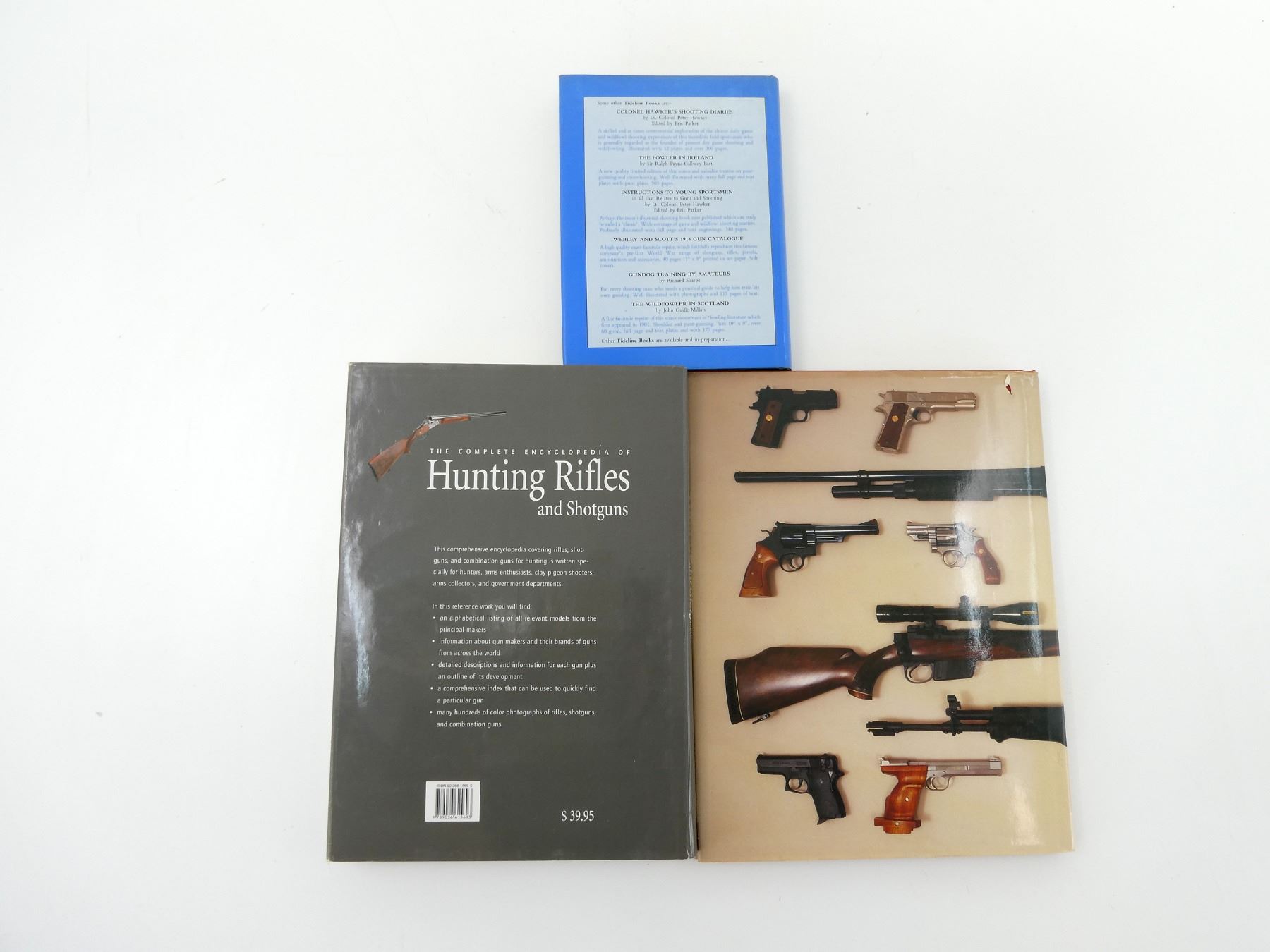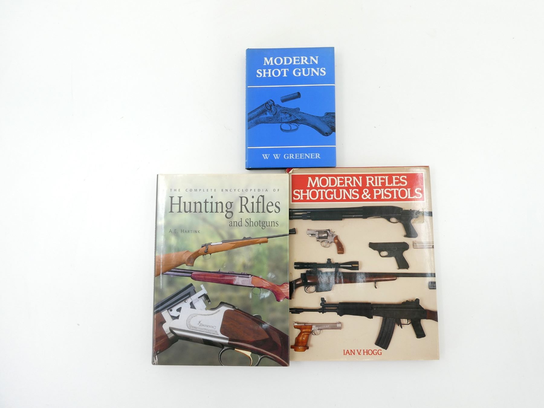 LOT INCLUDES; (1) "THE COMPLETE ENCYCLOPEDIA OF HUNTING RIFLES AND SHOTGUNS" BOOK BY A.E. HARTNIK, HARD COVER WITH DUST COVER, ISBN: 90-366-1569-0, (1) "MODERN RIFLES SHOTGUNS & PISTOLS" BOOK BY IAN V. HOGG, HARD COVER WITH DUST COVER, ISBN: 0-86124-235-1 & (1) "MODERN SHOT GUNS" BOOK BY W.W. GREENER, HARD COVER WITH DUCT COVER, COPYRIGHT 1986. SEE PHOTOS.