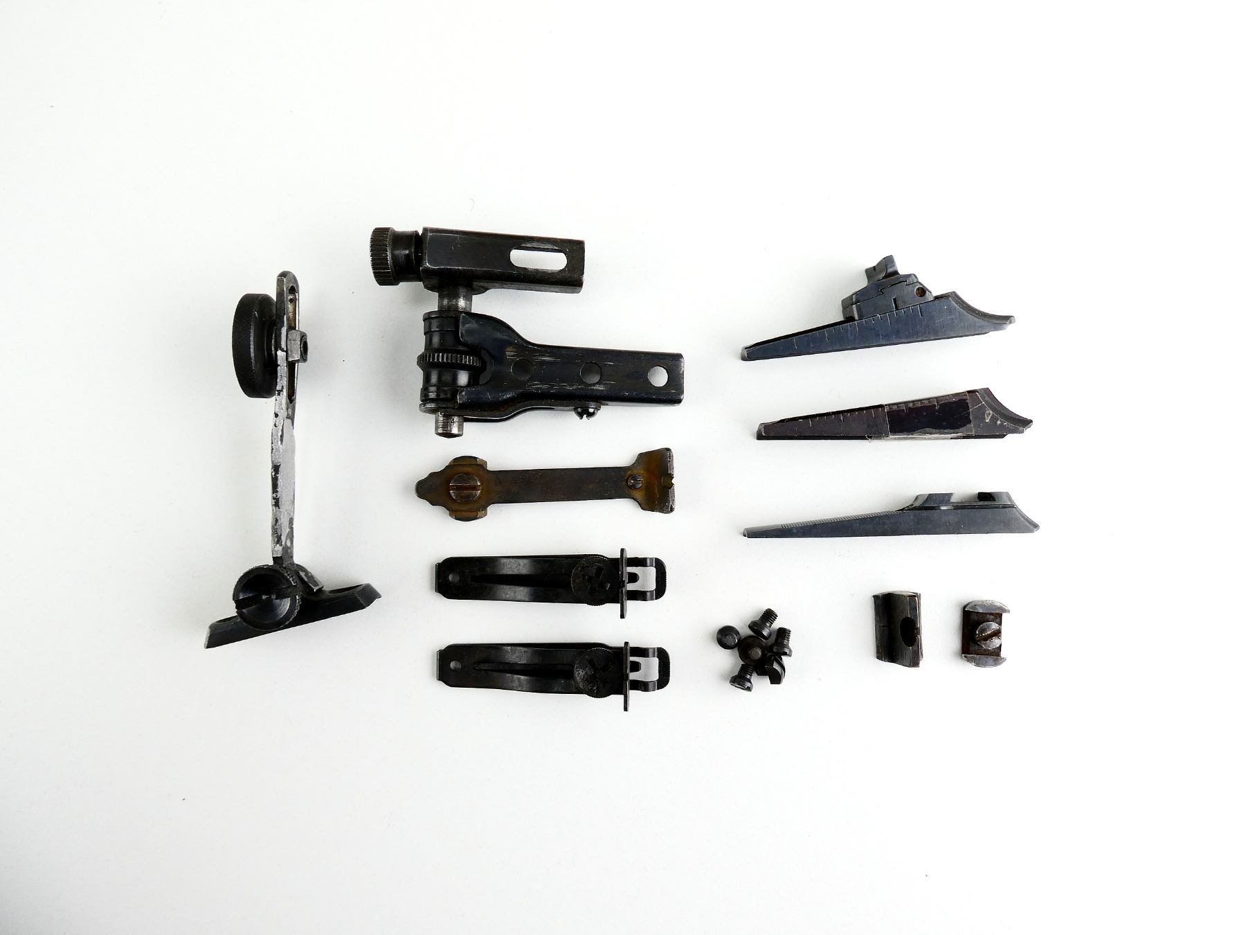LOT INCLUDES; REMINGTON 700 FRONT RAMPS & REAR SIGHT, NYLON 66 REAR SIGHTS, MOSSBERG S-130 INCOMPLETE SIGHT, ETC. MAY REQUIRE FITTING. SEE PHOTOS.