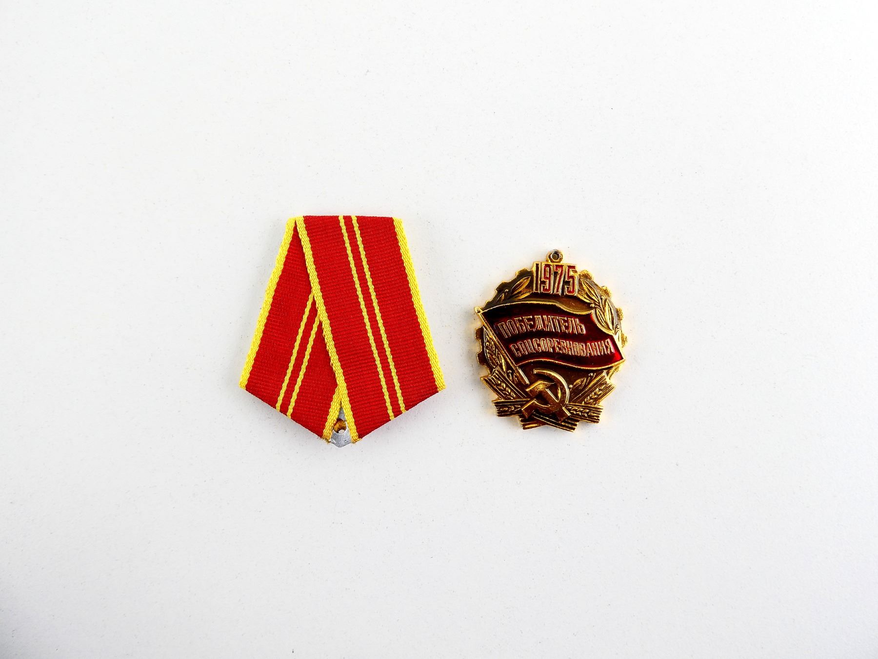 LOT INCLUDES: (1) RIBBON FOR MEDAL OF LENIN 100 YEARS (RIBBON ONLY) & (1) 1975 WINNER OF THE SOCIALIST COMPETITION AWARD, NO RIBBON, MAKER'S MARK ON BACK. SEE PHOTOS.