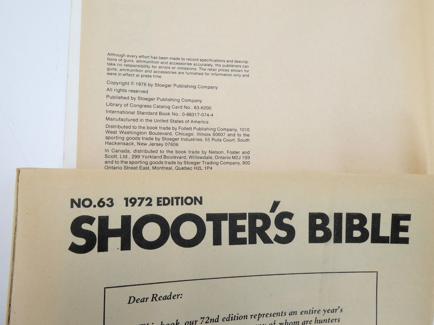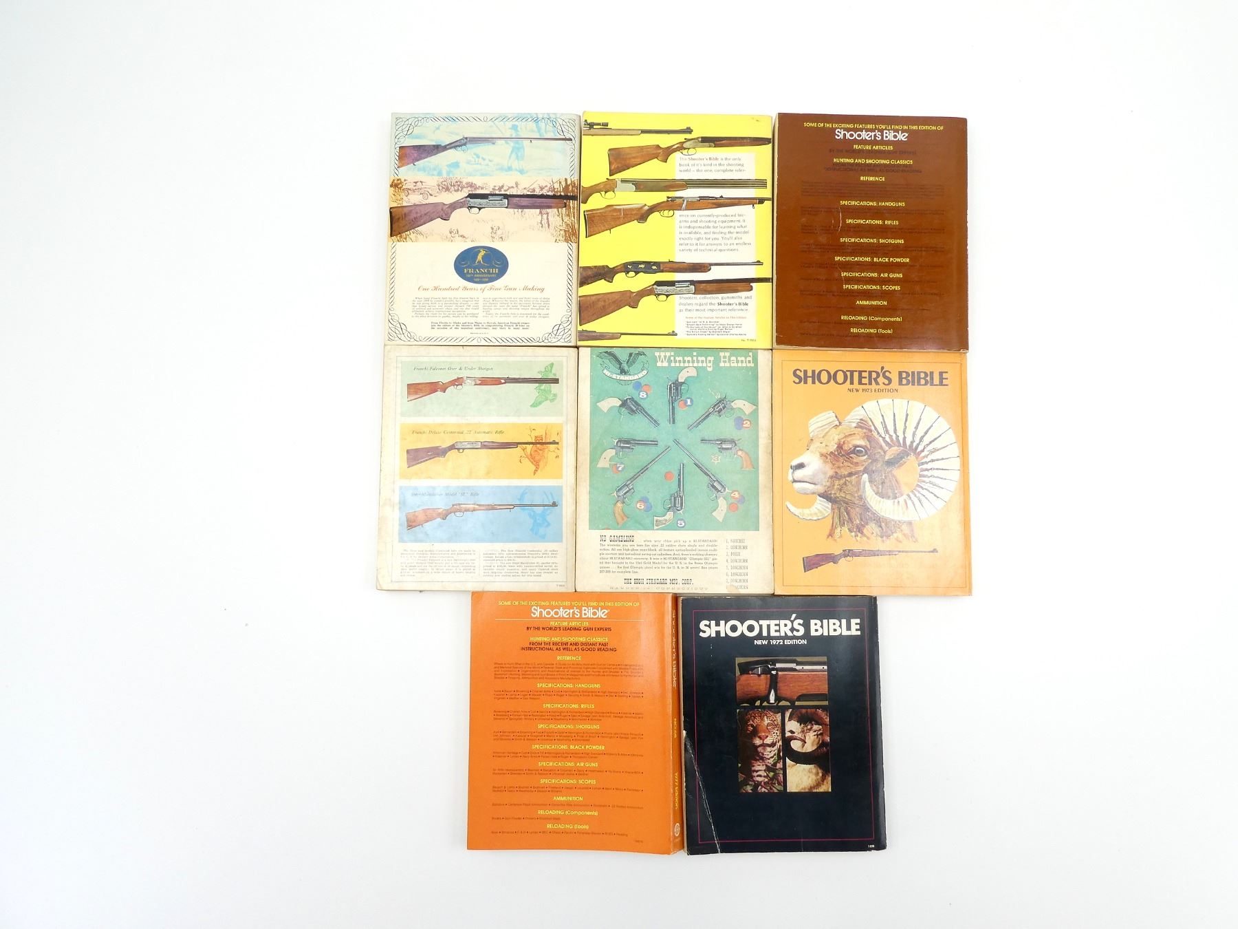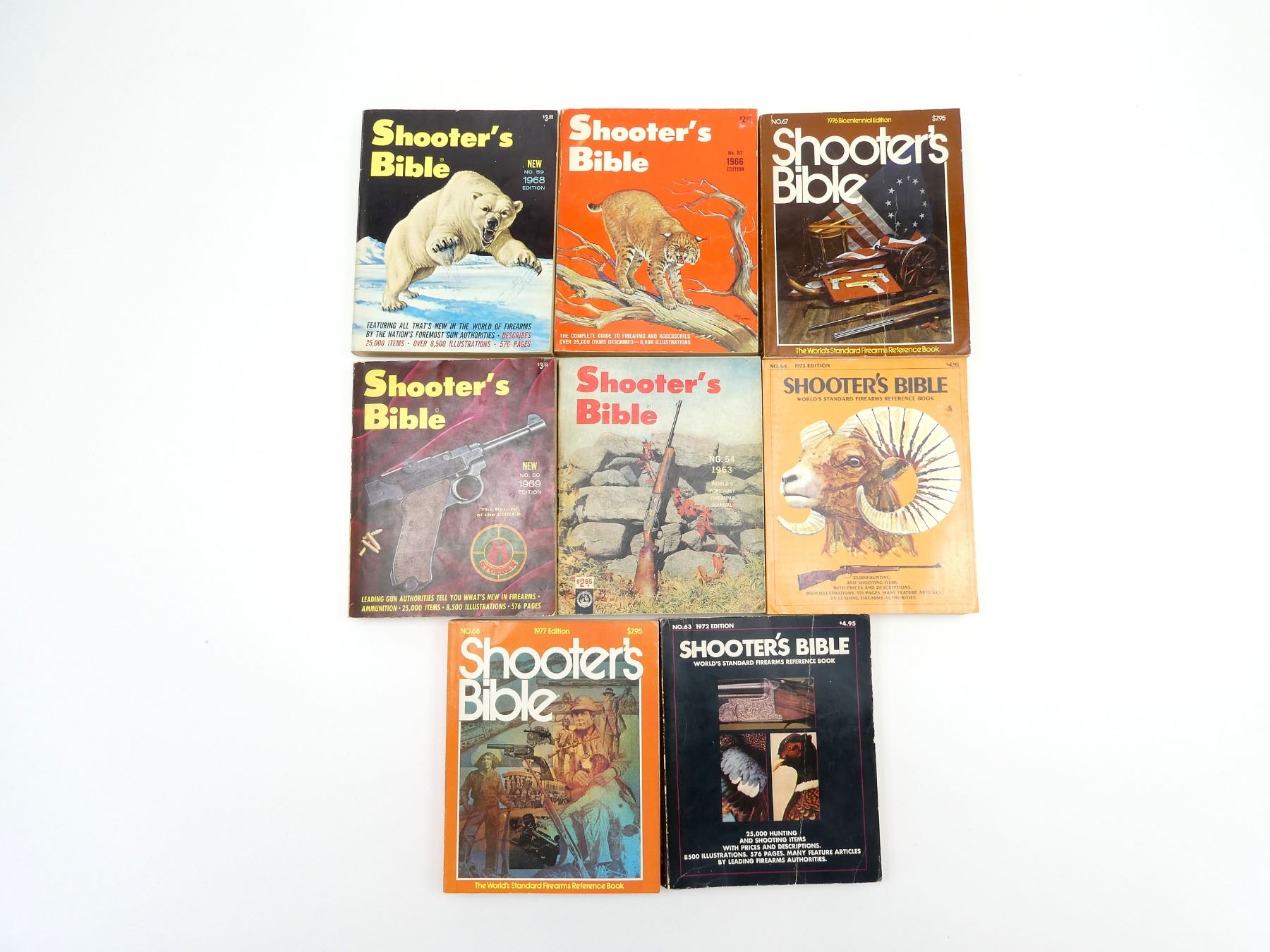 VARIOUS EDITORS, SOFT COVERS, LOT INCLUDES; (1) "NO. 54, 1963 EDITION", COPYRIGHT 1962, (1) "NO. 57, 1966 EDITION", COPYRIGHT 1965, (1) "NO. 59, 1968 EDITION", COPYRIGHT 1967, (1) "NO. 60, 1969 EDITION, THE RETURN OF THE LUGER", COPYRIGHT 1968, (1) "NO. 63, 1972 EDITION", ISBN: 0-695-80266-6, (1) "NO. 64, 1973 EDITION", ISBN: 0-695-80362-X, (1) "NO. 67, 1976 BICENTENNIAL EDITION", ISBN: 0-88317-055-8 & (1) "NO. 68, 1977 EDITION", ISBN: 0-88317-074-4. SEE PHOTOS.