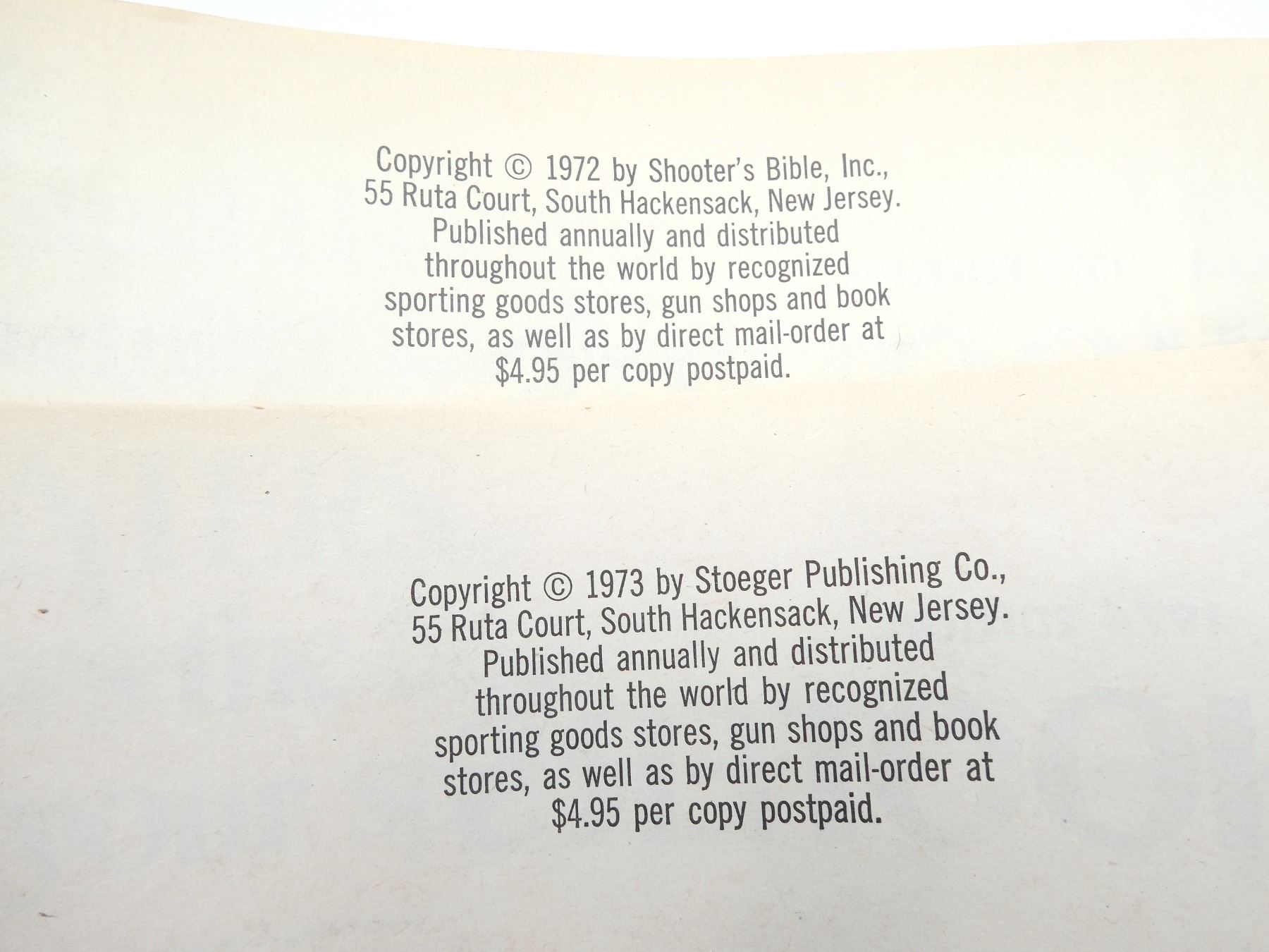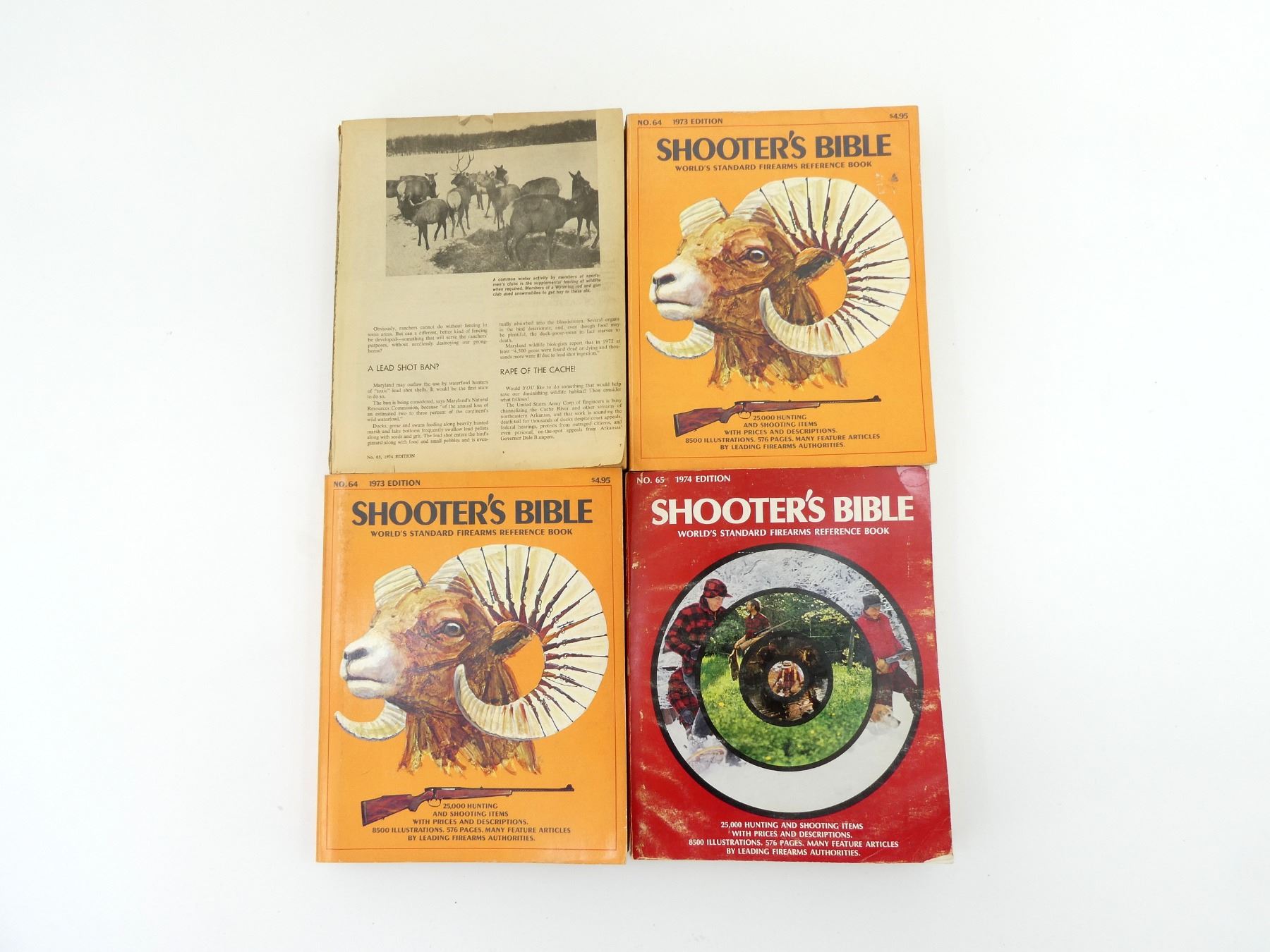 LOT INCLUDES; (2) "SHOOTER'S BIBLE" NO. 64, 1973 EDITION, BY SHOOTER'S BIBLE INC., SOFT COVER, ISBN: 0-695-80362-X & (2) "SHOOTER'S BIBLE" NO. 65, 1974 EDITION, BY SHOOTER'S BIBLE INC., SOFT COVER, ISBN: 0695-80393-X. SEE PHOTOS.