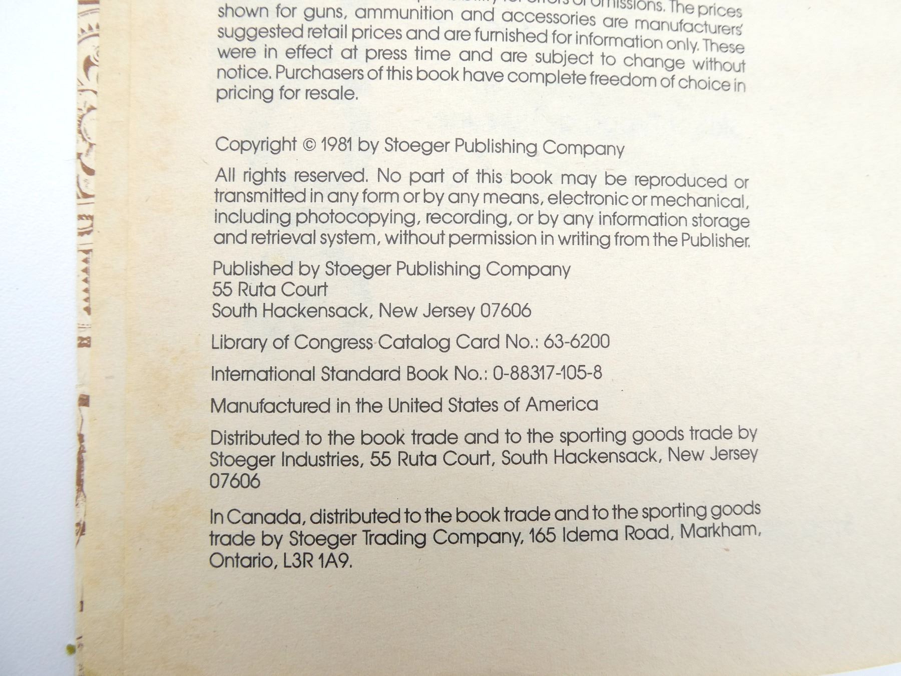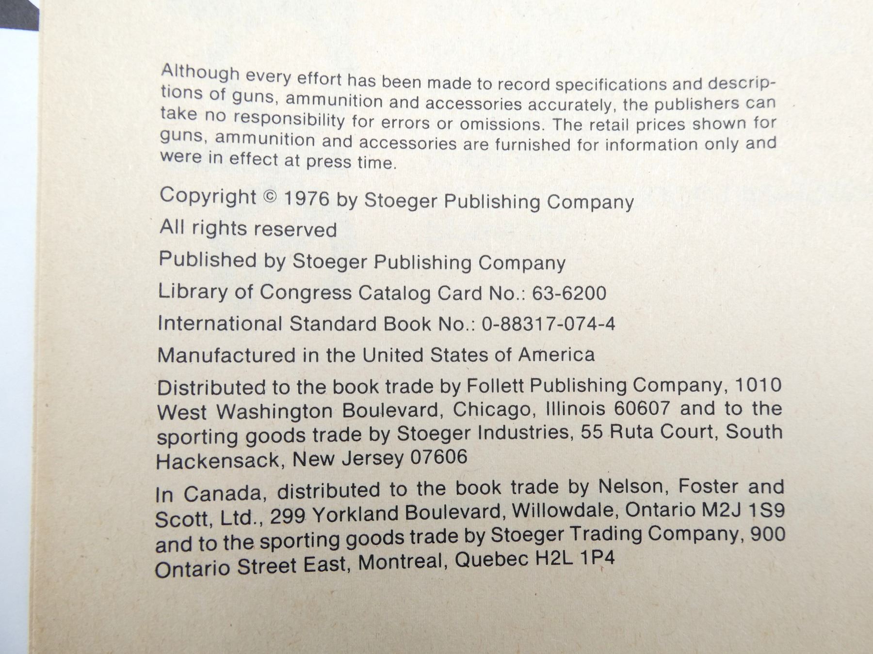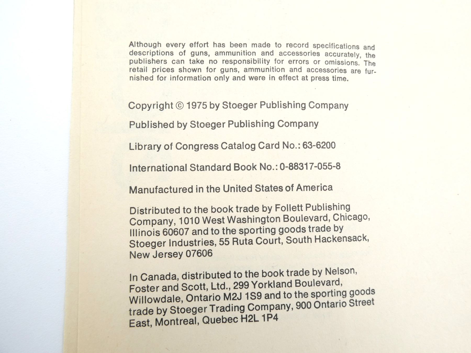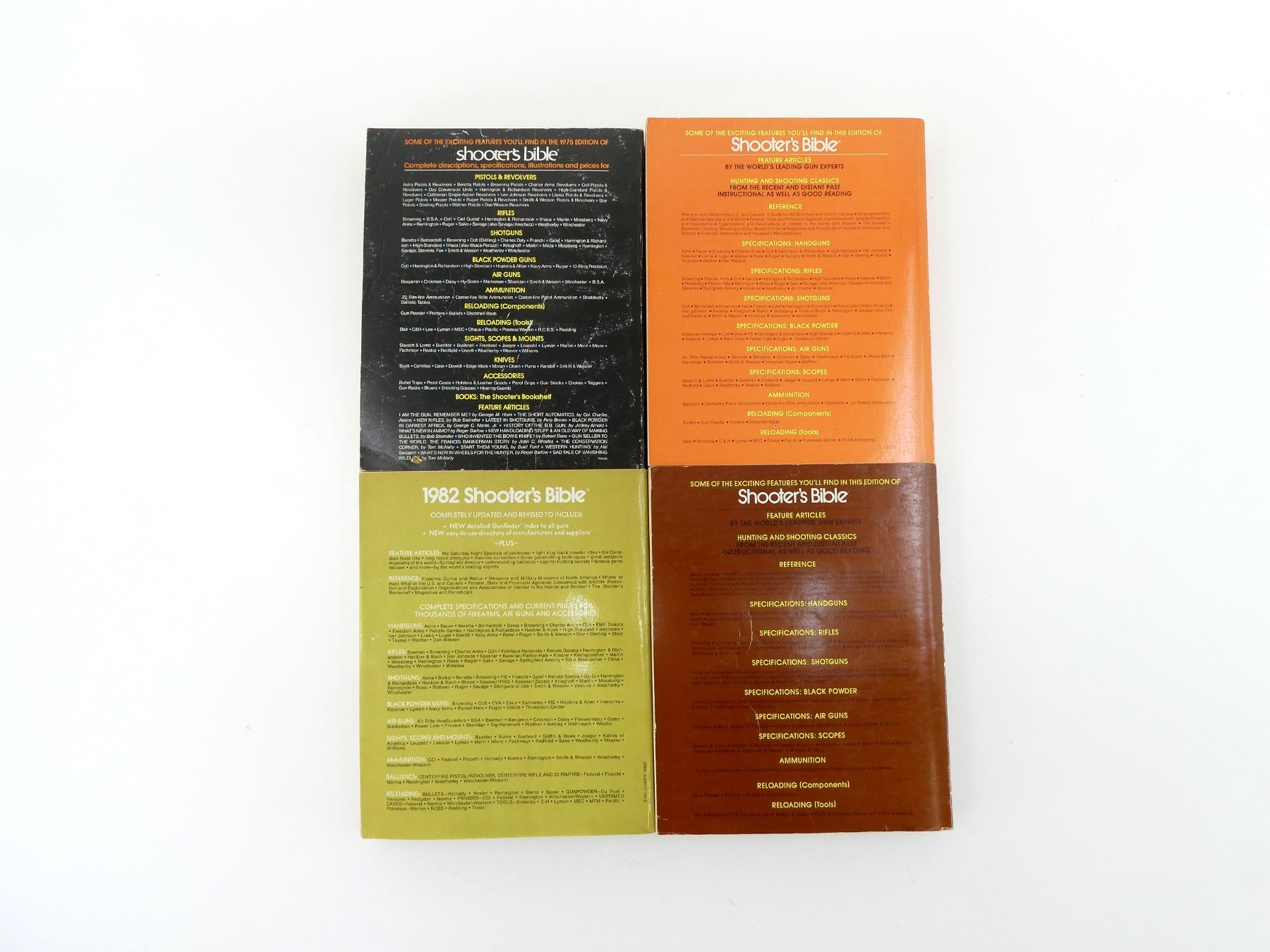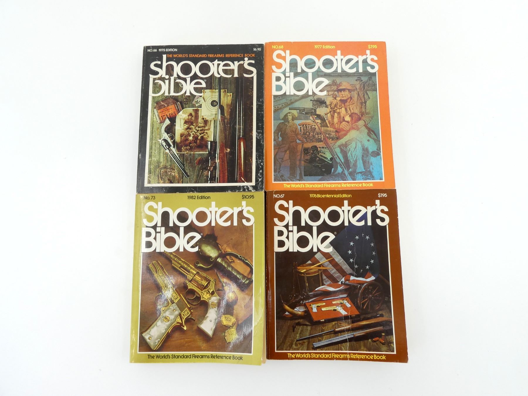 LOT INCLUDES; (1) "SHOOTER'S BIBLE" NO. 66, 1975 EDITION, PUBLISHED BY STOEGER PUBLISHING COMPANY, SOFT COVER, ISBN: 0-88317-005-1, (1) "SHOOTER'S BIBLE" NO. 67, 1976 EDITION, PUBLISHED BY STOEGER PUBLISHING COMPANY, SOFT COVER, ISBN: 0-88317-055-8, (1) "SHOOTER'S BIBLE" NO. 68, 1977 EDITION, PUBLISHED BY STOEGER PUBLISHING COMPANY, SOFT COVER, ISBN: 0-88317-074-4 & (1) "SHOOTER'S BIBLE" NO. 73, 1982 EDITION, PUBLISHED BY STOEGER PUBLISHING COMPANY, SOFT COVER, ISBN: 0-88317-105-8. SEE PHOTOS.