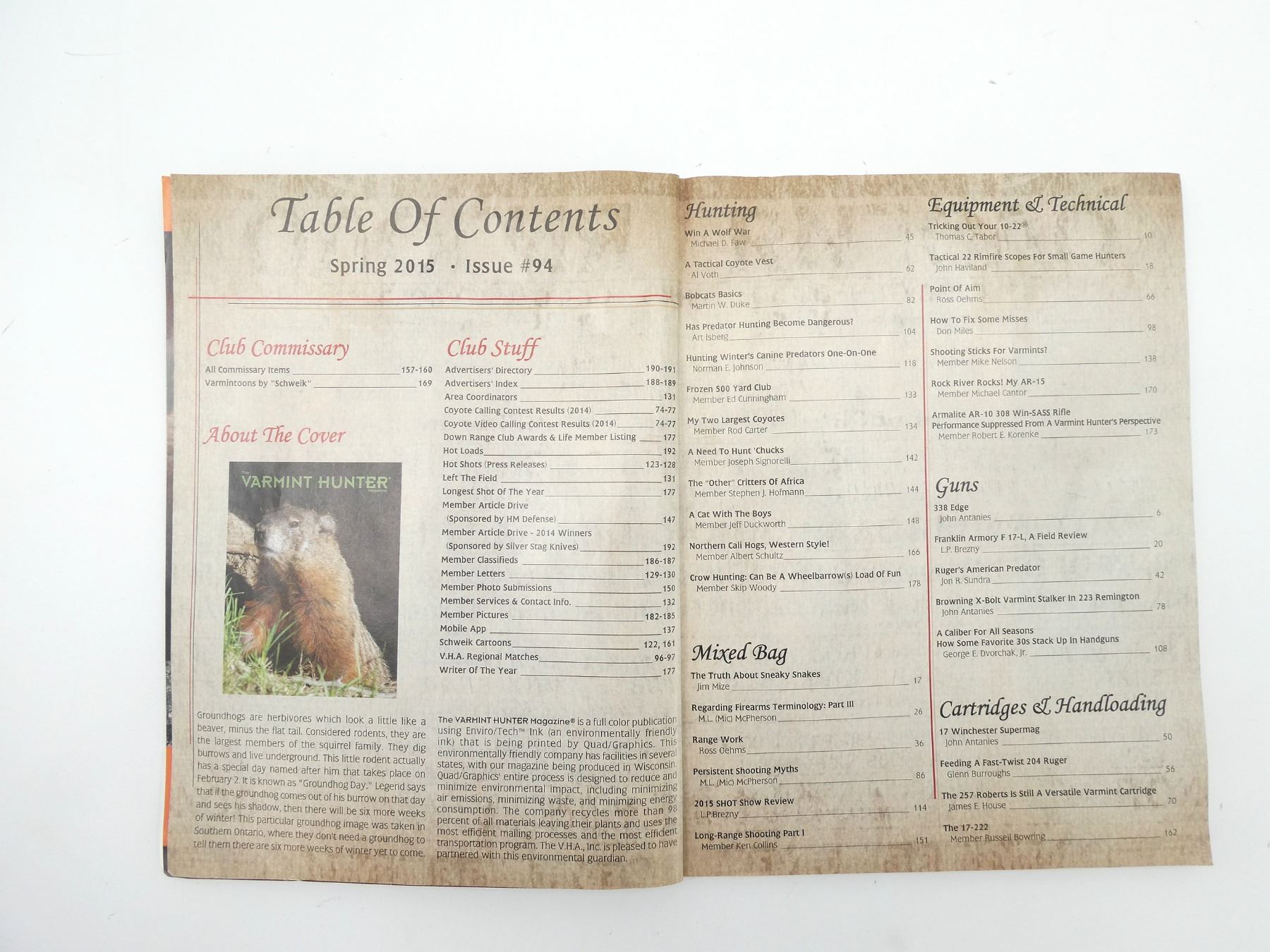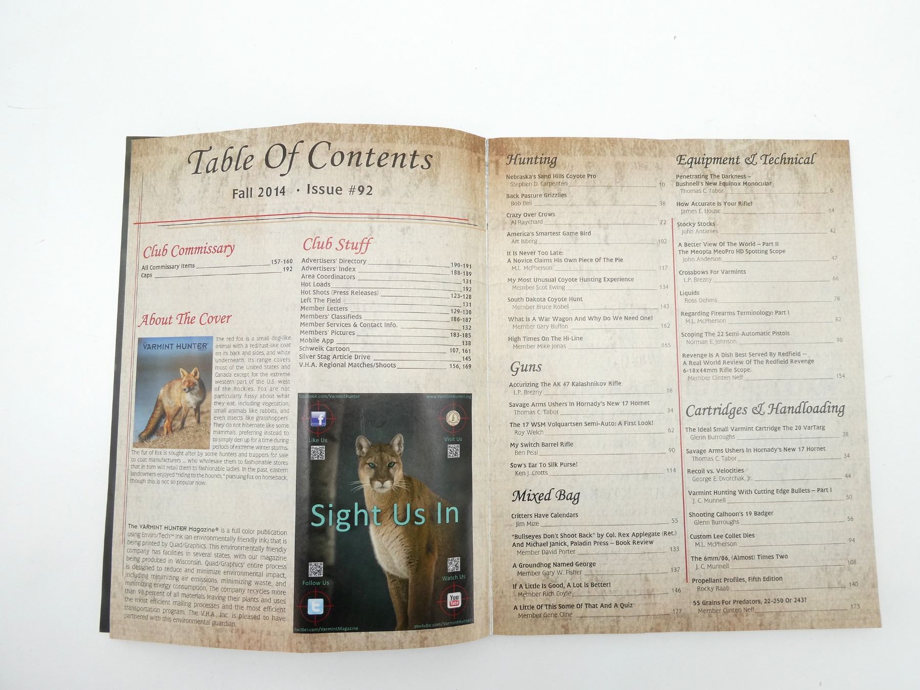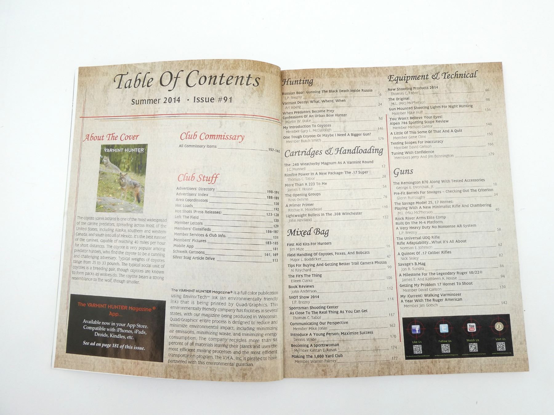 LOT INCLUDES; (5) "THE VARMINT HUNTER" MAGAZINE, ISSUES 89-94, SOFT COVER, SERIES NOT COMPLETE / SOME ISSUES MISSING / MAY CONTAIN DUPLICATES. SEE PHOTOS.