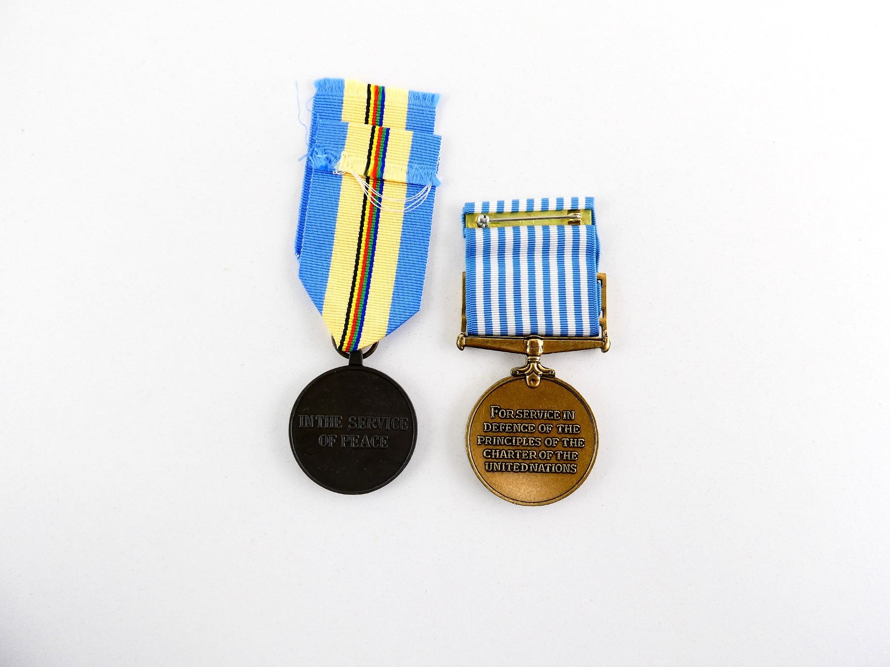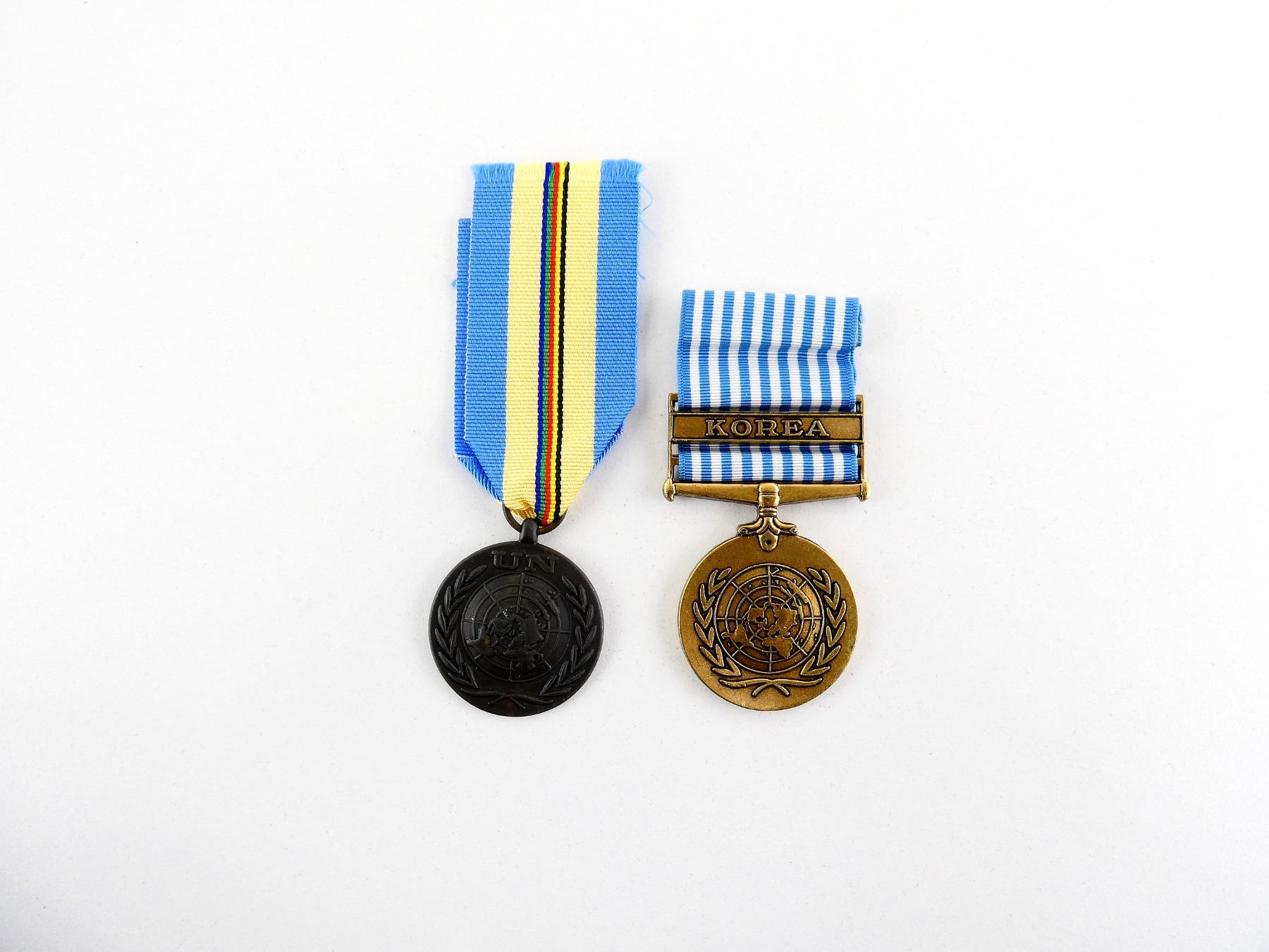 LOT INCLUDES; (1) UN SERVICE MEDAL KOREA WITH RIBBON & (1) UN TRANSITION ASSISTANCE GROUP NAMIBIA MEDAL WITH RIBBON. SEE PHOTOS.