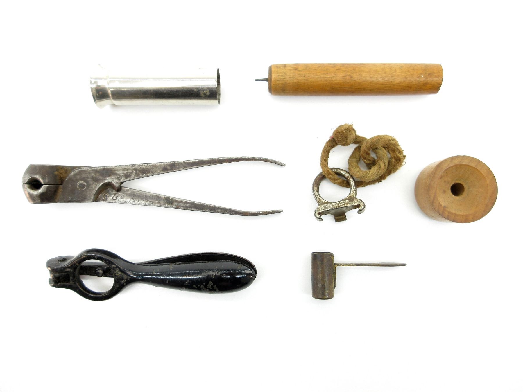 LOT INCLUDES; (6) ASSORTED 12 G. RELOADING TOOLS & ACCESSORIES & (1) UNKNOWN APPROX. 0.560" DIA. SINGLE-CAVITY ROUND BALL BULLET MOLD, MARKED: "20". SEE PHOTOS.