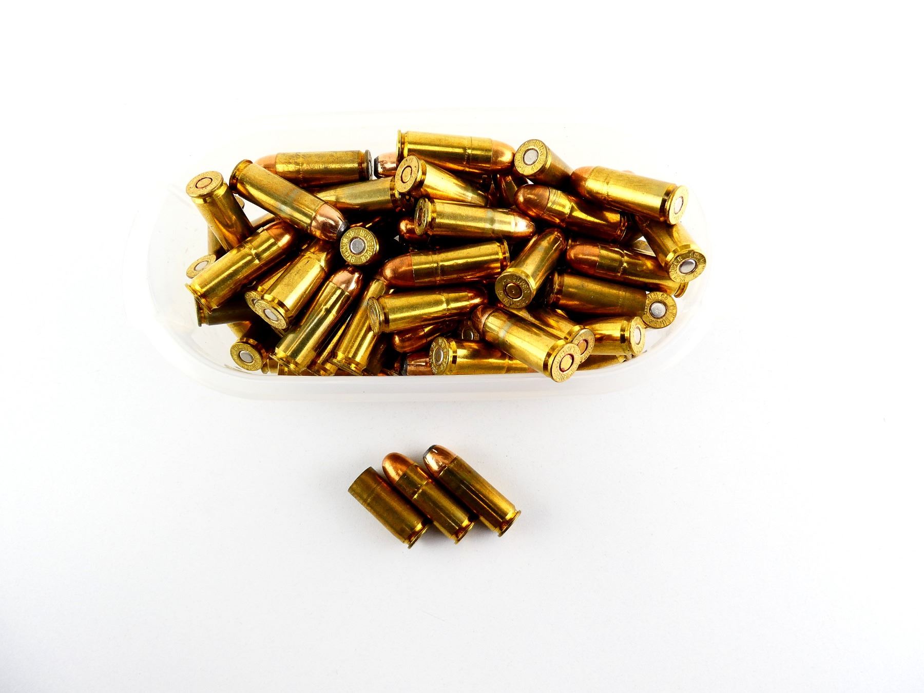 LOT INCLUDES; APPROX. (74) RNDS, SP & FMJ, (7) NON-PRIMED BRASS CASES.