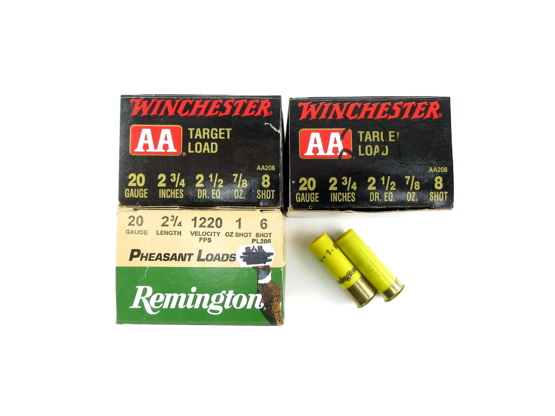 ASSORTED WINCHESTER AND REMINGTON 20 GAUGE 2 3/4" SHOT SHELL AMMO LOT