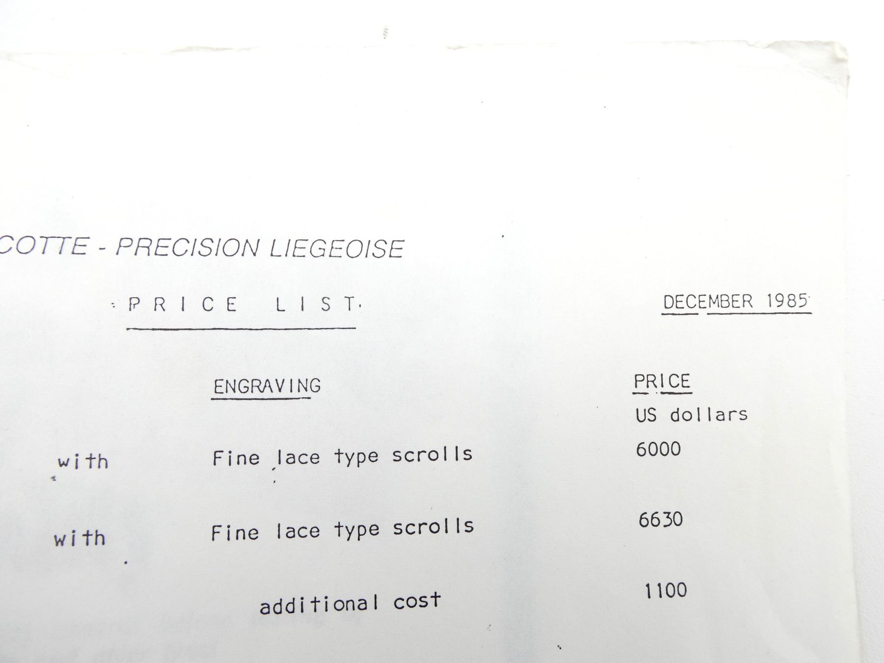 (1) BY AUGUSTE FRANCOTTE & C S.A., WITH PRICE LIST, IN ENGLISH, SOFT COVER, DATED 1985. SEE PHOTOS.