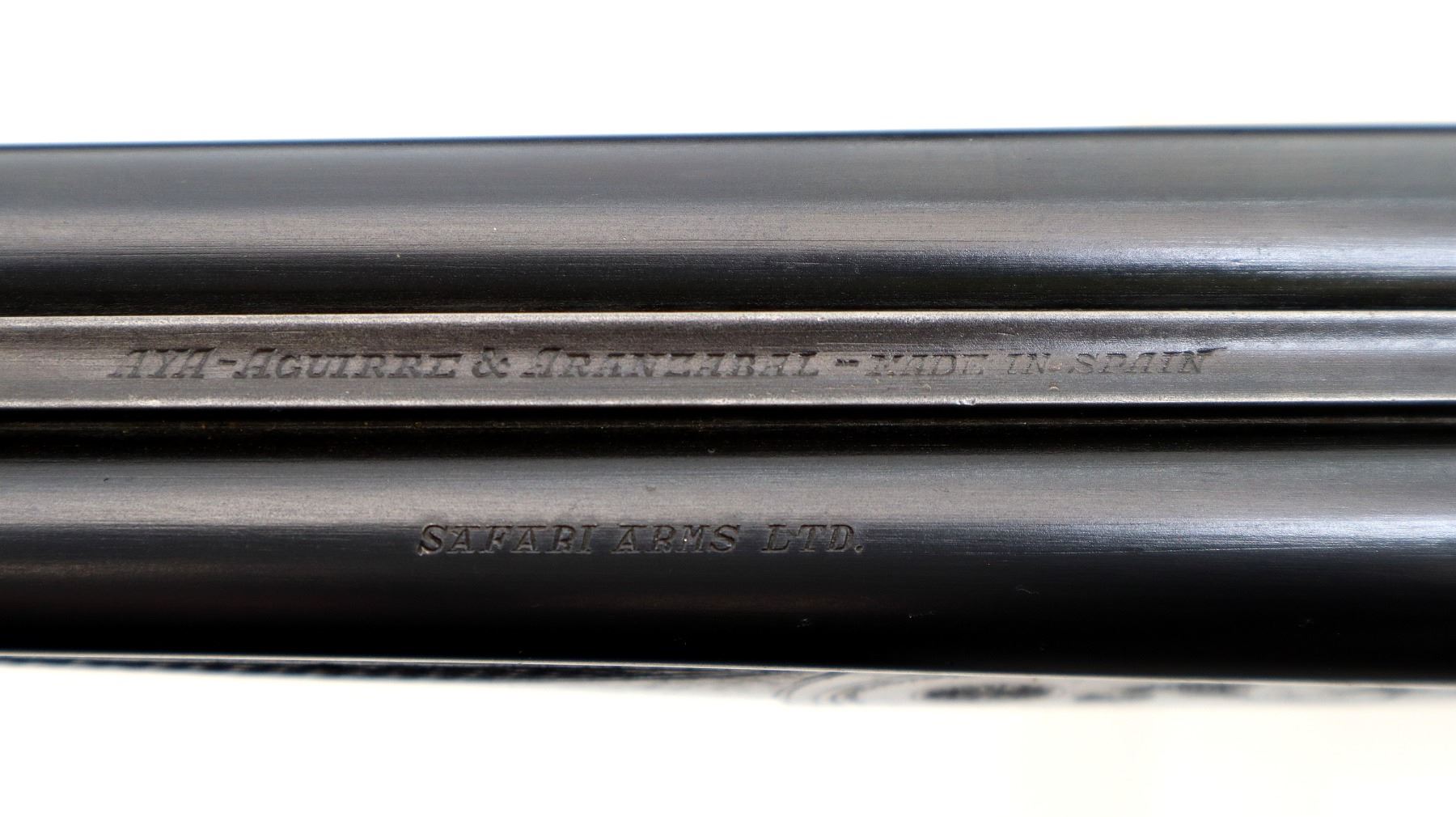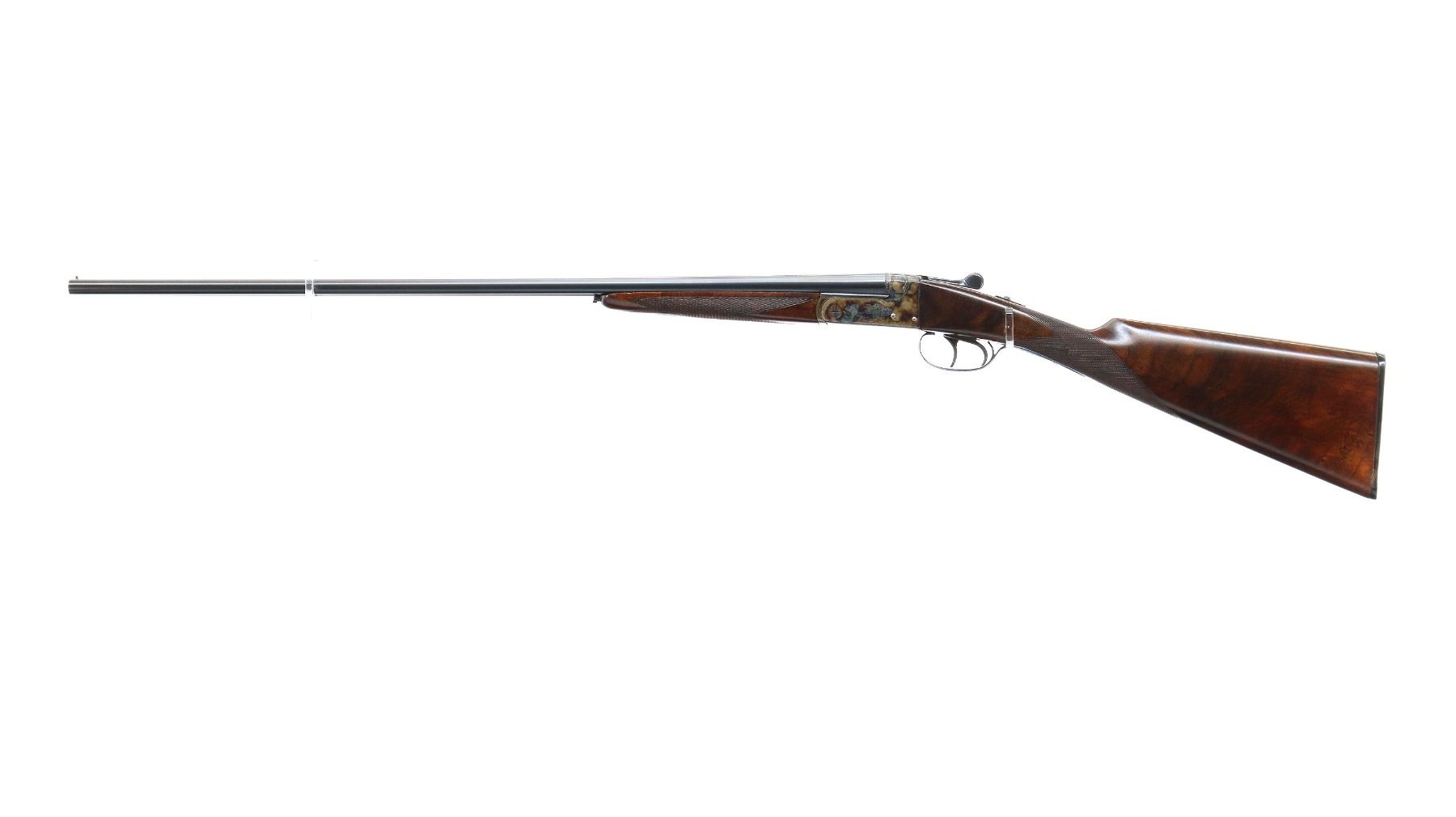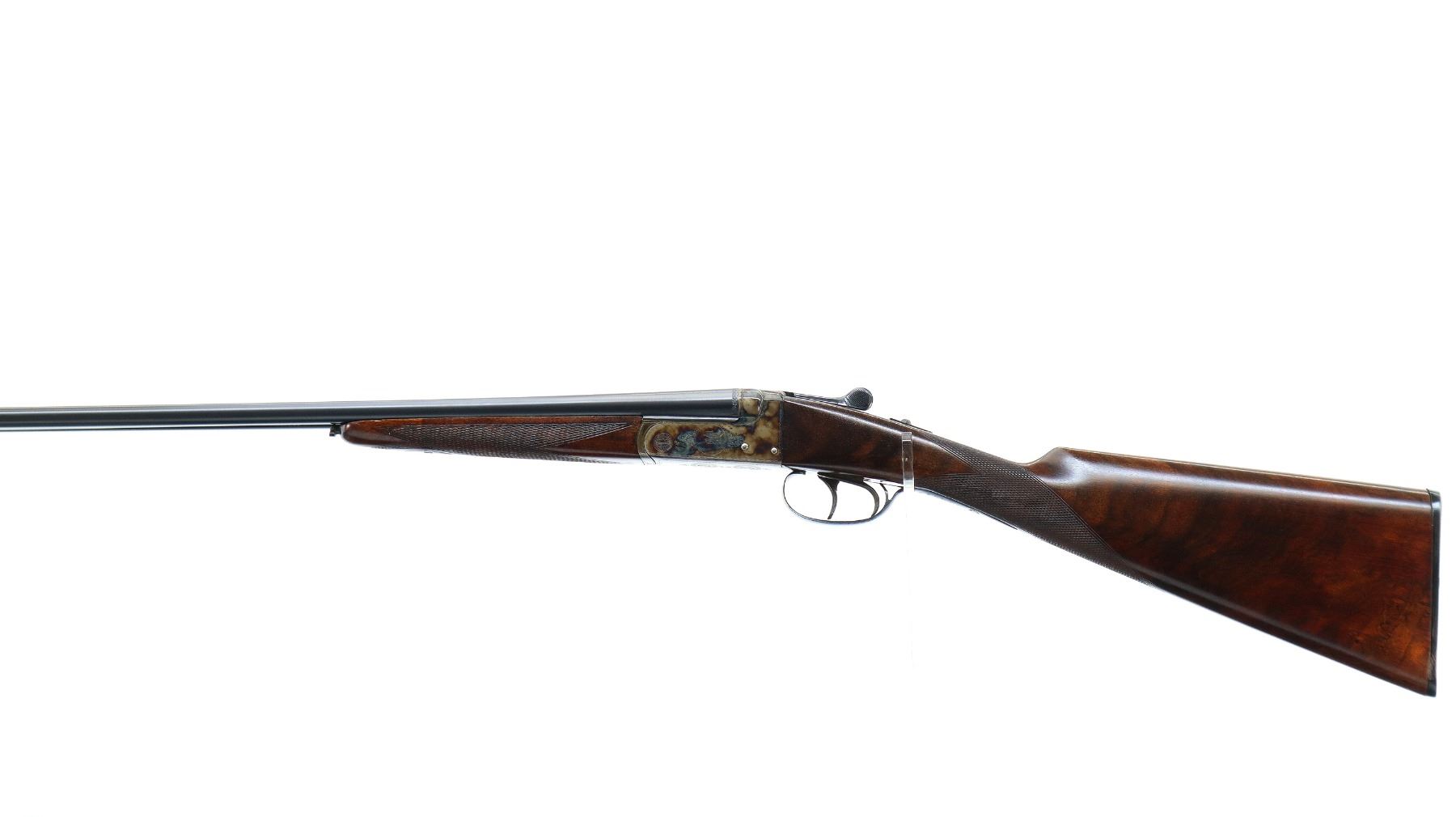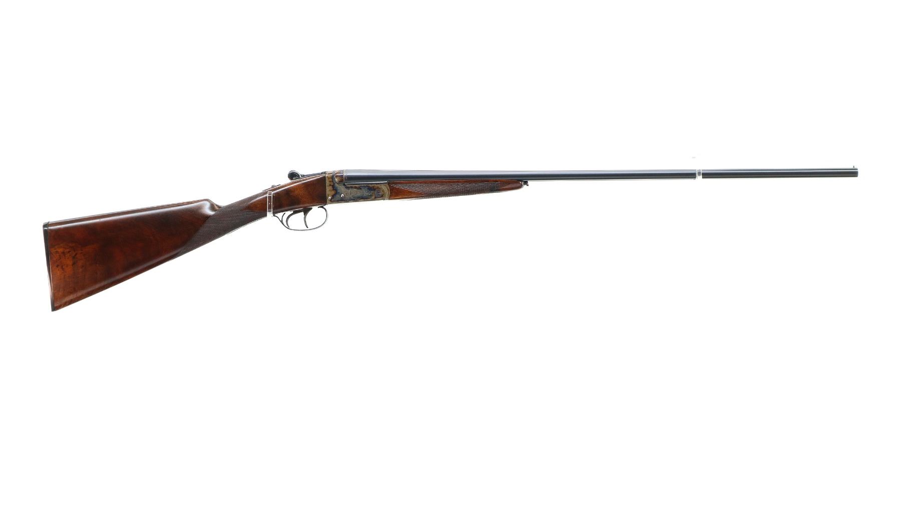 Main Description: Brass bead, blued barrels with smooth rib, engraved colour case hardened receiver with game birds, automatic safety, extractor, double triggers. Two piece wood stocks, checkered forearm and straight grip, checkered black polymer butt plate