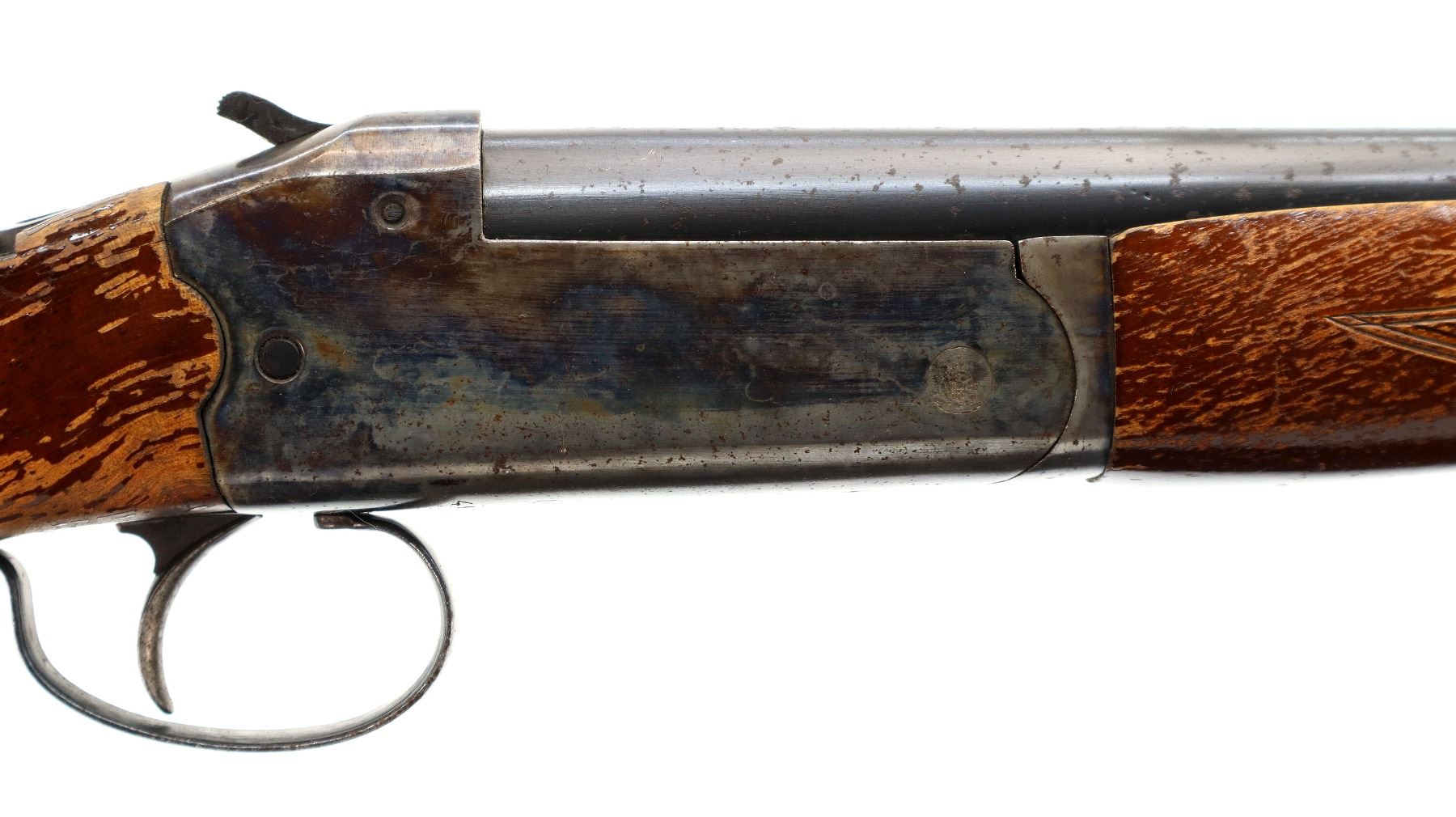 Wear: Metal finish shows some light rust overall, scratches, handling marks and wear. Stocks show some marks, scratches and wear.