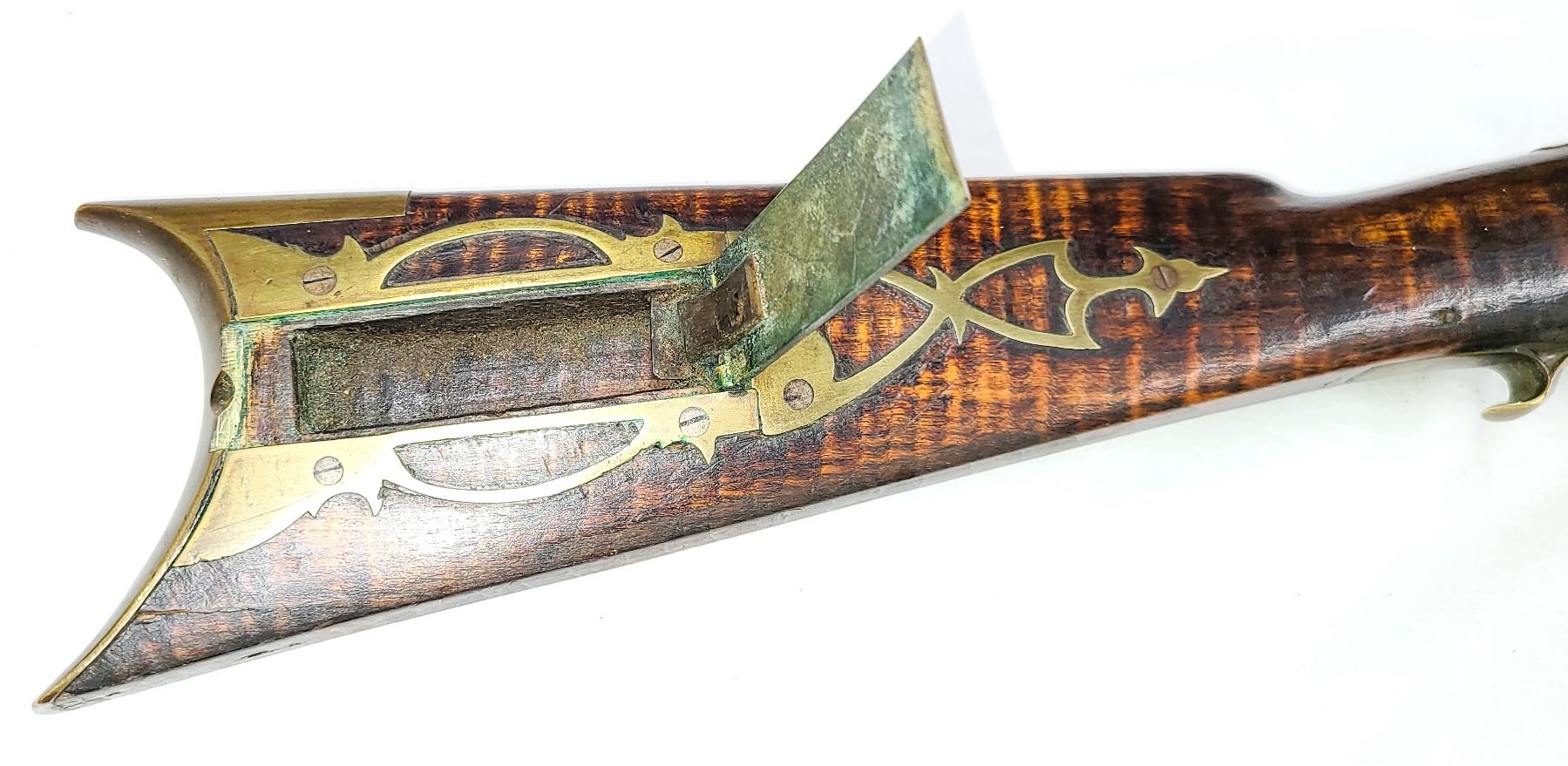 There is a nice Brass Cap Box on right side of stock. Brass cresent butt plate.
