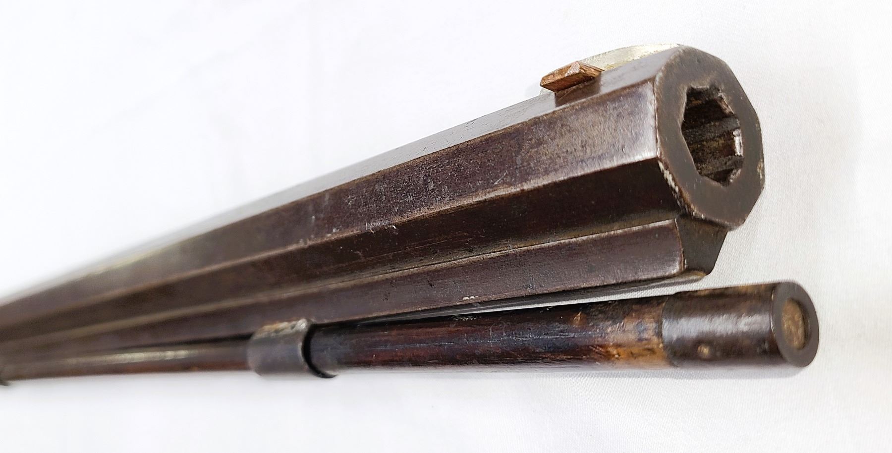The octagional barrel is very heavey and masures 33 inches long. Has very deep 7 groove rifling in