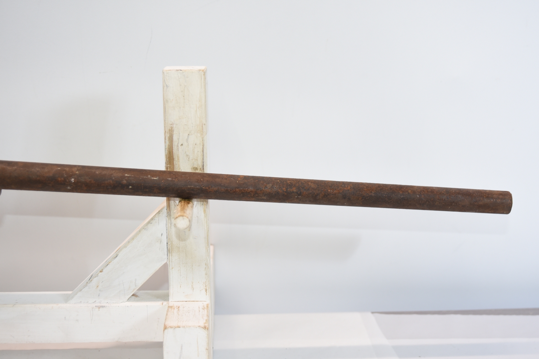 Metal shows lots of rust throughout, patina, scratches; condition is good.