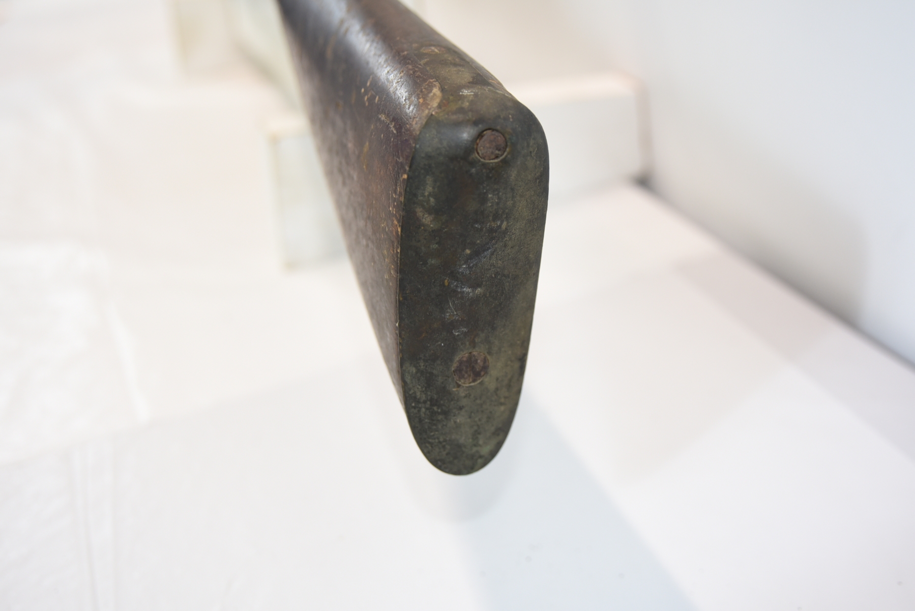 Metal shows lots of corrosion, with scratches, scuffs; condition is poor.