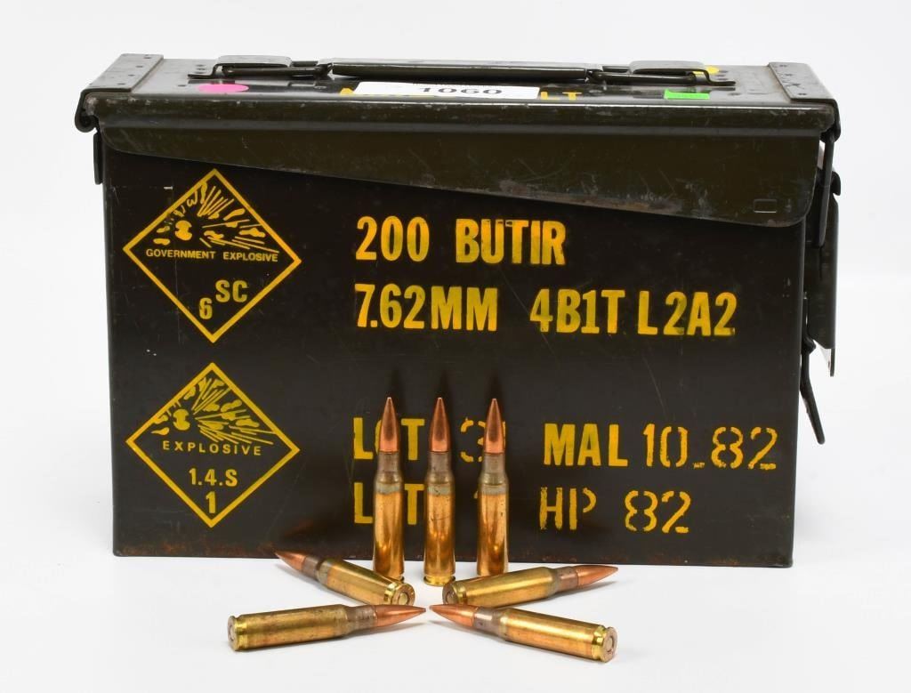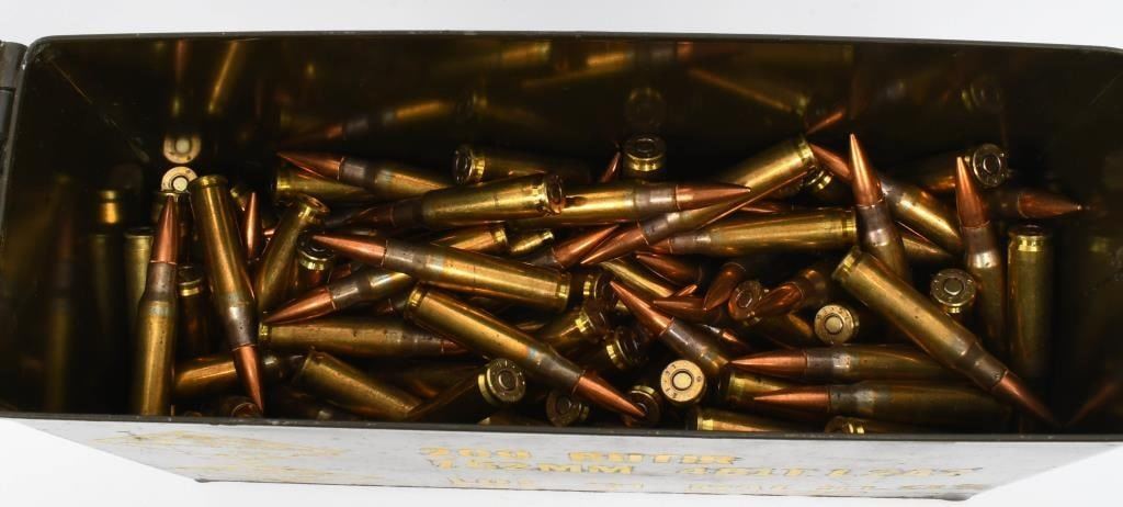 Hello bidders! Up for auction is approximately 200 rounds of Lake City .308 ammunition. This brass-cased full metal jacket ammo comes stored in a metal ammo can