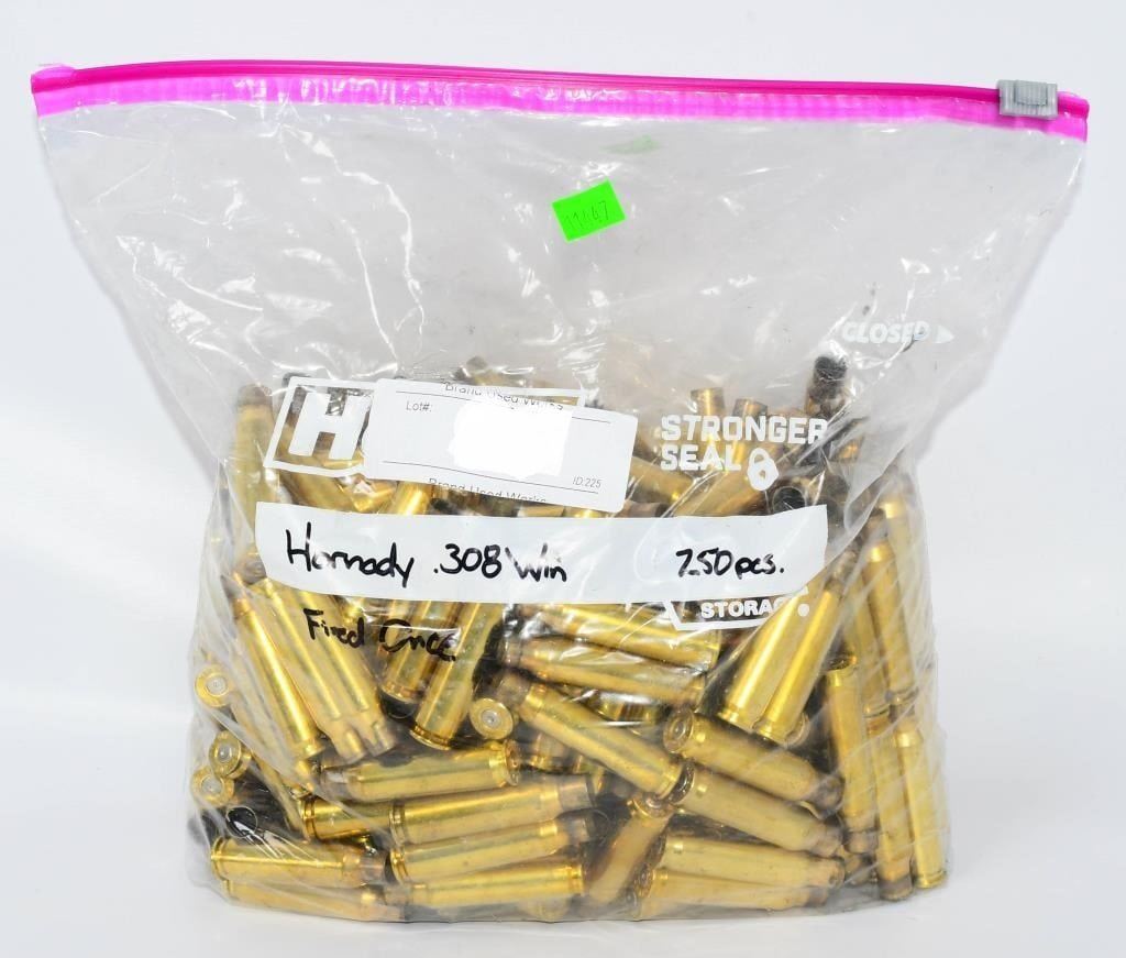 Hello, avid reloaders! Explore the world of precision craftsmanship with this impressive collection of approximately 250 once-fired Hornady .308 Win brass casings. Bid confidently on these premium brass casings, marked by Hornady, offering an ideal foundation for crafting high-performance ammunition tailored to your shooting needs. Embark on this bidding adventure for the Approximately 250 Count Hornady .308 Win Once-Fired Brass Casings. Don't miss the chance to own a top-tier collection that sets the stage for your personalized ammunition. Place your bids now and elevate your reloading experience to new heights! Count Hornady Empty .308 Win Brass
