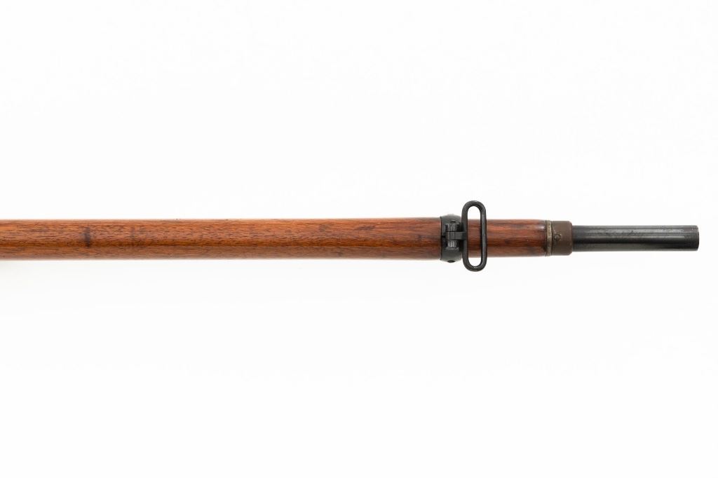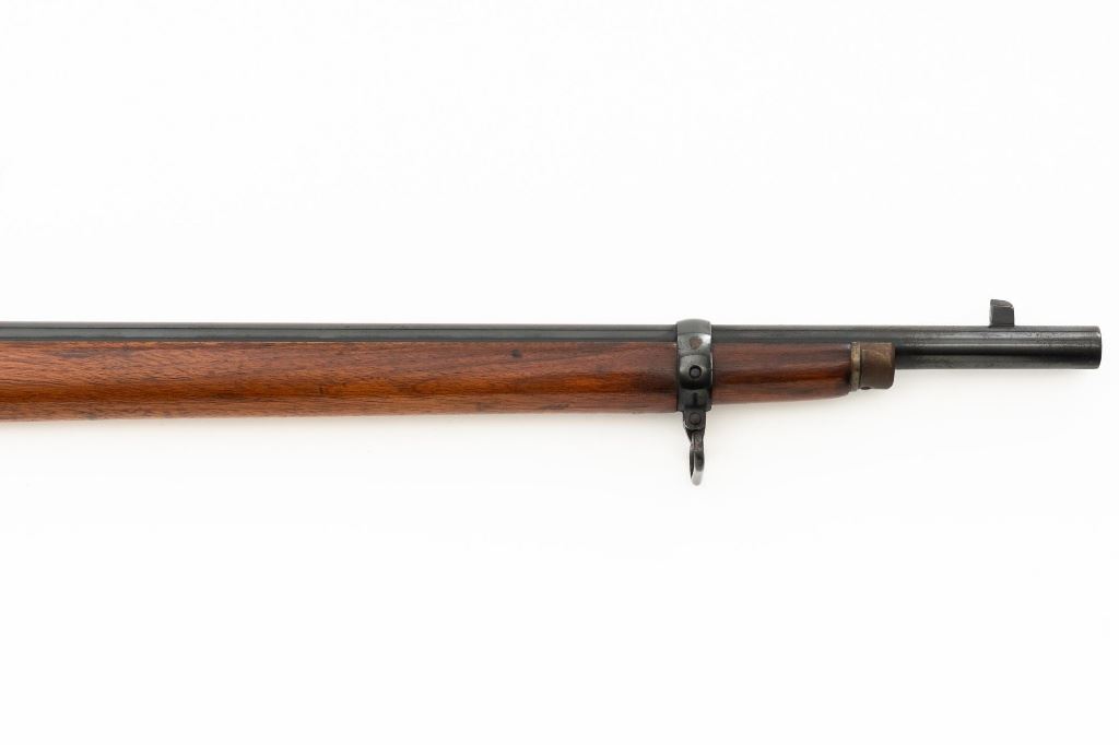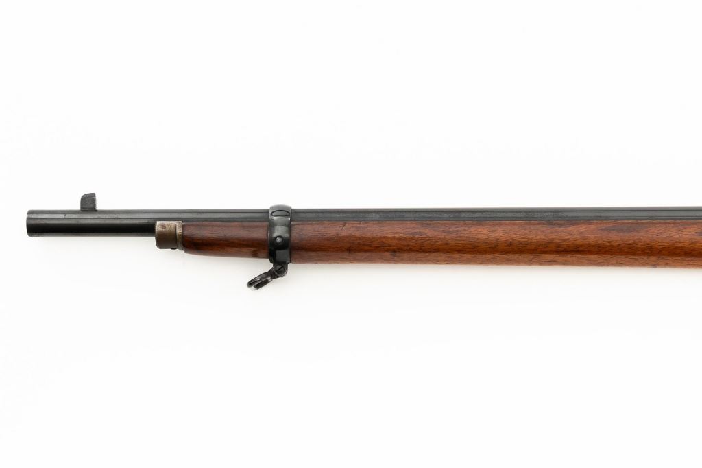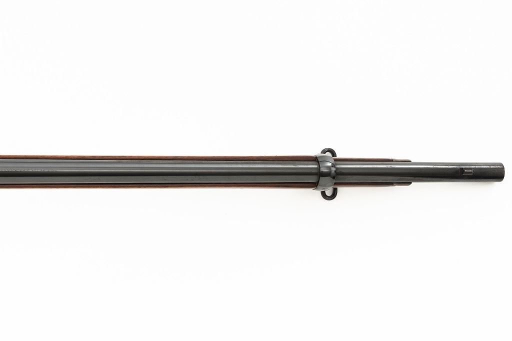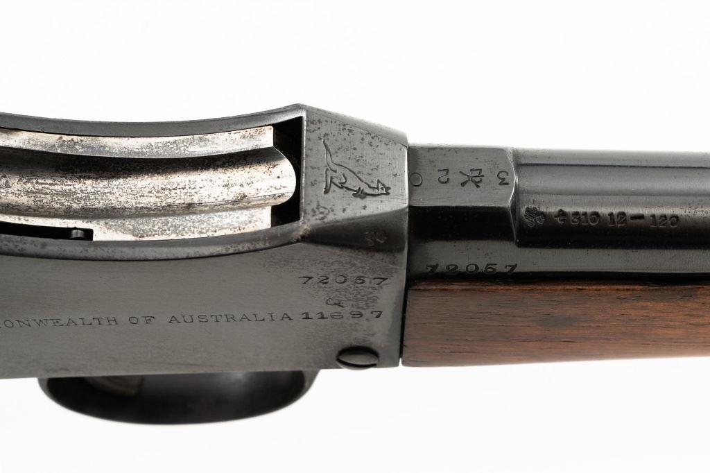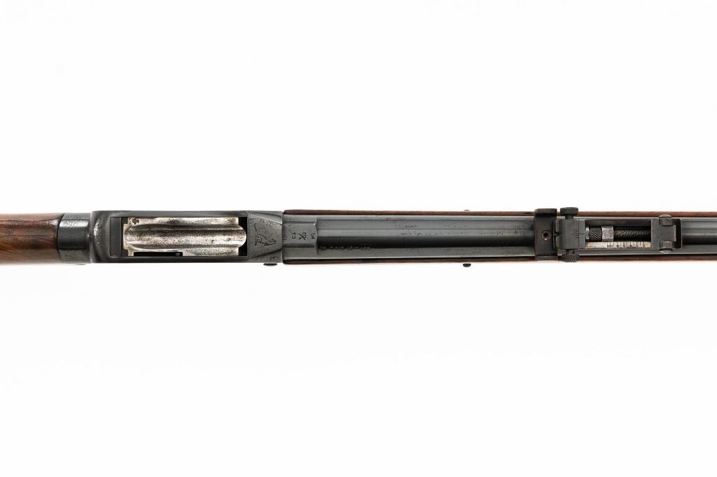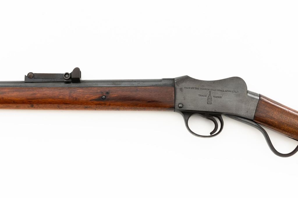 Australian Issue BSA Martini Cadet Single Shot Rifle, #72057, .32-20 Win. cal., 25.25" barrel, blued finish with bright breech block, hardwood stock set, blade front sight, and adjustable leaf rear sight with "V"- notched groove, graduated to 600 yards. Rear sight bed screw is missing. Left side of the receiver is marked "MADE BY THE BIRMINGHAM SMALL ARMS Co LTD/TRADE MARKS/BSA" and the right side with "COMMONWEALTH OF AUSTRALIA". There is an image of a Kangaroo on top of the receiver flat. Rifle was issued to the Commonwealth Military Forces in Queensland and stamped "CMF/Q/11697" on right side of the buttstock and "Q/11697"on right side of the receiver. The caliber was importer converted and is stamped "32 20" on the barrel knox form. Matching numbers on barrel and receiver. No visible import marks. Condition overall is very good as refinished, retaining approx. 75%-80% reblued finish; showing fine frosting to the receiver, barrel, and trigger guard/lever. Locking block is good with toning. Wood has been sanded and varnished, now very good, with a few scattered handling marks. Action and loaded chamber indicator operate smoothly. Bore is bright, with a few spots of pitting mid-barrel, rifling is good. Est.: $400-$600. (C&R)