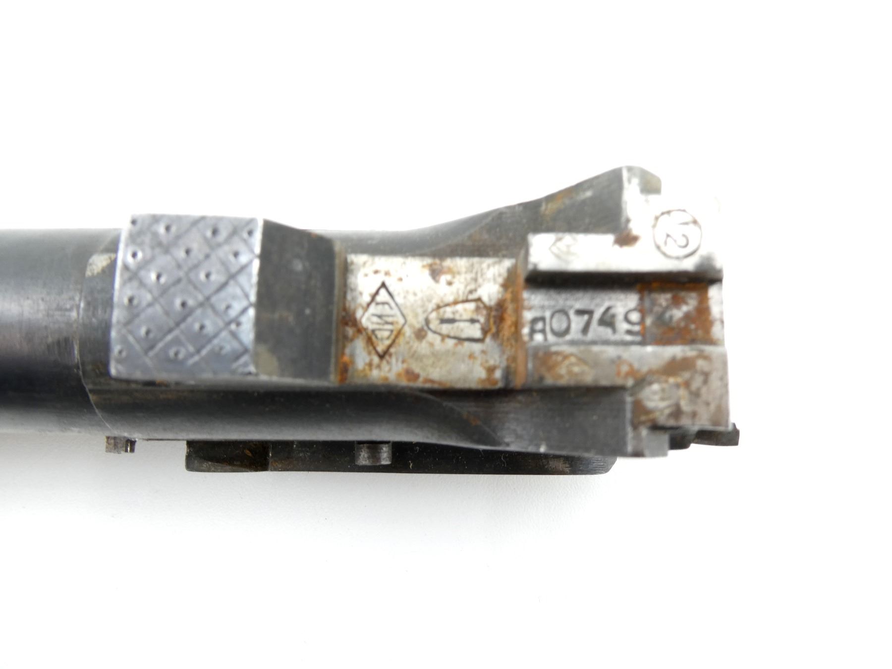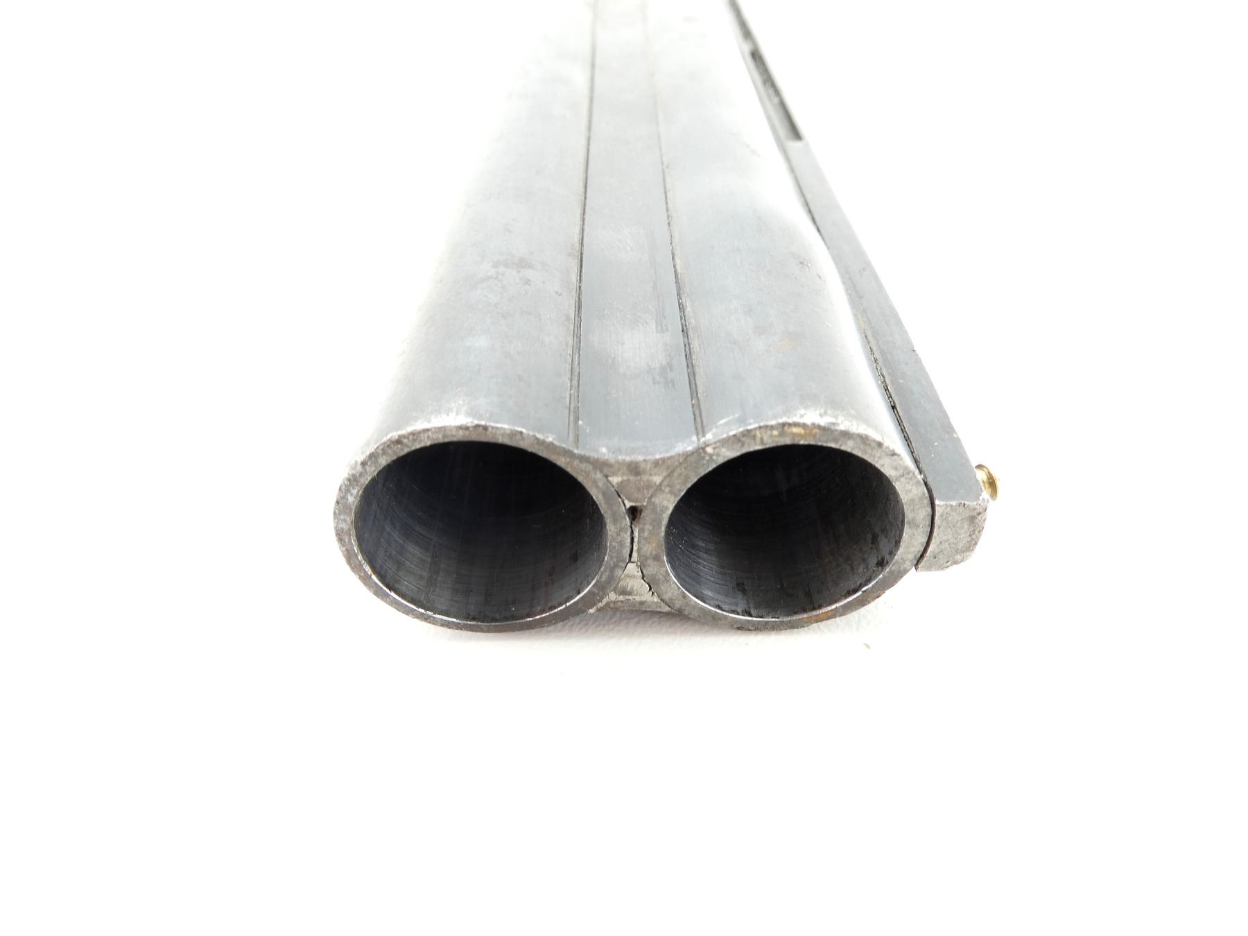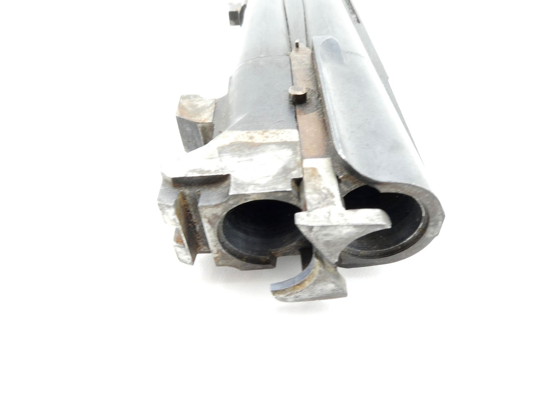 (1) 12 G. X 2 3/4" BARREL, BORES ARE GOOD, WITH FIXED FULL CHOKES, BLUED STEEL CONSTRUCTION, MARKED: "A07494", ETC., TOP BARREL BULGED AT MUZZLE, WITH BRASS FRONT BEAD, EXTRACTORS, SLING SWIVEL, OVERALL LENGTH APPROX. 28.5". MAY REQUIRE FITTING. SEE PHOTOS. PAL REQUIRED.