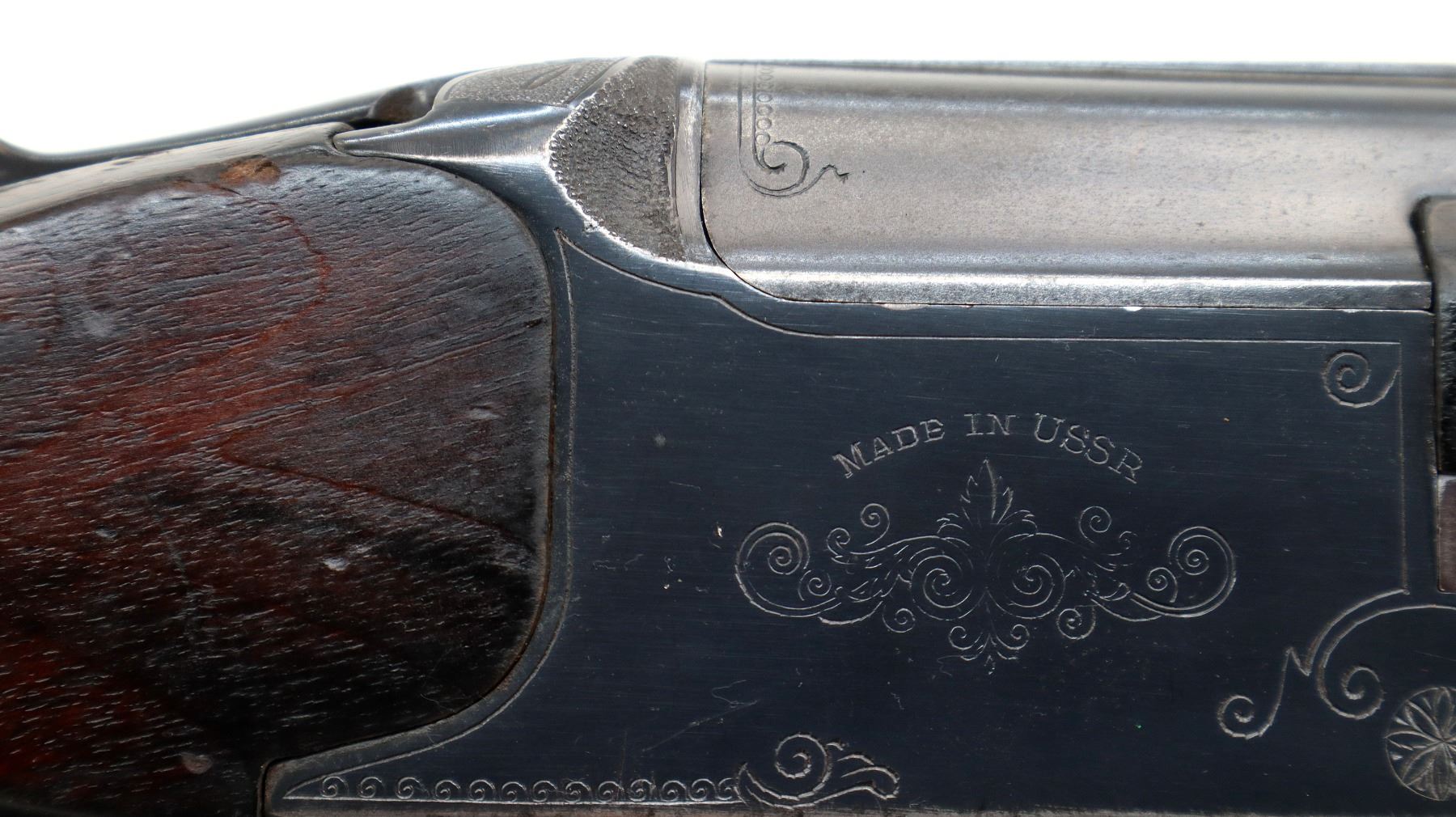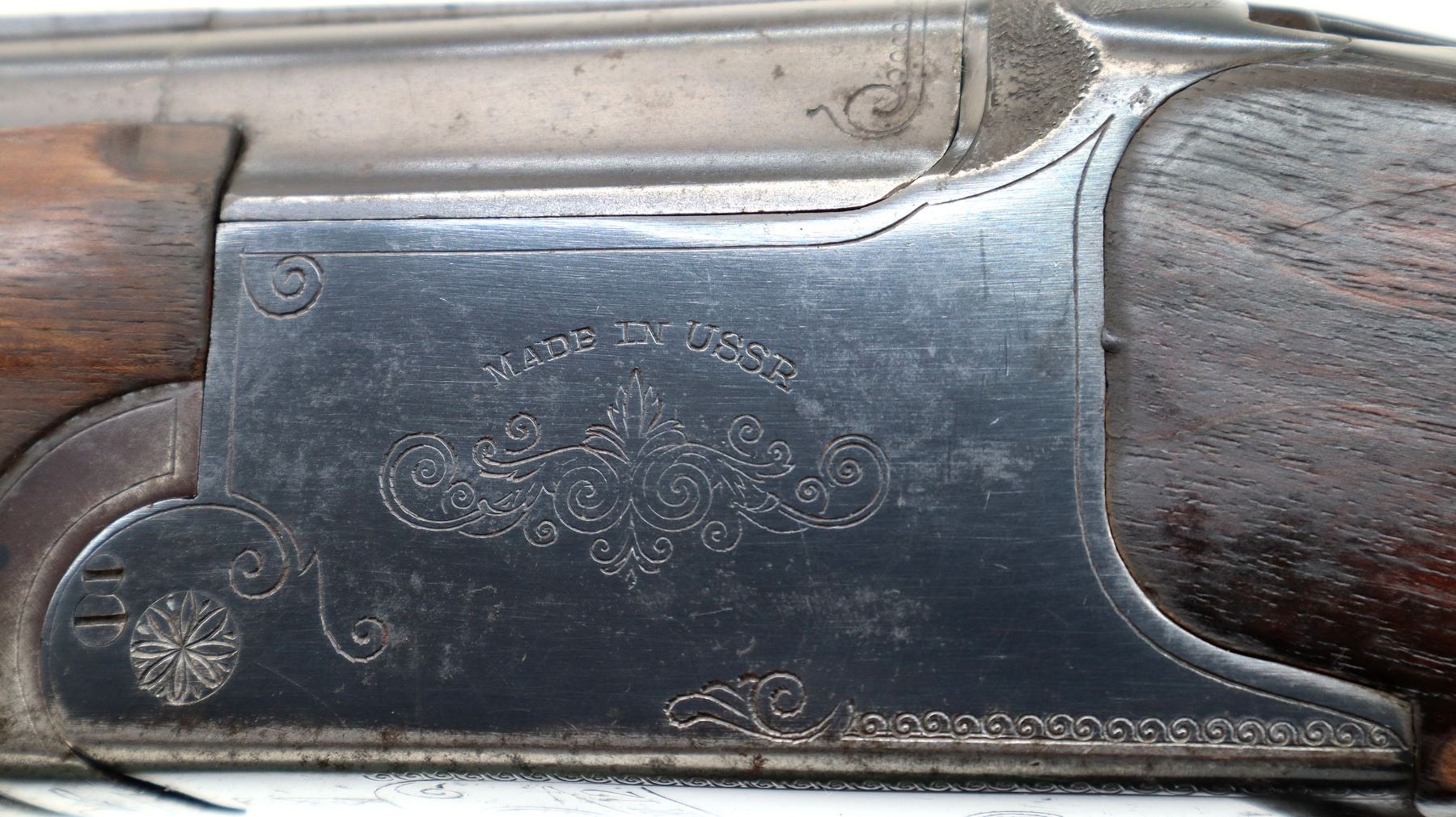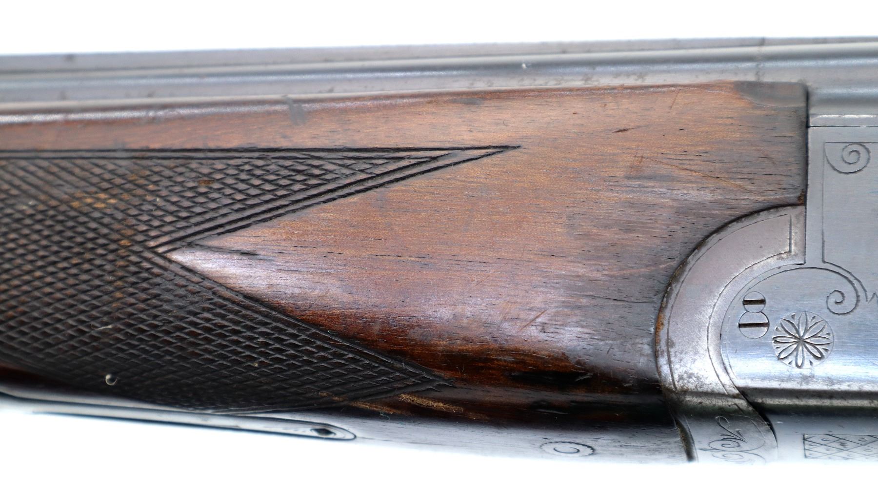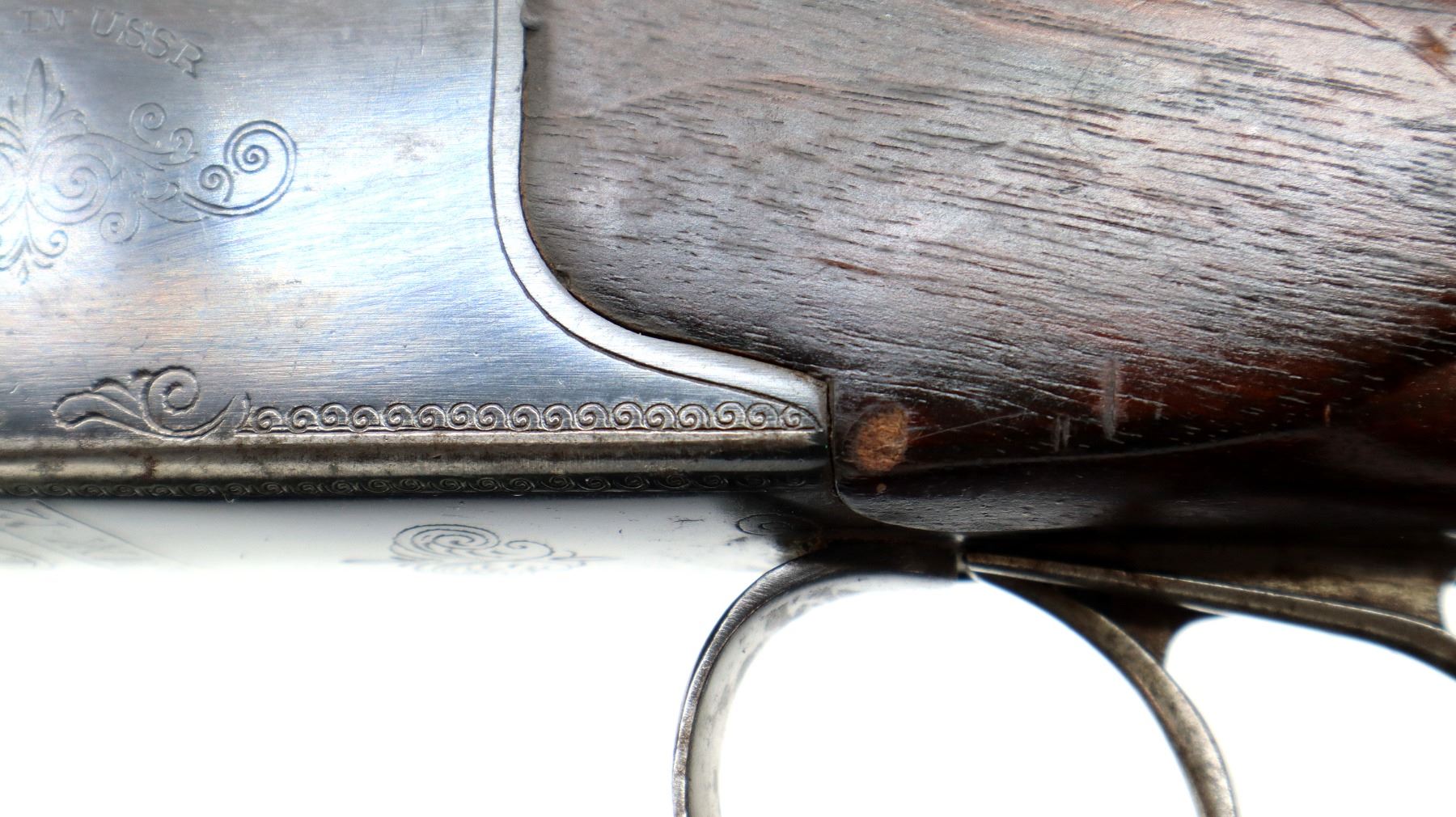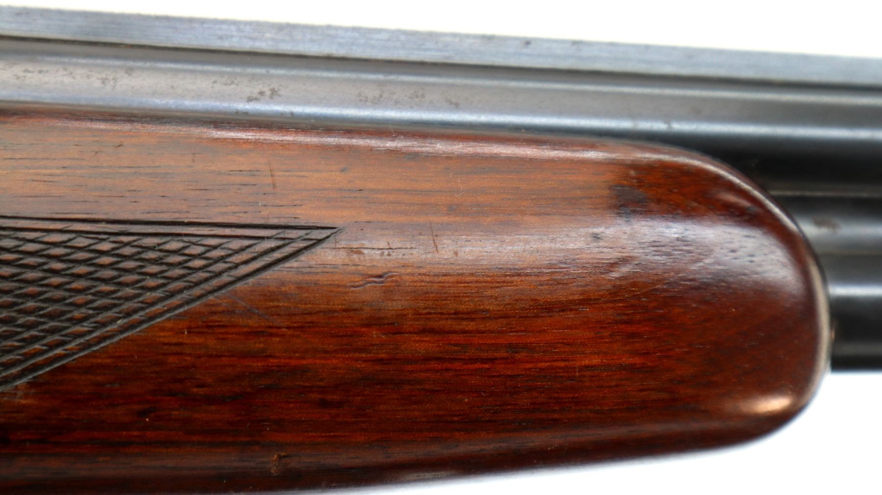 Wear: Metal finish shows some light rust speckles, scratches, handling marks and wear. Stocks show marks, scratches and wear.