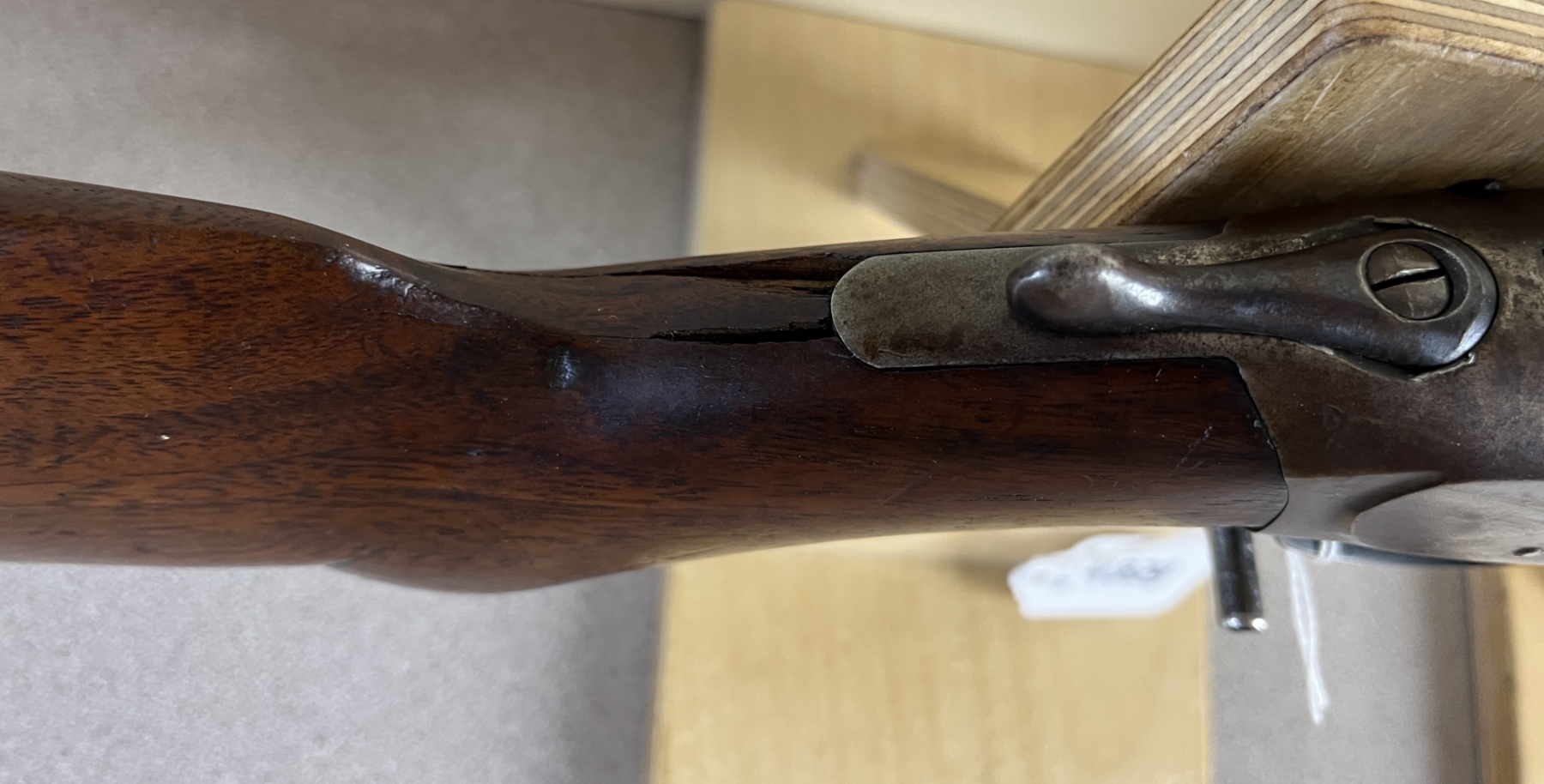 CONDITION: F OVERALL INCL BORE. NOTE MULTIPLE CRACKS AT TANG. SPECS: 30IN BBL CHOKED MOD. EXTRAS: NONE. S/N: 76341