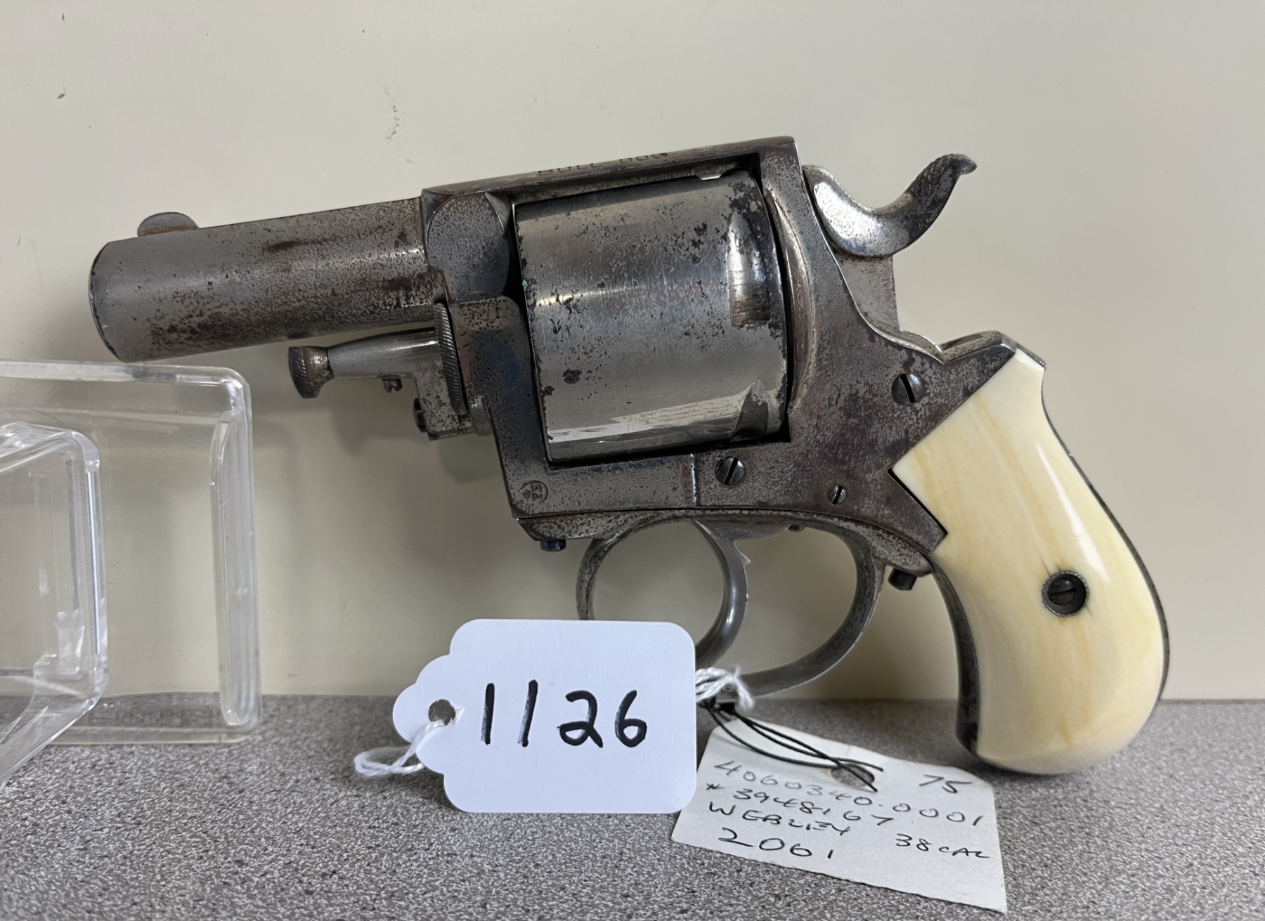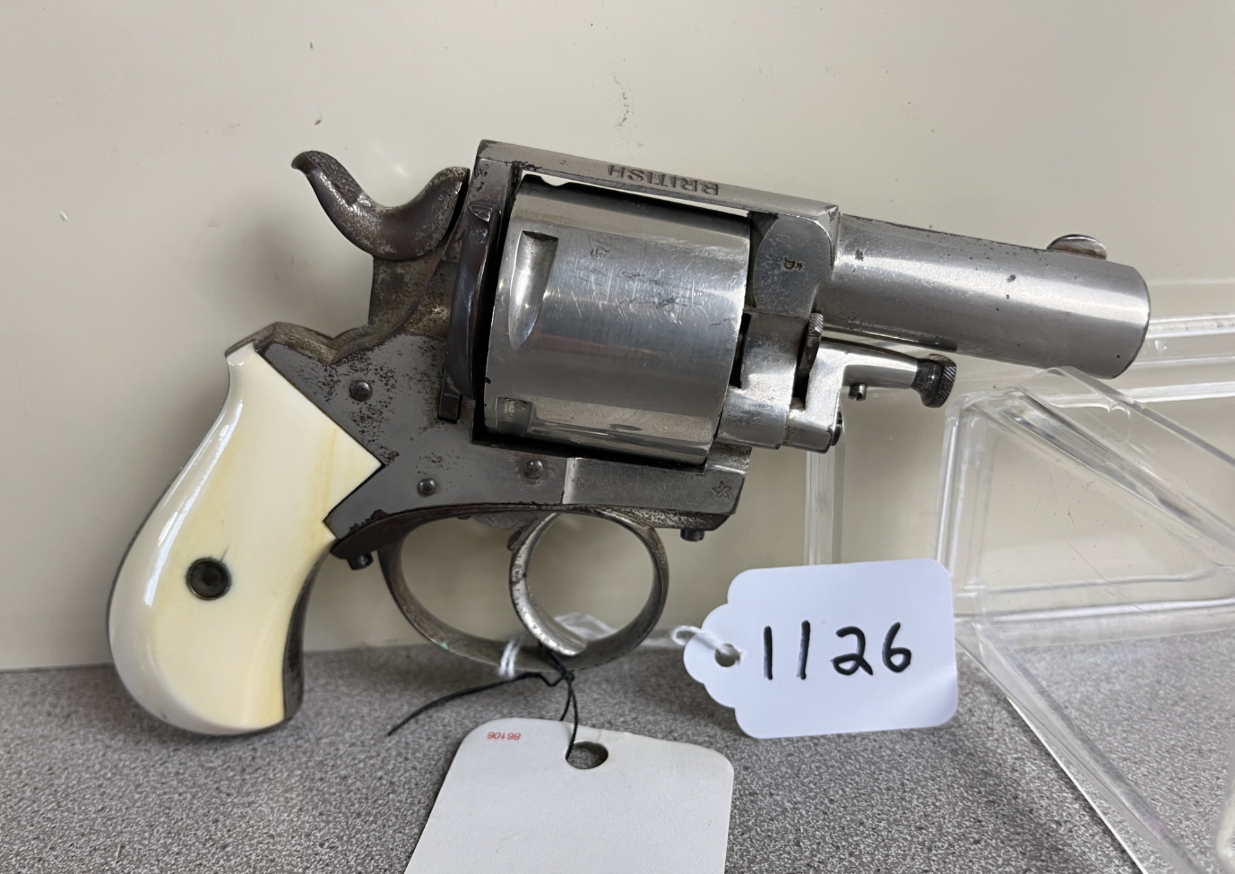 CONDITION: F OVERALL INCL BORE. TIMING F IN SINGLE AND DOUBLE ACTION - OCCASIONALLY MISSES, LOCK UP G. SPECS: 57MM BBL. 5 SHOT REVOLVER. NICKEL FINISH. EXTRAS: NONE. S/N: 2061