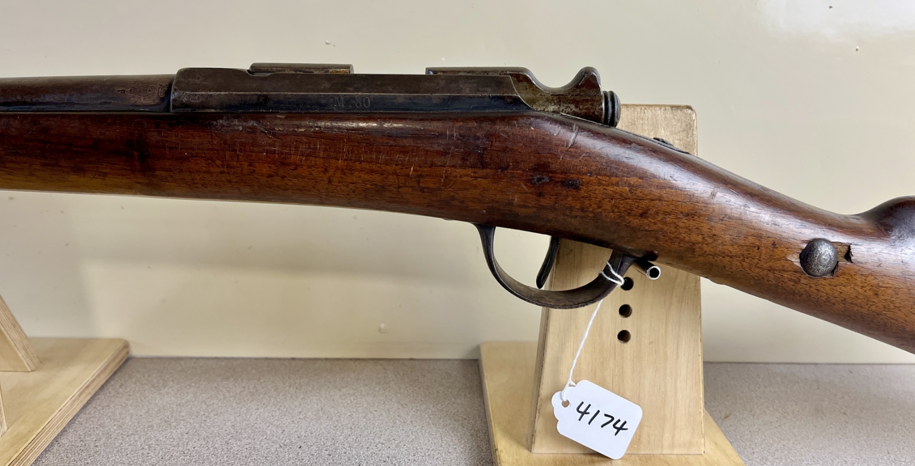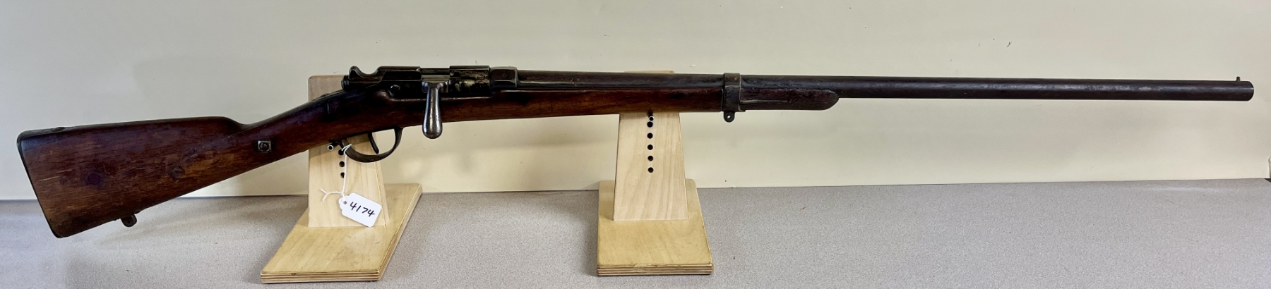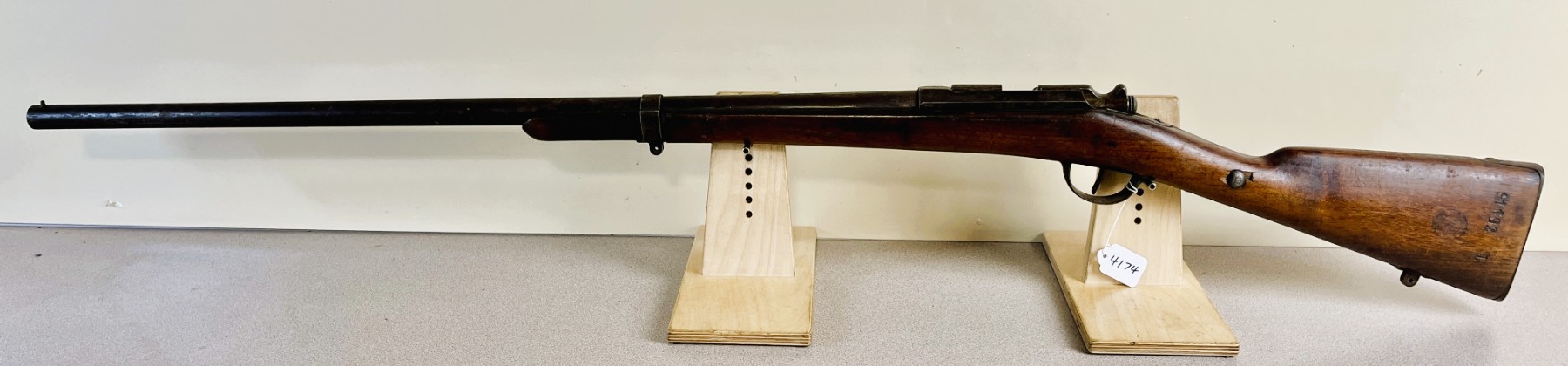 CONDITION: F OVERALL INCL BORE. NOTE: SHOWS MAJOR REPAIRED CRACK AT WRIST, SHOWS MINOR CRACK AT FOREND AND MINOR CRACK NEAR LEFT SIDE OF RECEIVER. SPECS: 31-1/2IN BBL WITH FIXED CYLINDER BORE. 2-3/4IN CHAMBER. EXTRAS: NONE. S/N: 19597