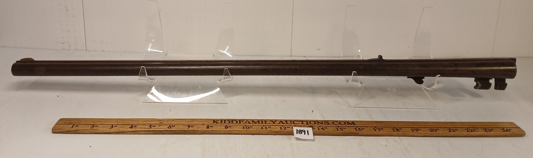 KIDD FAMILY AUCTIONS does not guarantee or make warranties on any lot sold. Ratings in the catalog are our opinion. We acknowledge that errors may occur although we endeavor to give you accurate information in what is written. We strongly recommend you personally view any item you bid on. We are closed Sundays. A gunsmith should be consulted before attempting to use or fire any firearm or ammunition. KIDD FAMILY AUCTIONS cannot be held liable.