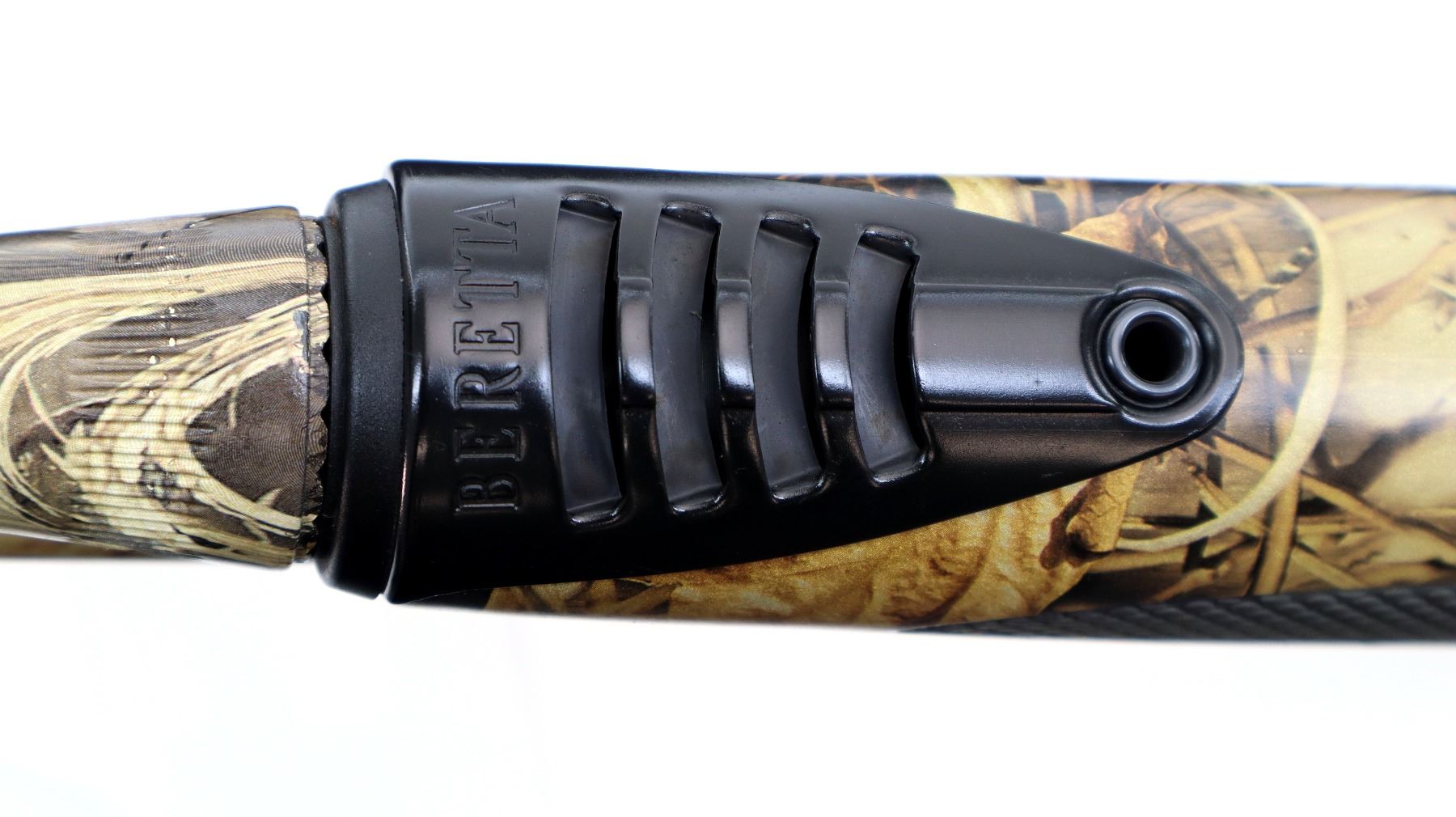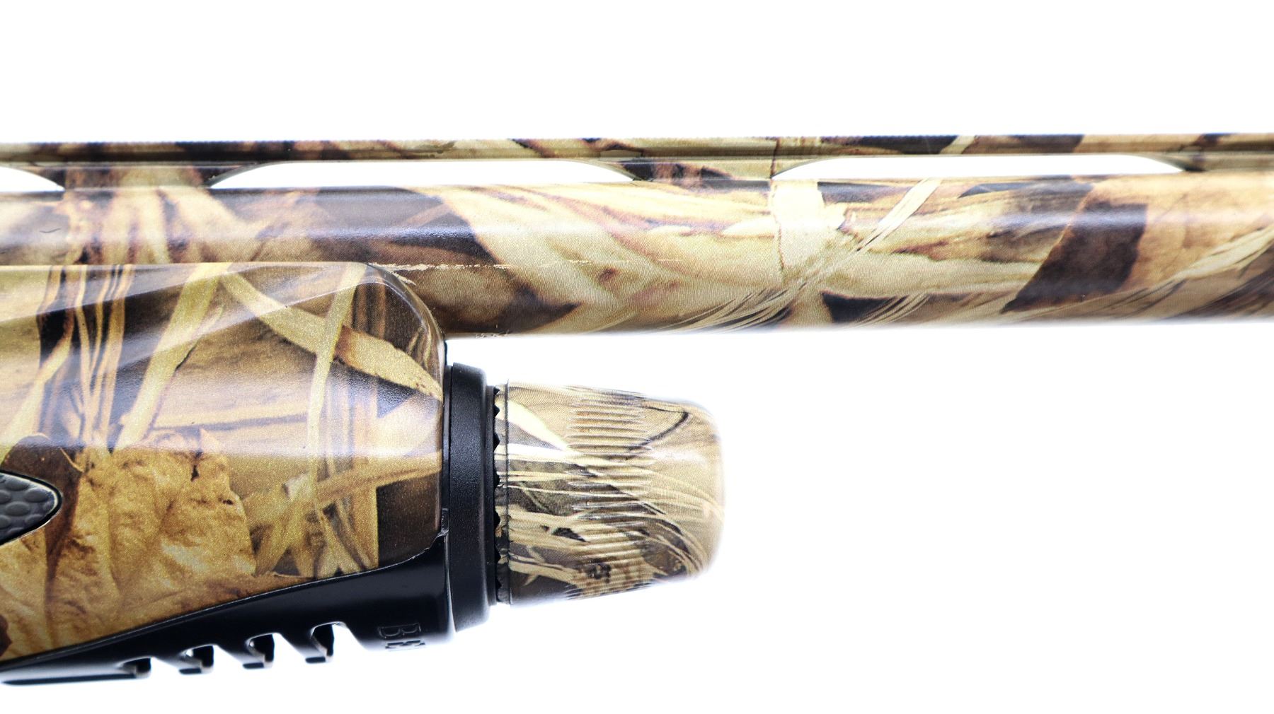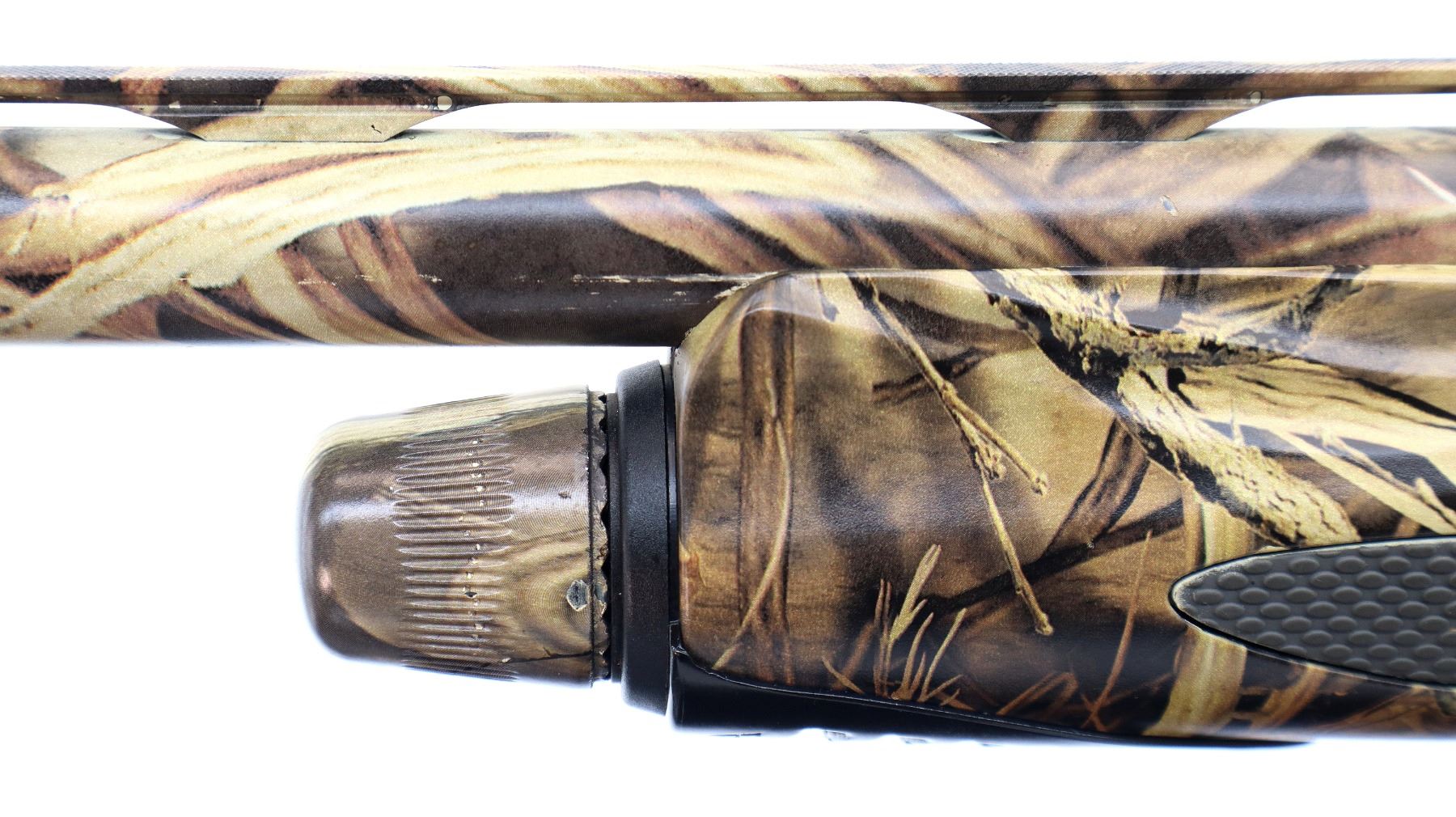 Main Description: Green fiber optic front bead, Shadow grass camo finish overall, vent rib, alloy receiver with integral scope bases. Two piece synthetic stocks, checkered forearm and pistol grip panels, black rubber recoil pad, grip cap. Accessories include: Stock spacer, magtube plug, white front bead, spare Cylinder, IC, IM and Full Chokes with wrench.