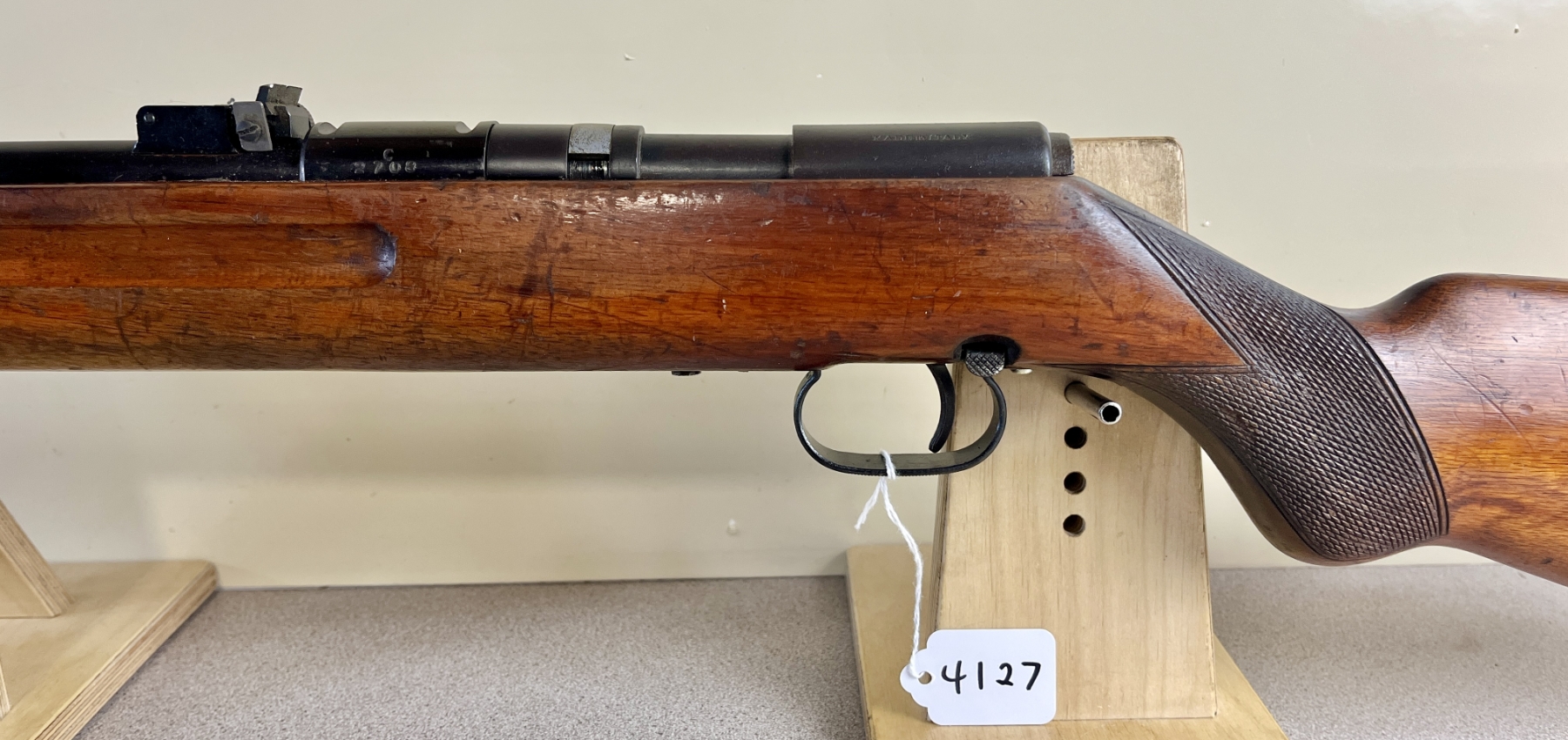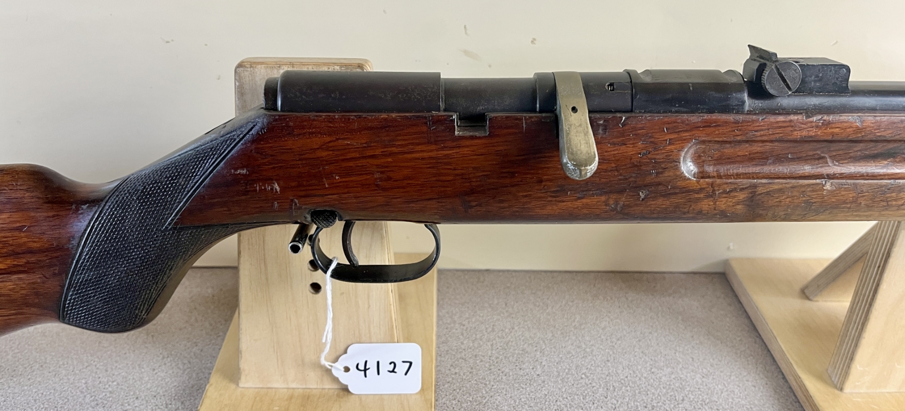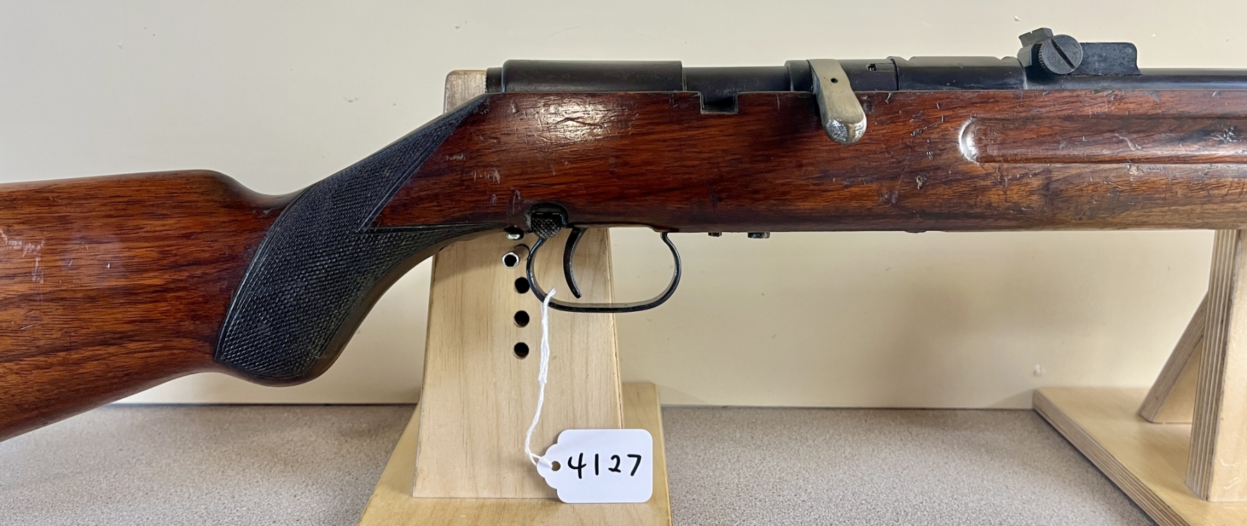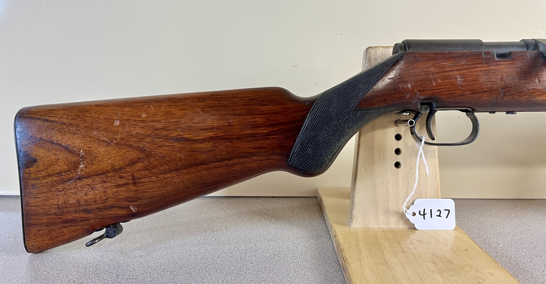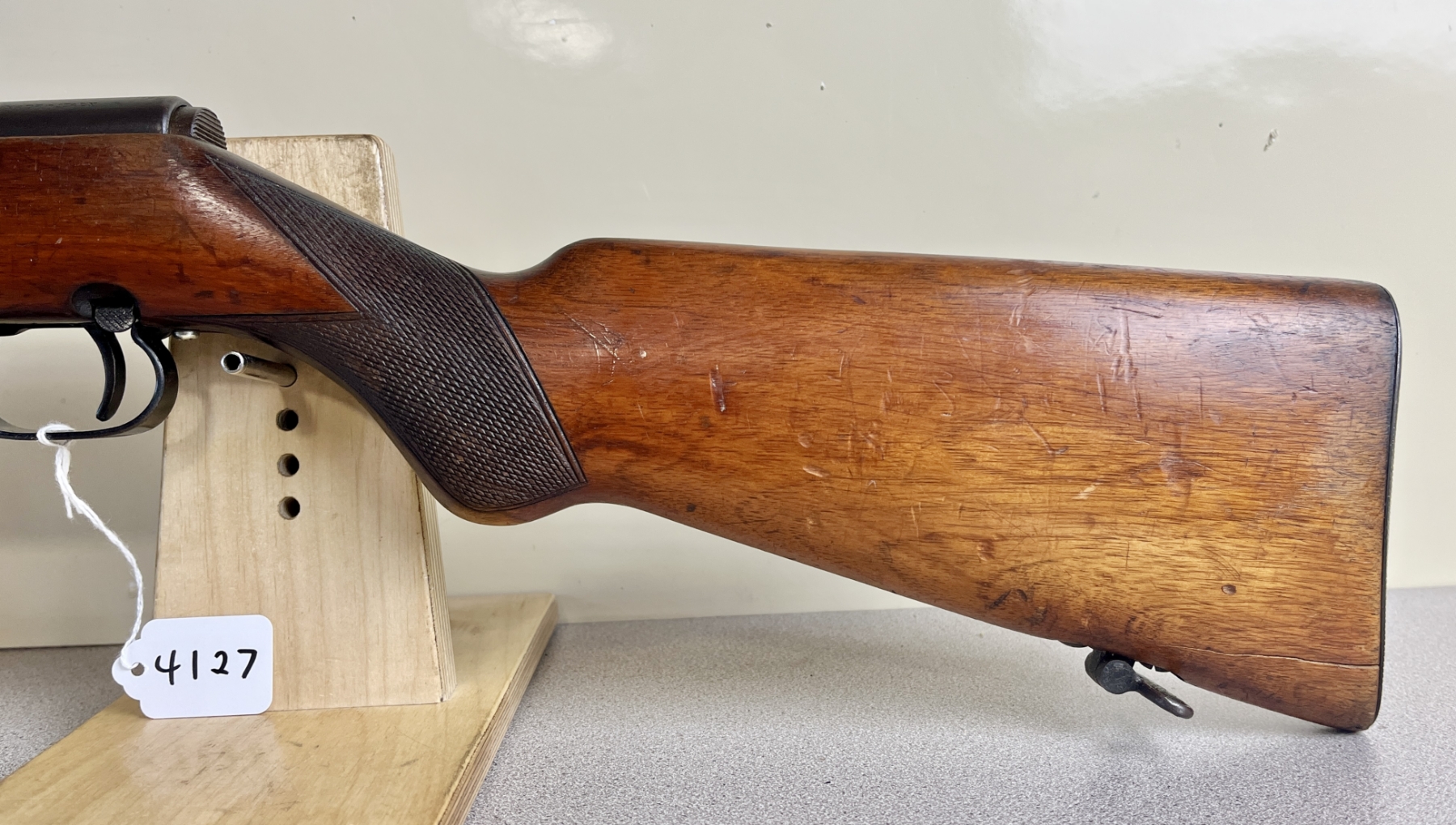 CONDITION: G OVERALL, BORE VG. NOTE: MISSING MAG, STOCK SHOWS NUMEROUS BLEMISHES INCL CRACK AT HEEL. SPECS: 23-1/2IN BBL WITH IRON SIGHTS. EXTRAS: NONE. S/N: C2708