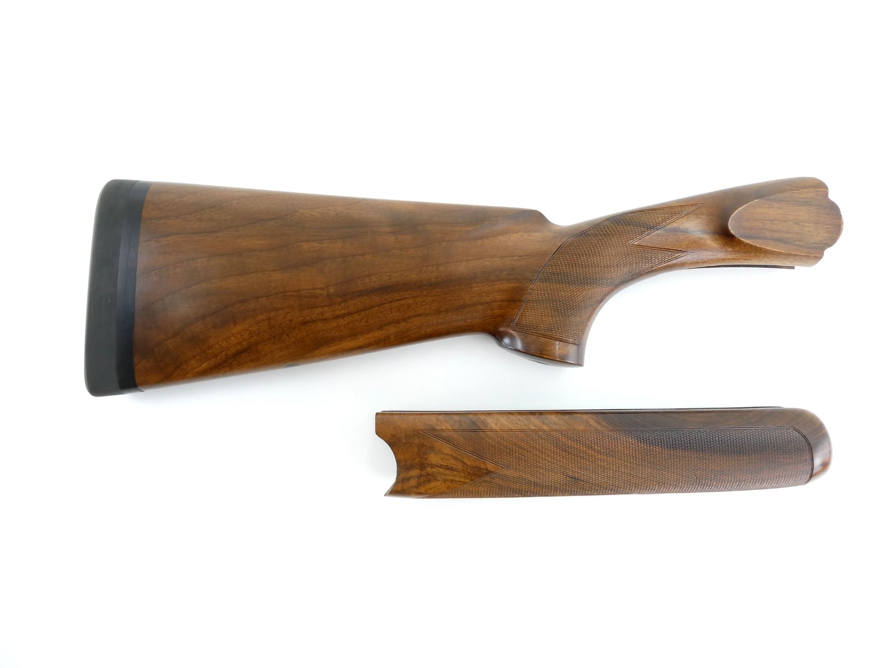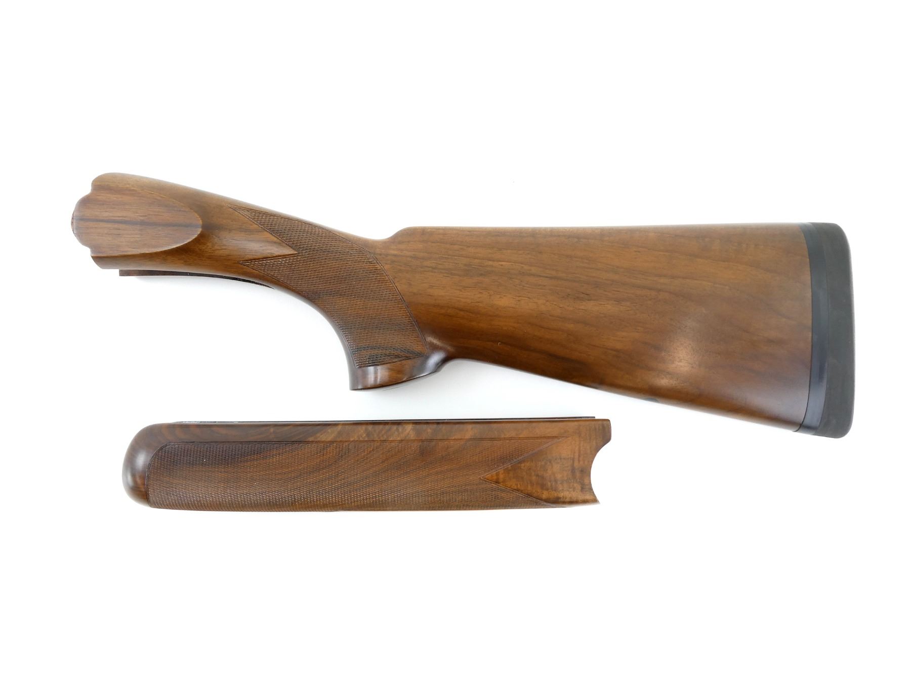 LOT INCLUDES; (1) WOODEN O/U BUTT STOCK, CHECKERED, MARKED WITH BERETTA LOGO, WITH PACHMAYR RECOIL PAD, OVERALL LENGTH APPROX. 17" & (1) WOODEN O/U FOREND, CHECKERED, UNMARKED, CHANNEL WIDTH APPROX. 21MM, OVERALL LENGTH APPROX. 10 1/8". CONSIGNOR STATES "O/U". MAY REQUIRE FITTING. SEE PHOTOS.