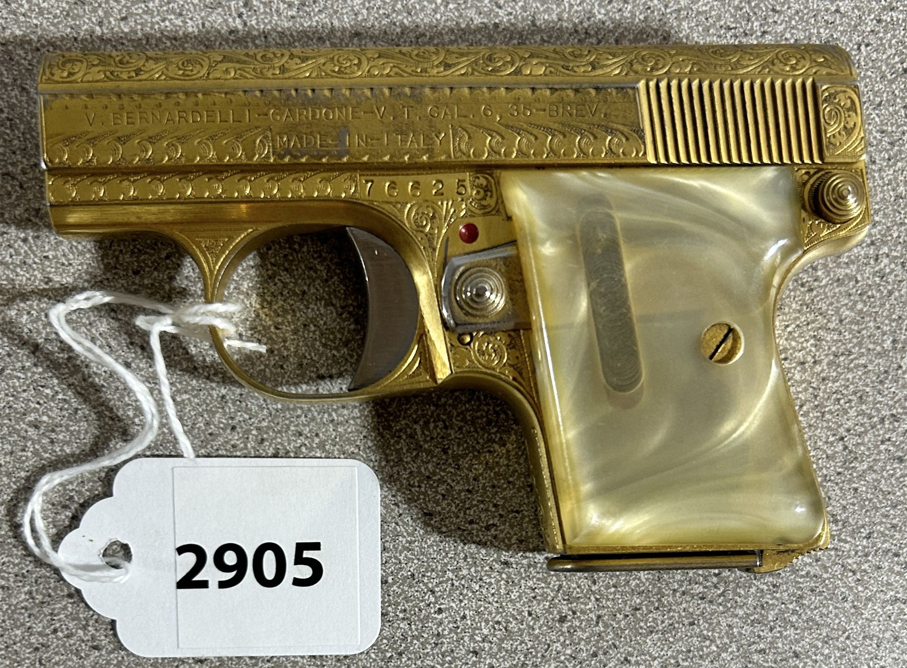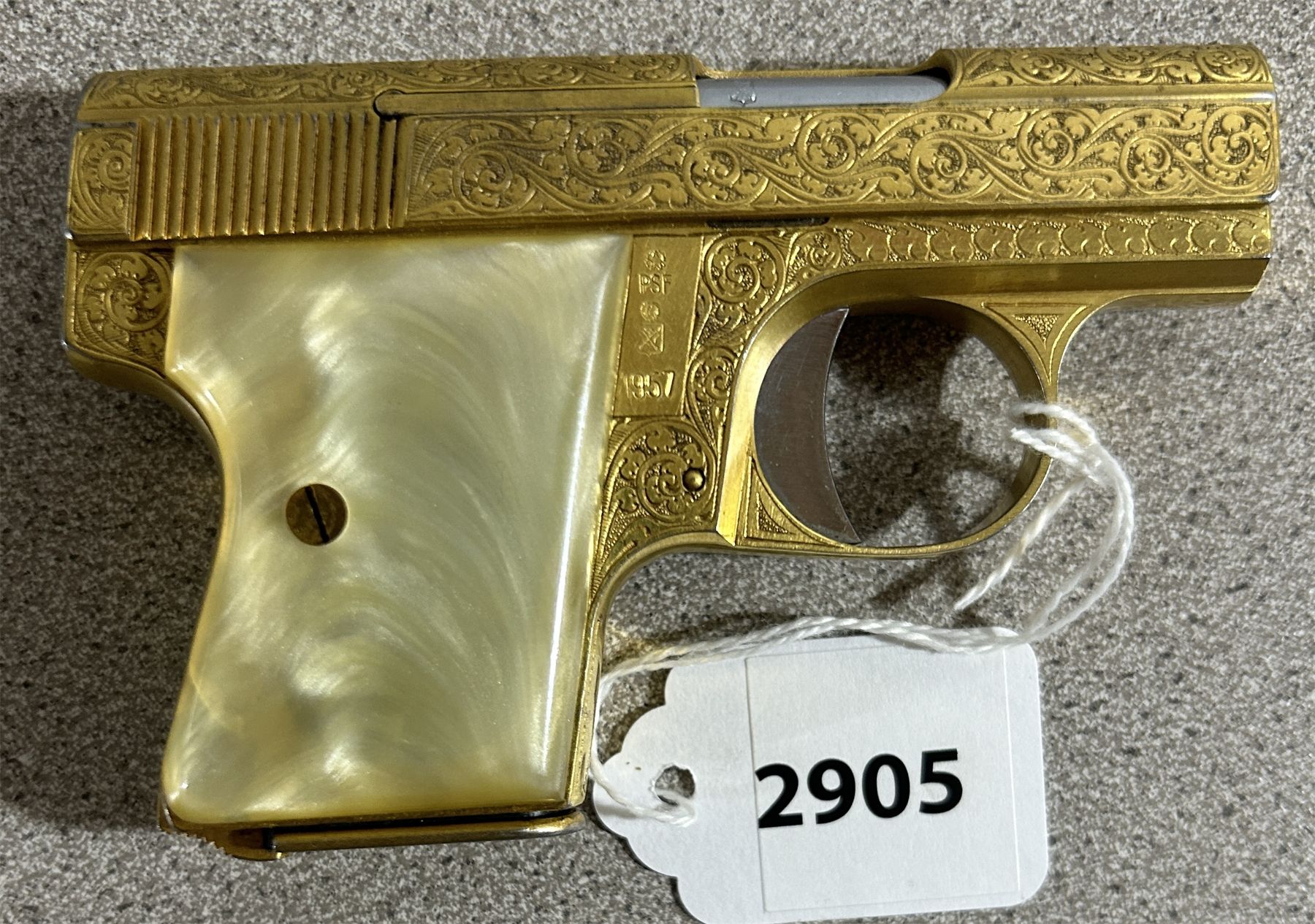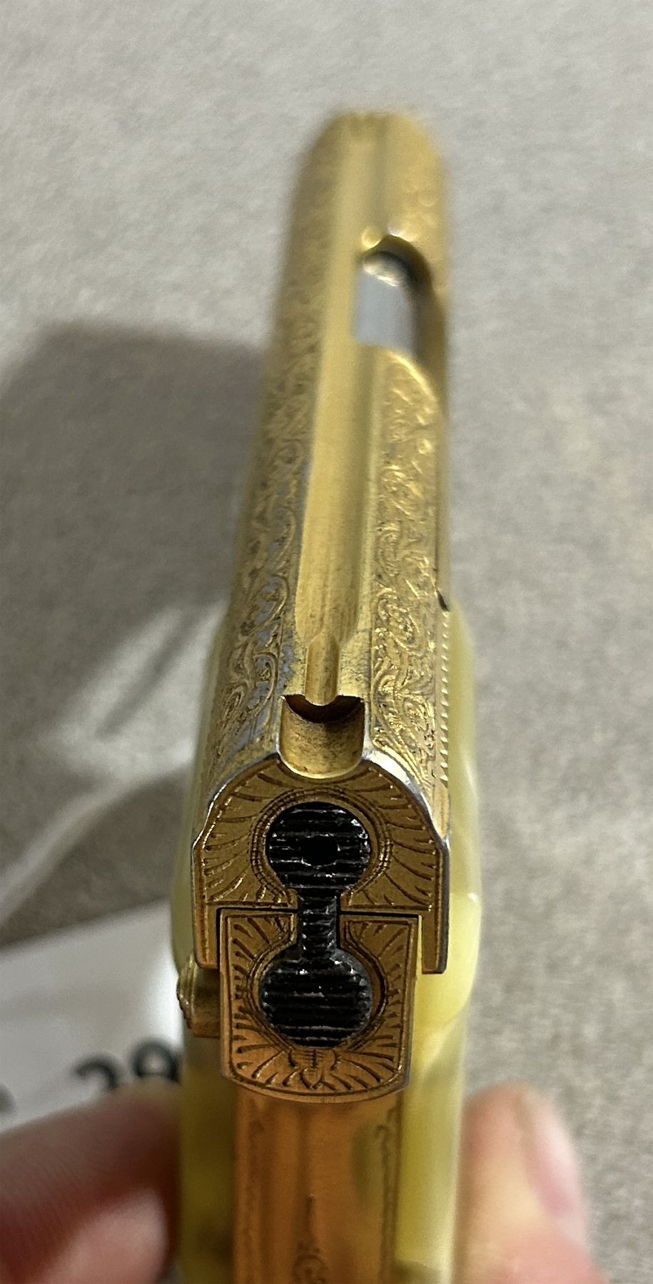 CONDITION: G - VG OVERALL INCLUDING BORE. MISSING FIRING PIN SPRING. SPECS: 54 MM BARREL. GOLD PLATED FINISH. EXTRAS: NONE. S/N: 76625.
