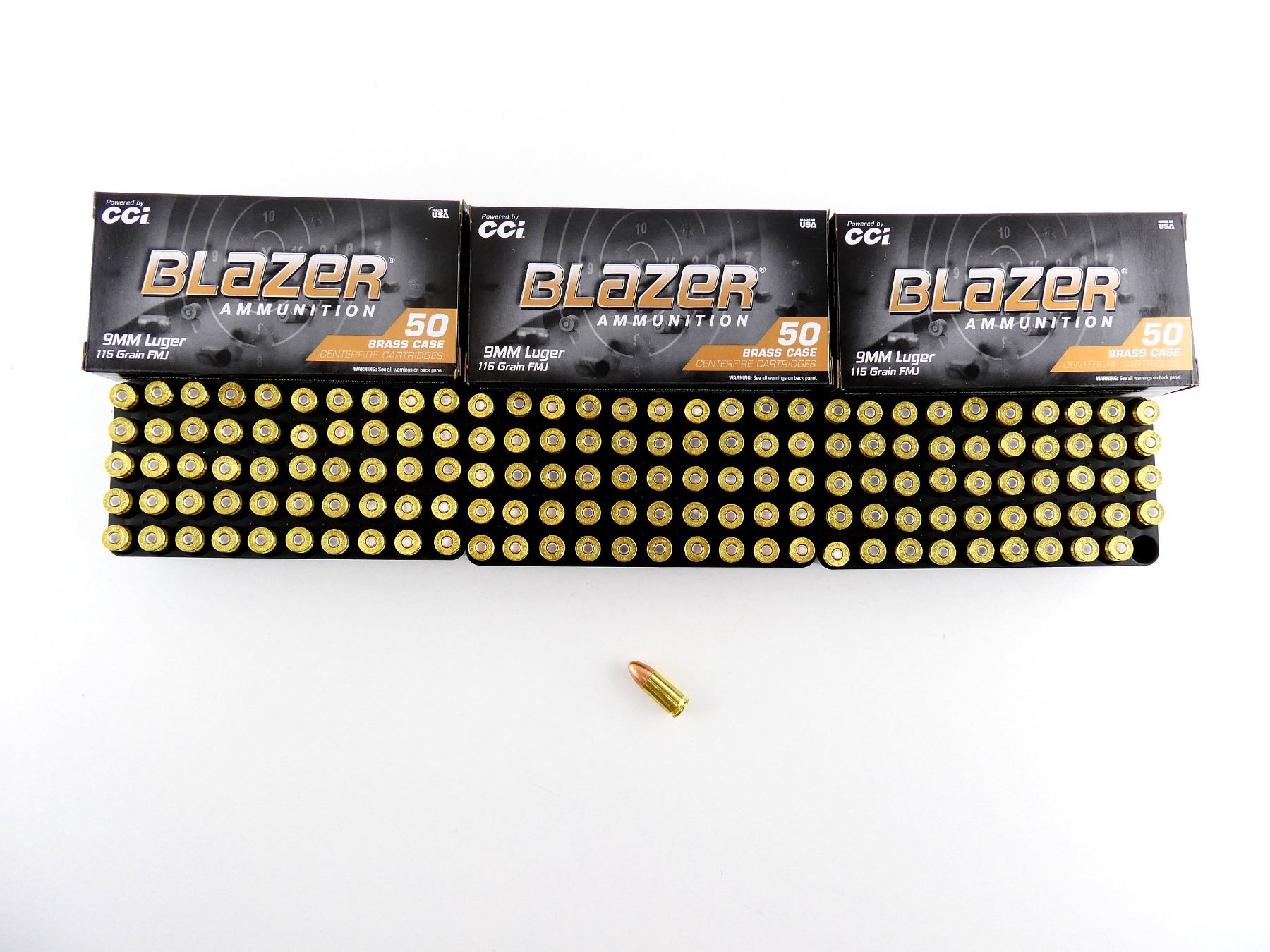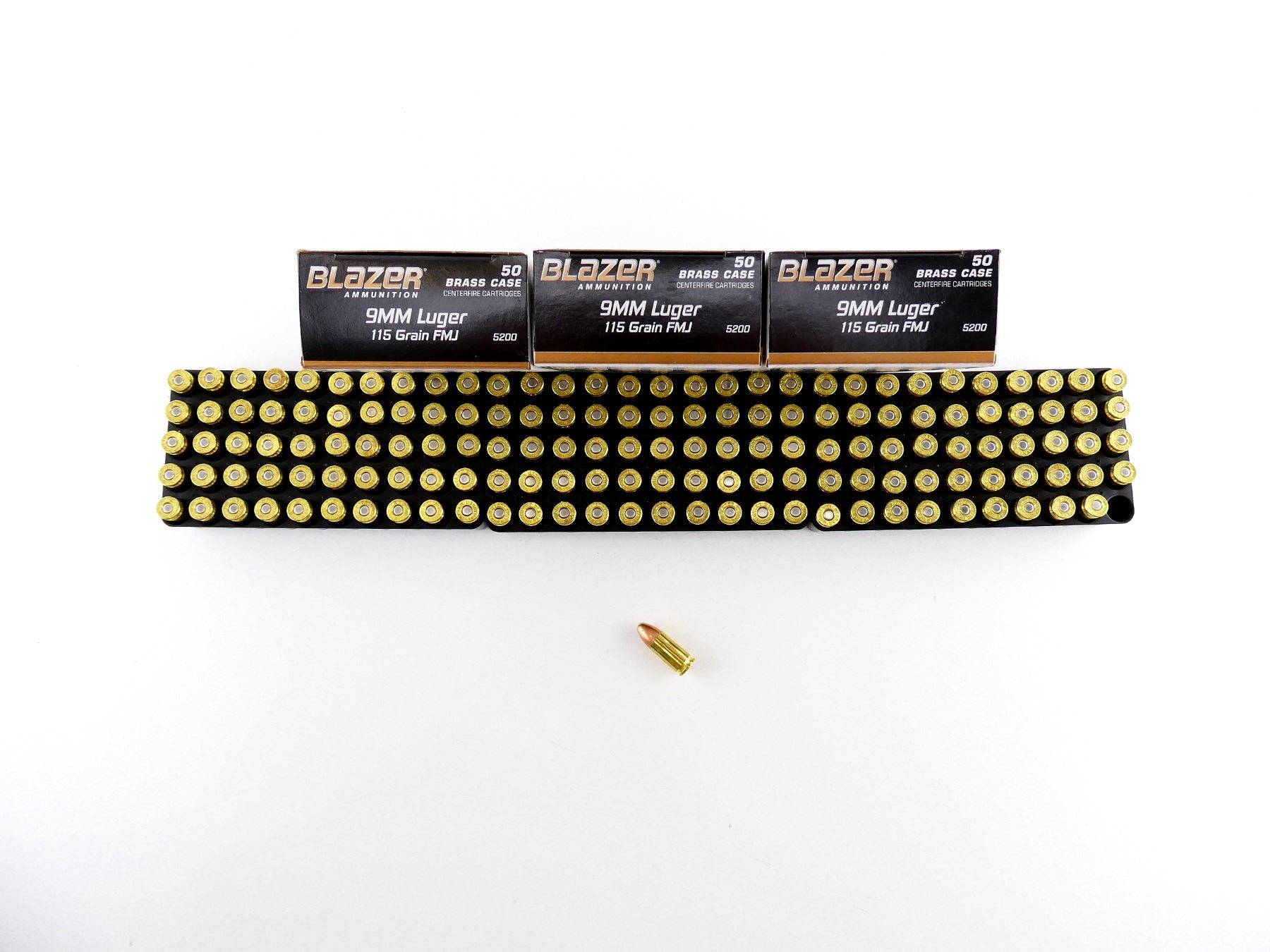 LOT INCLUDES; APPROX. (150) RNDS, 115 GRNS (STATED ON BOXES NOT CONFIRMED), FMJ.